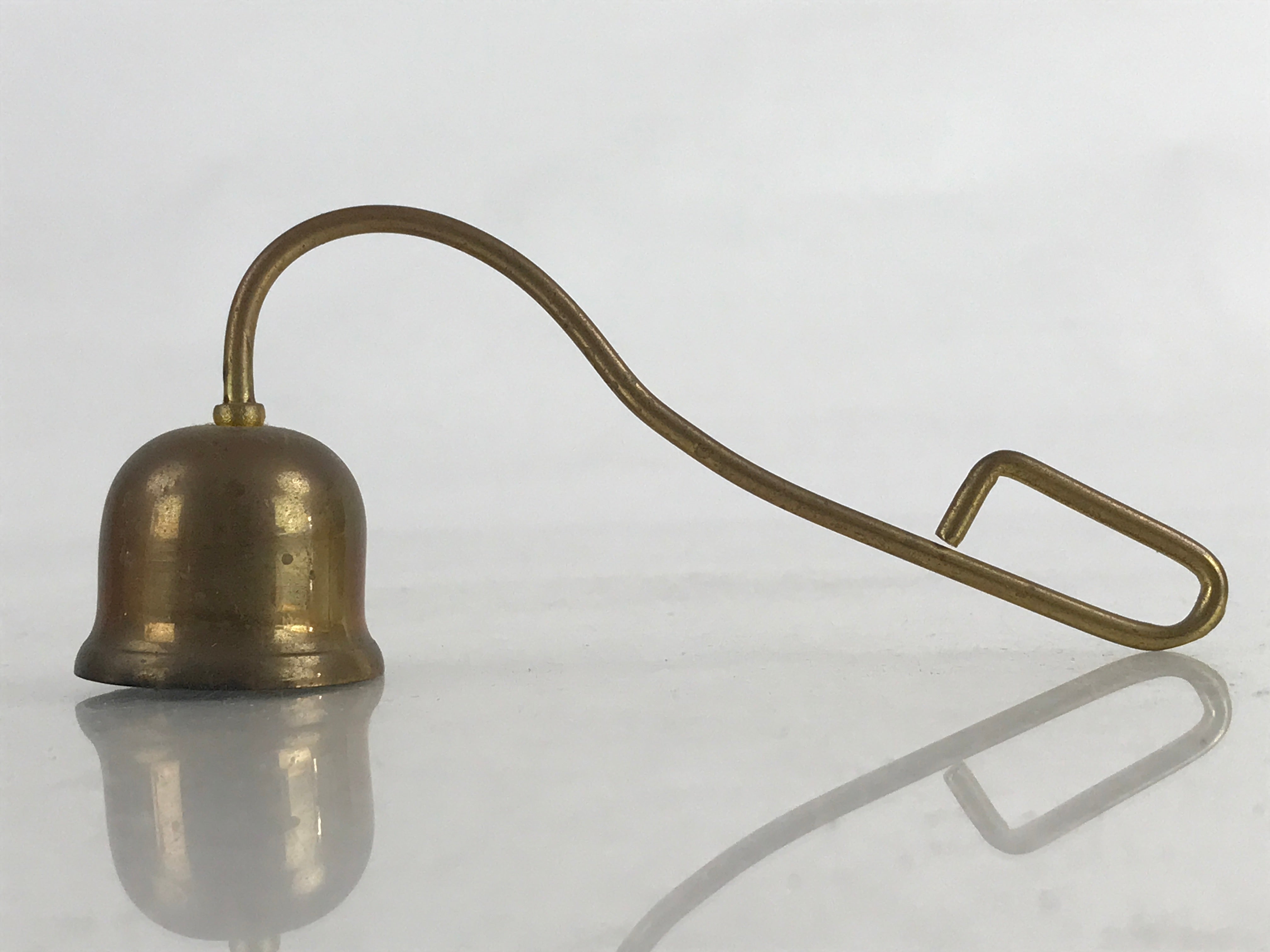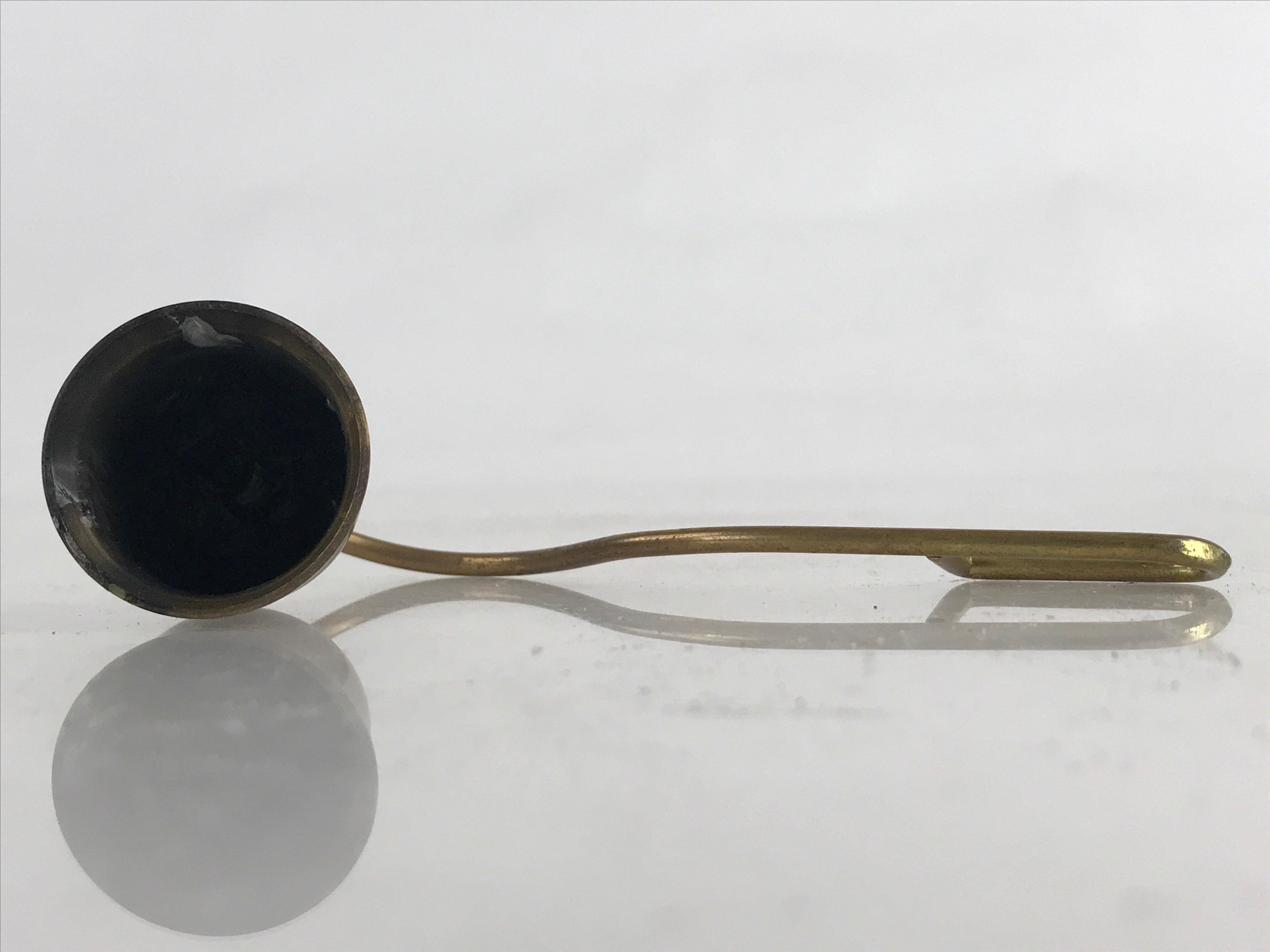 This is a vintage Japanese Buddhist altar fitting, candle snuffer. A candle snuffer or a candle extinguisher is an instrument used to extinguish burning candles, consisting of a small cone at the end of a handle. The use of a snuffer helps to avoid problems associated with blowing hot wax and it avoids the smoke and odor of a smoldering wick that results from simply blowing a candle out.