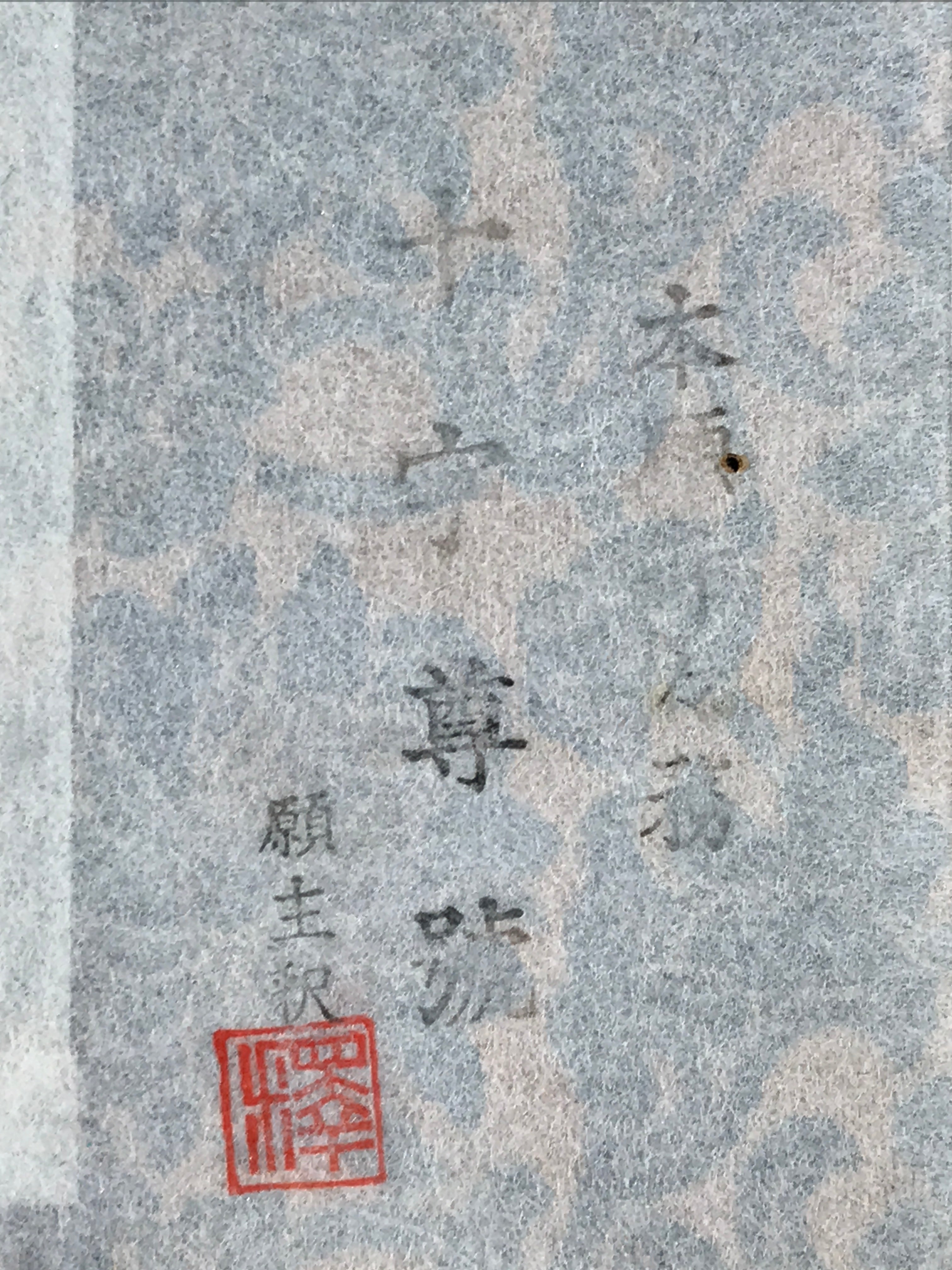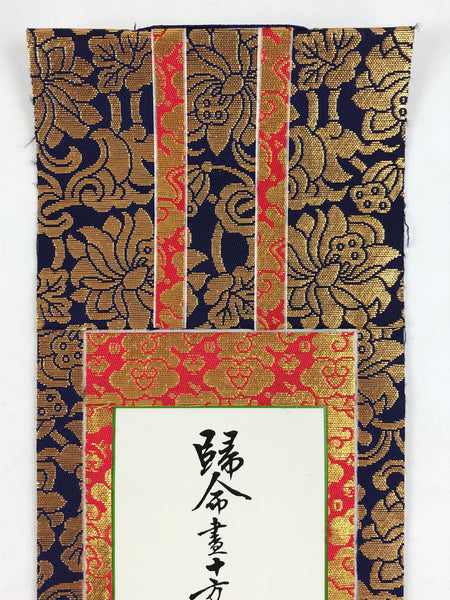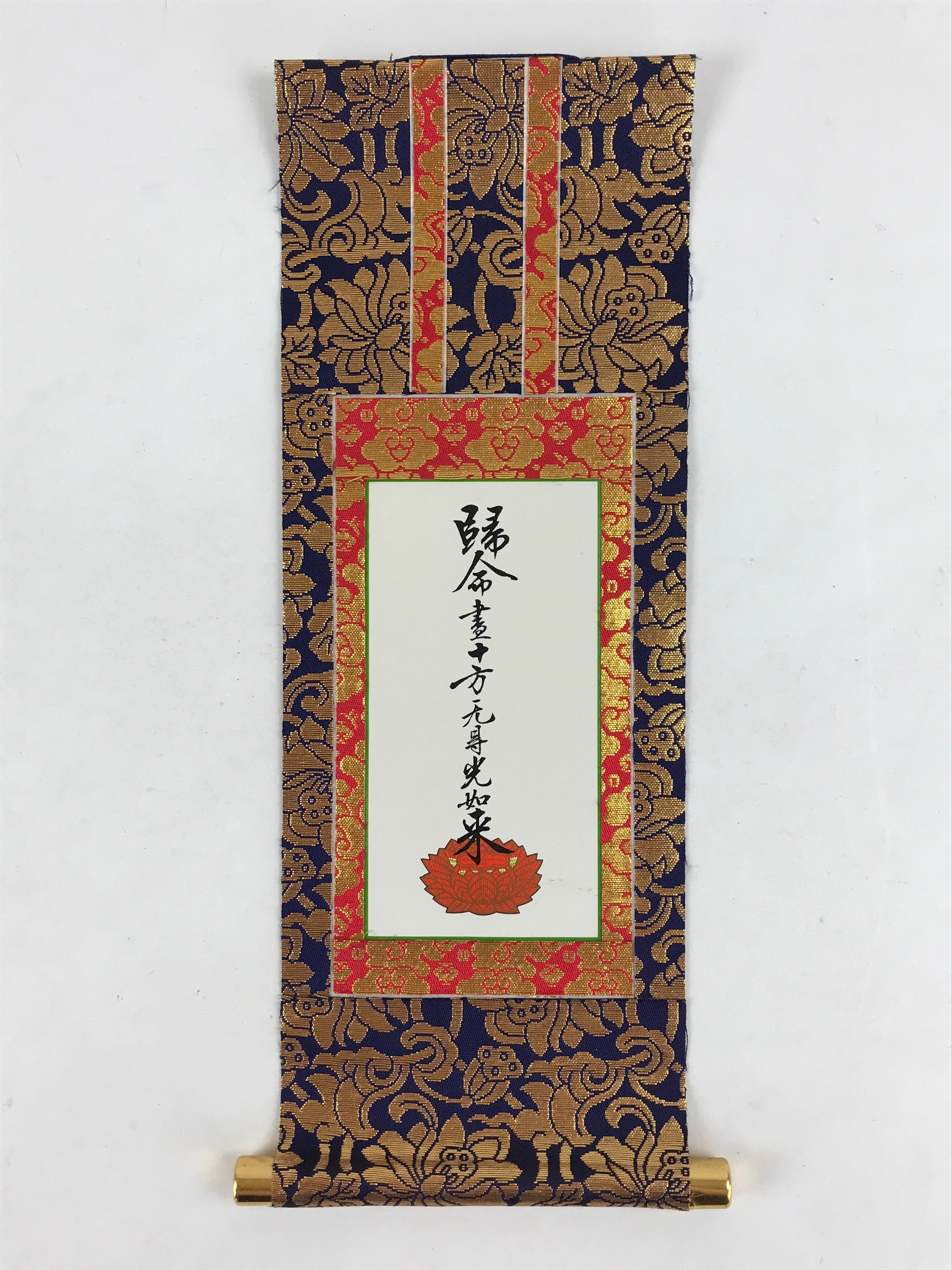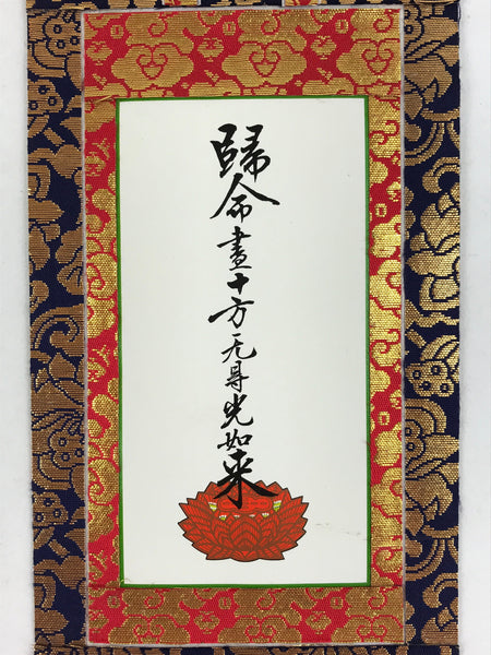 This is a Japanese hanging scroll that hangs on the Buddhist altar. The sect is Jodo Shinshu Otani. Three hanging scrolls are usually hung inside the Buddhist altar, with "Amida Nyorai'' in the center, "Juji-Myogo'' on the right, and ``Kuji-Myogo" on the left. This is the "Juji-Myogo" to hang on the right.