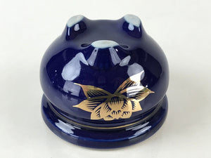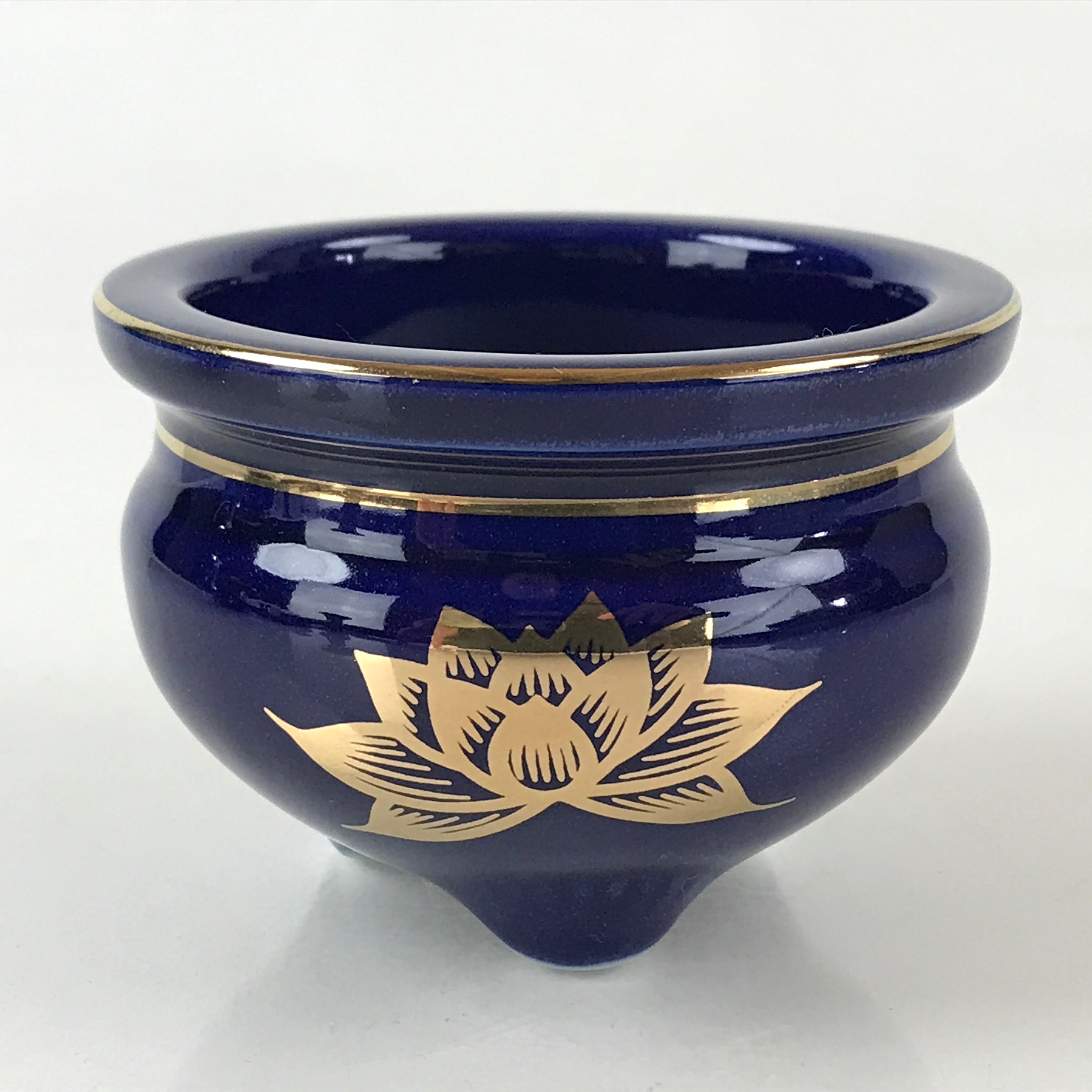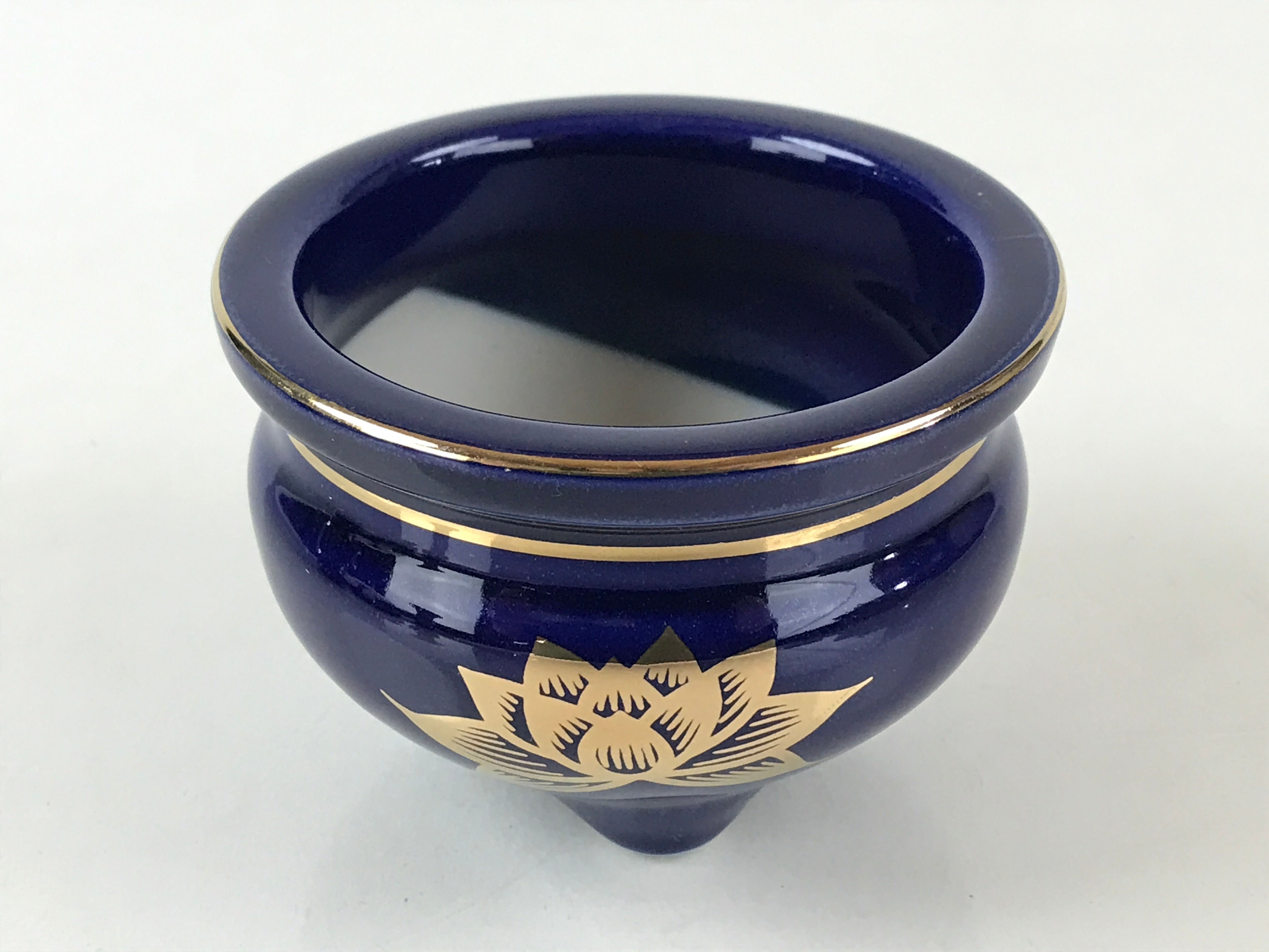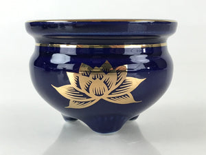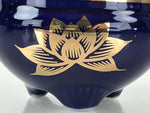 This is a vintage Japanese incense burner Koro. An incense burner is a vessel used for burning incense sticks. The incense burner for Buddhist altar fittings is used by putting Korohai (incense burner ash) inside and putting incense on it. There is a golden lotus flower on the side.