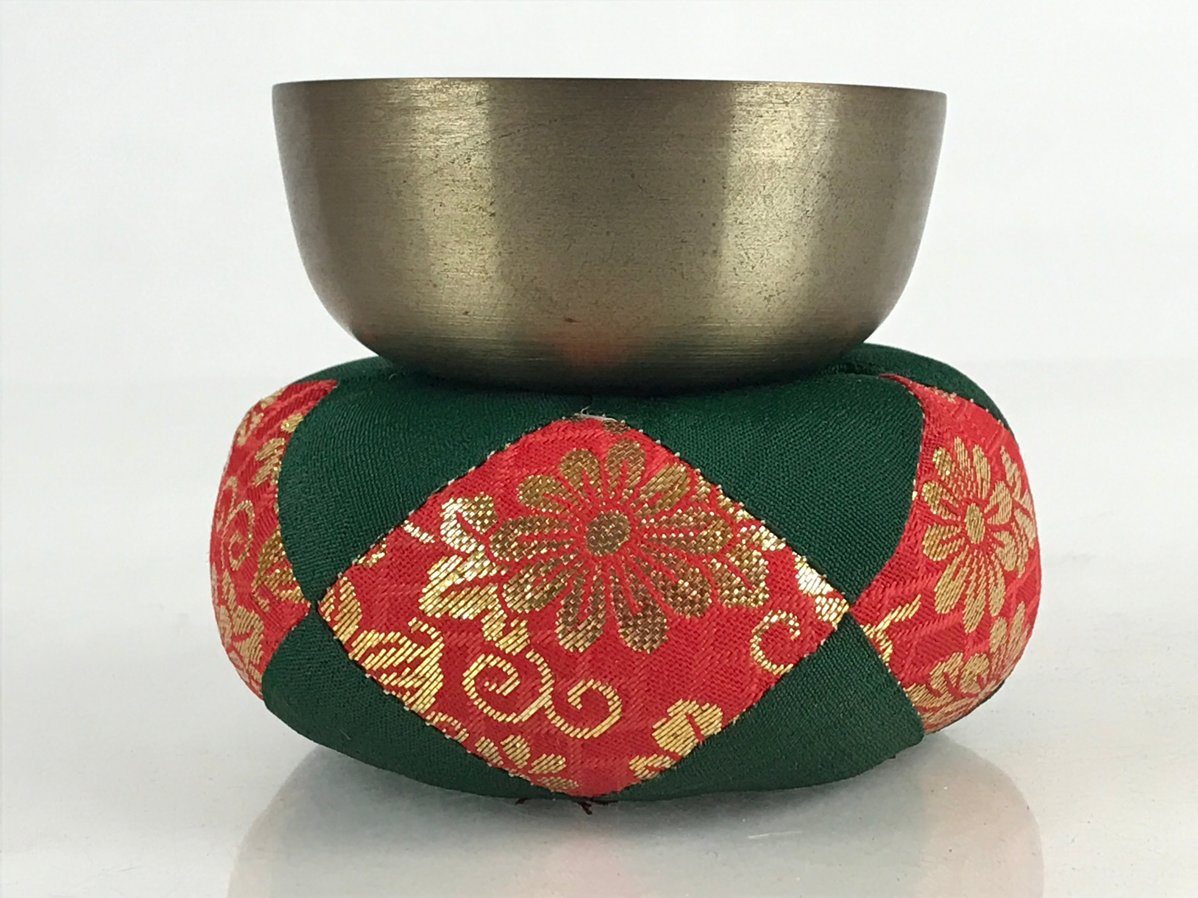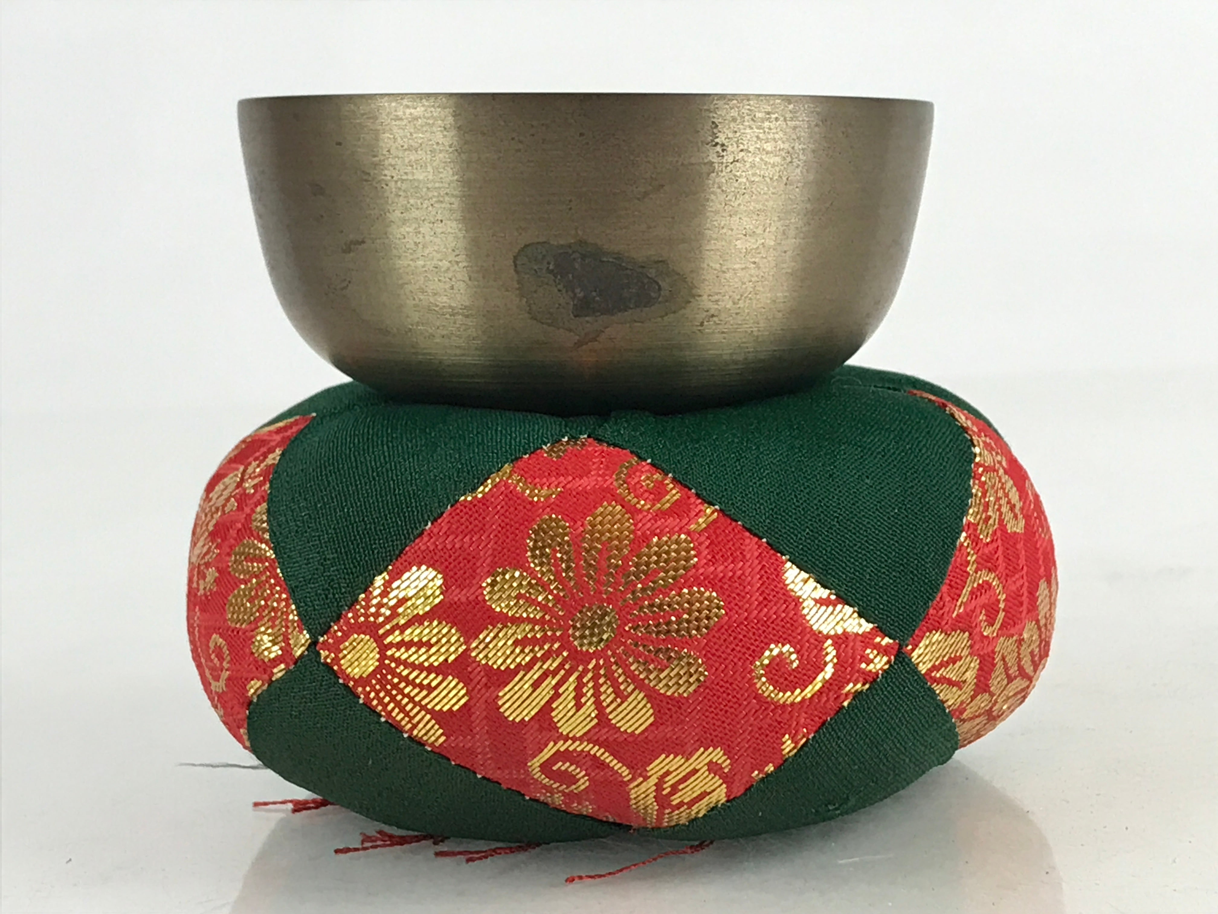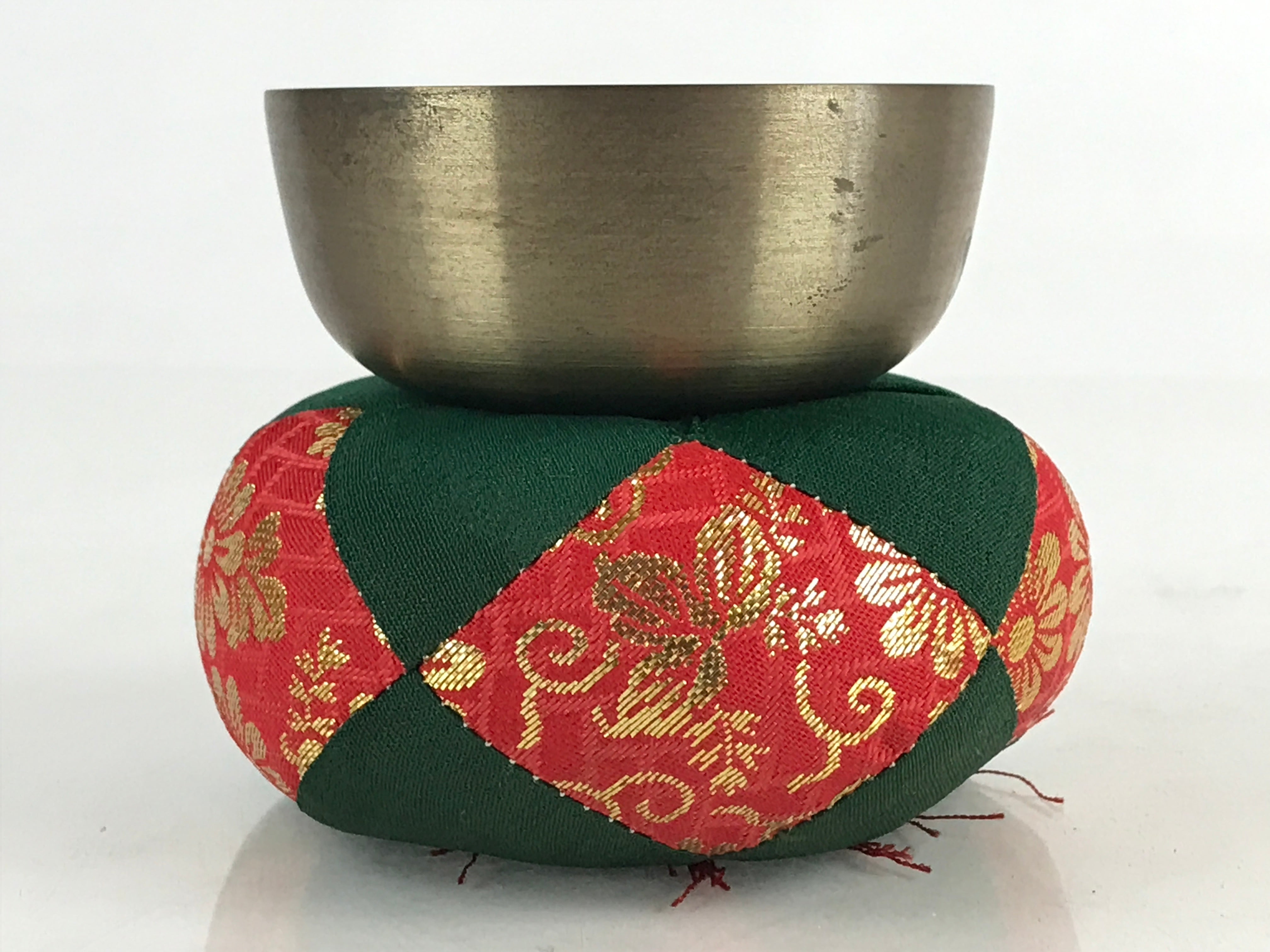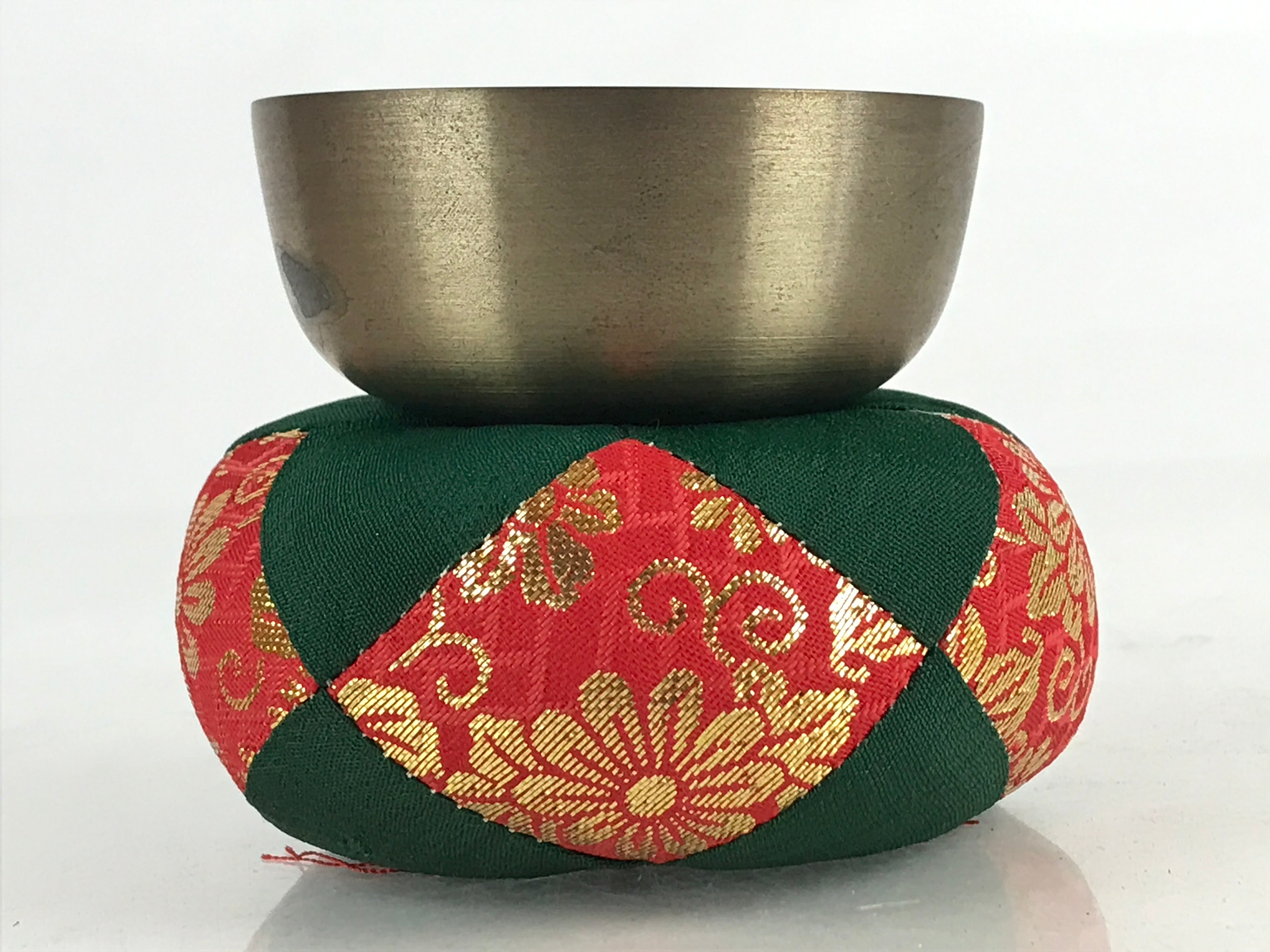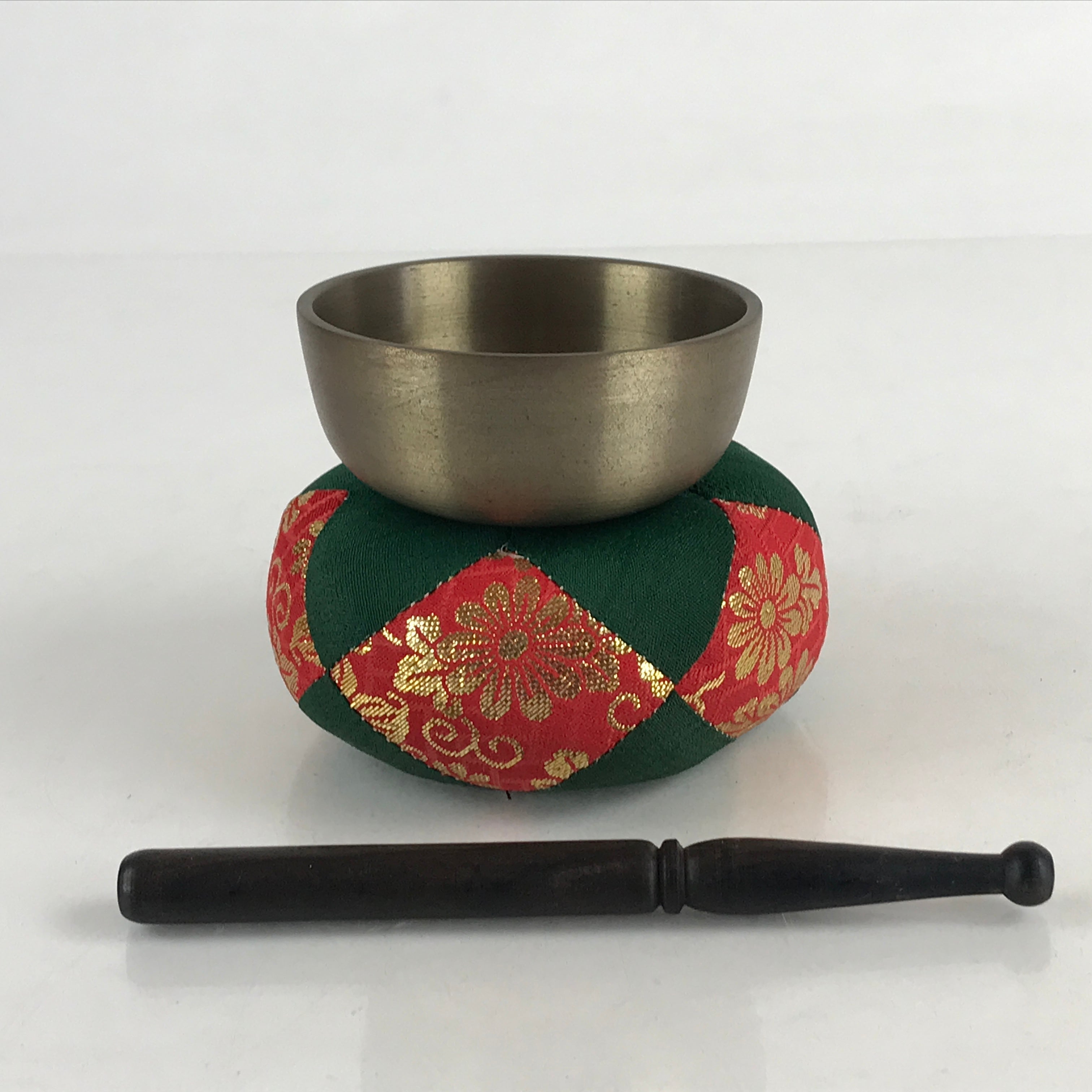 • Including brass rin bell, fabric pillow (Red, green, and gold embroidery), and wooden striker