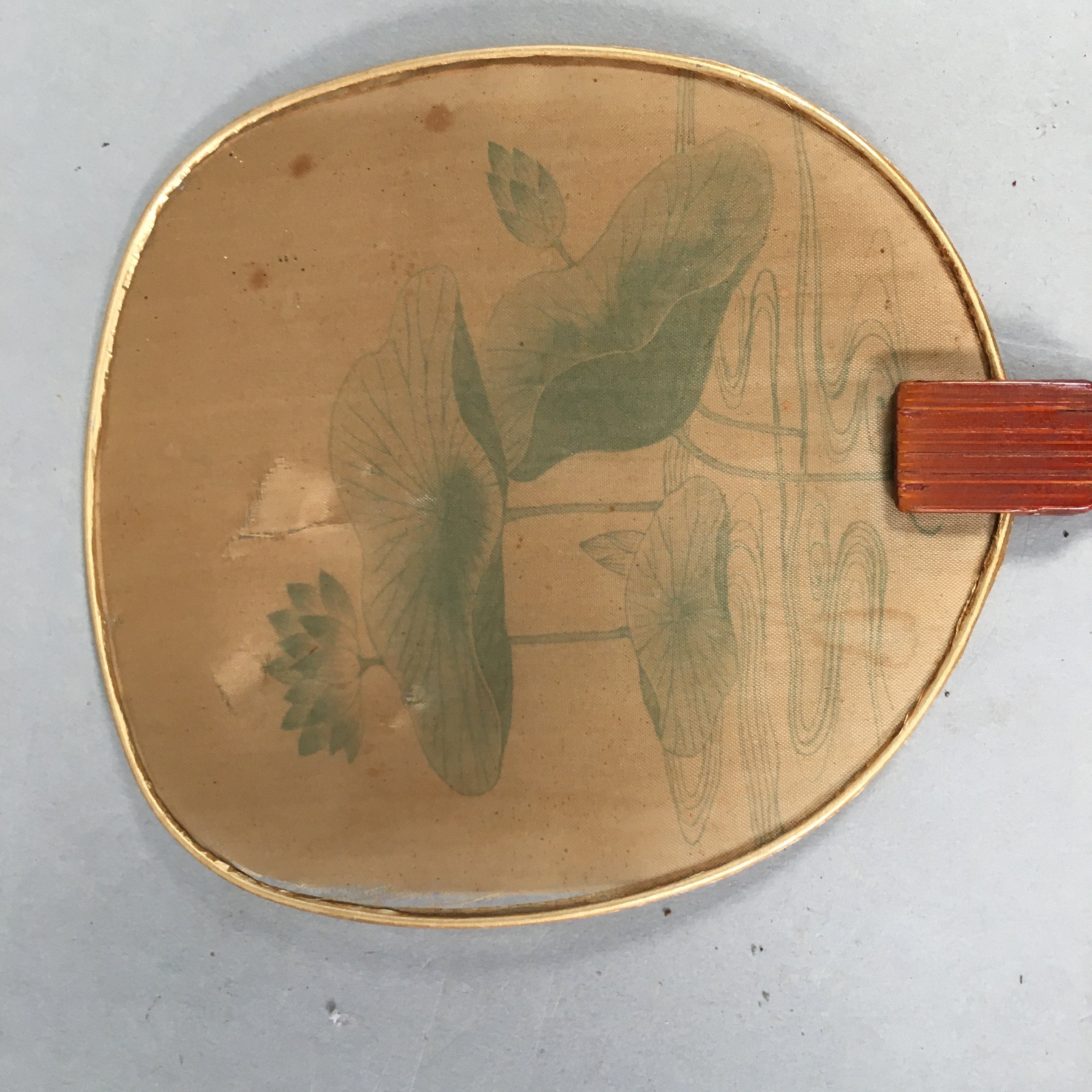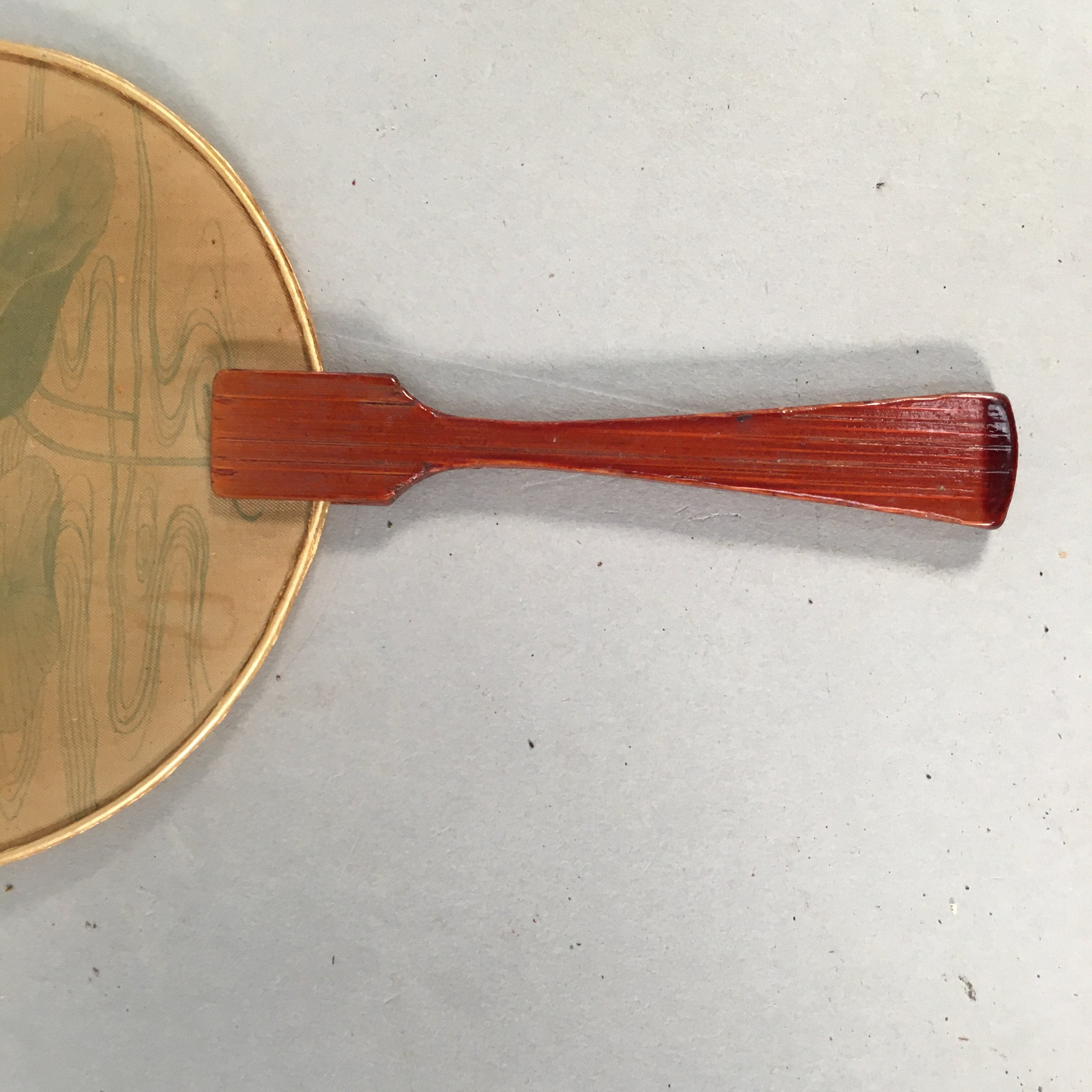 Japanese Buddhist Altar Fitting Vtg Fan Uchiwa Wood Silk Butsugu BU381
