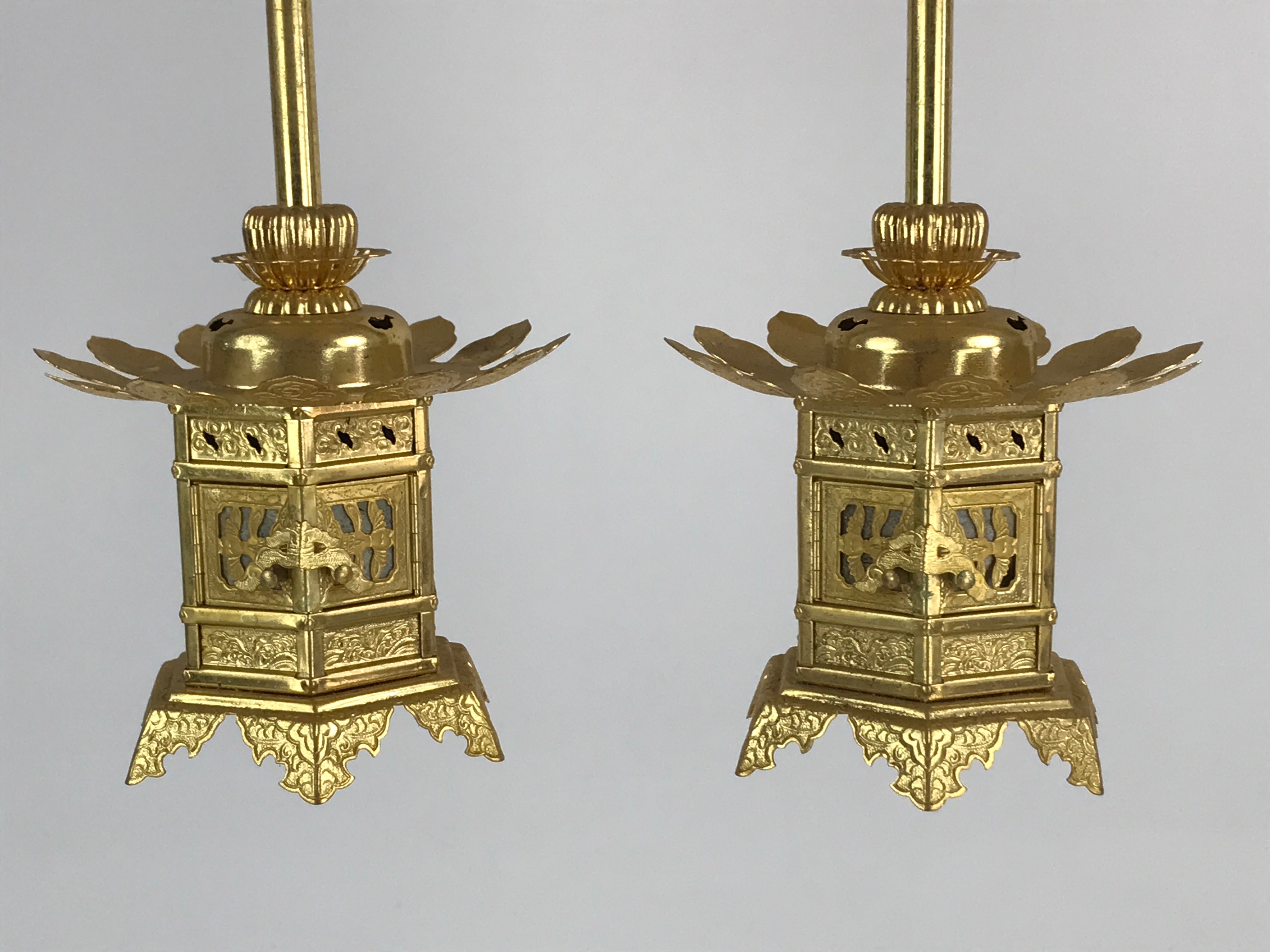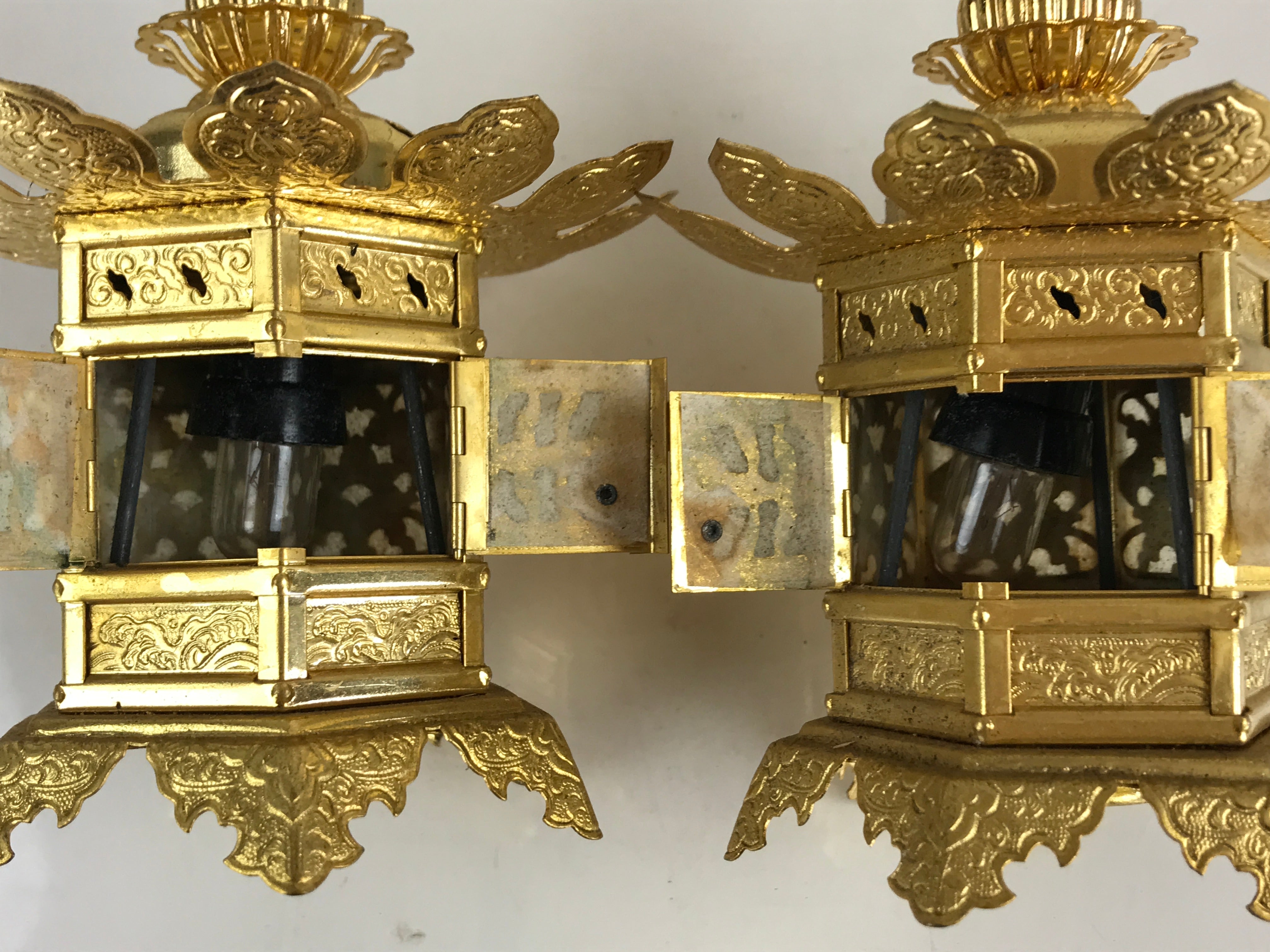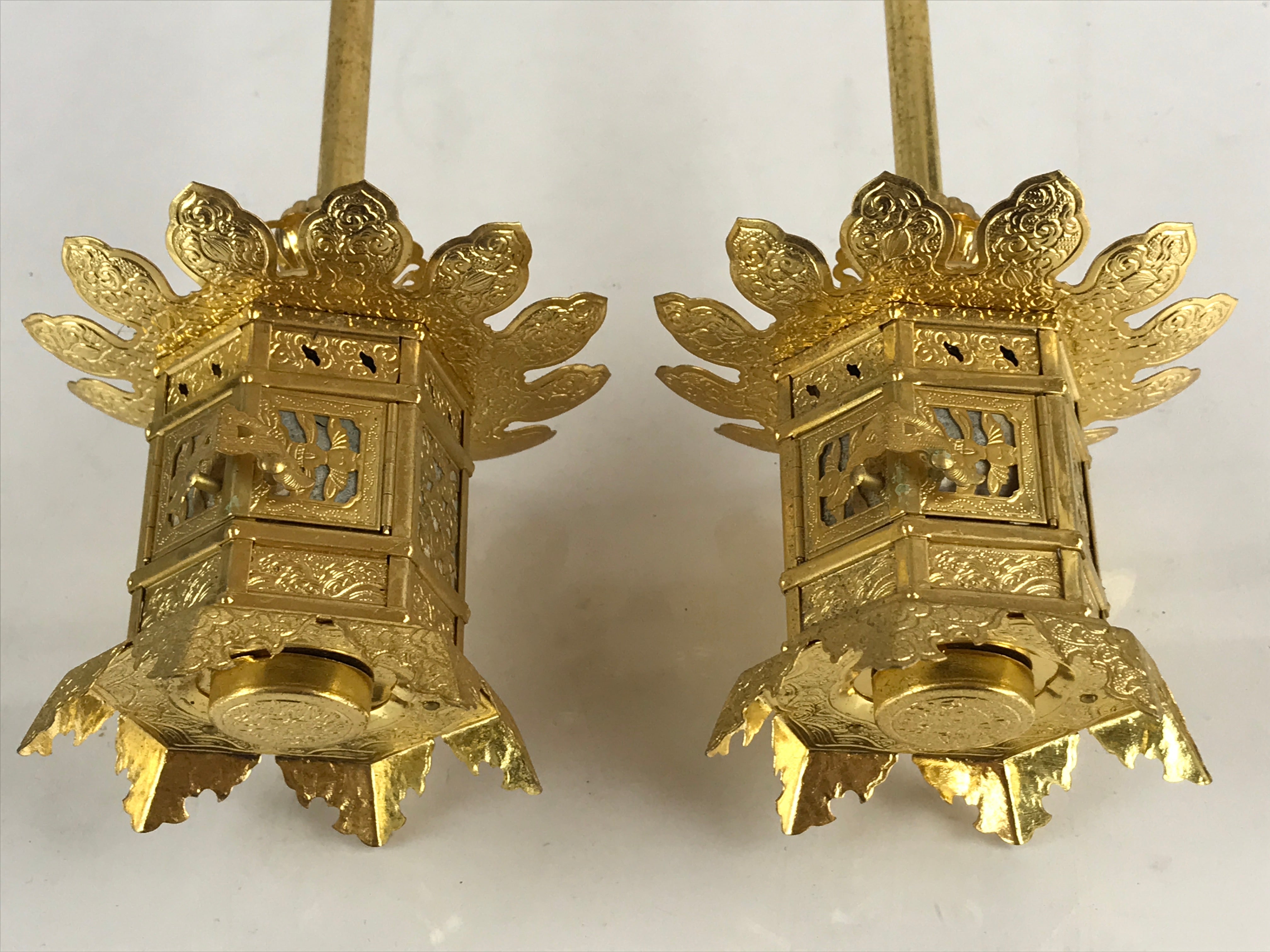 Japanese Pair Buddhist Altar Fitting Hanging Lantern Toro Butsugu