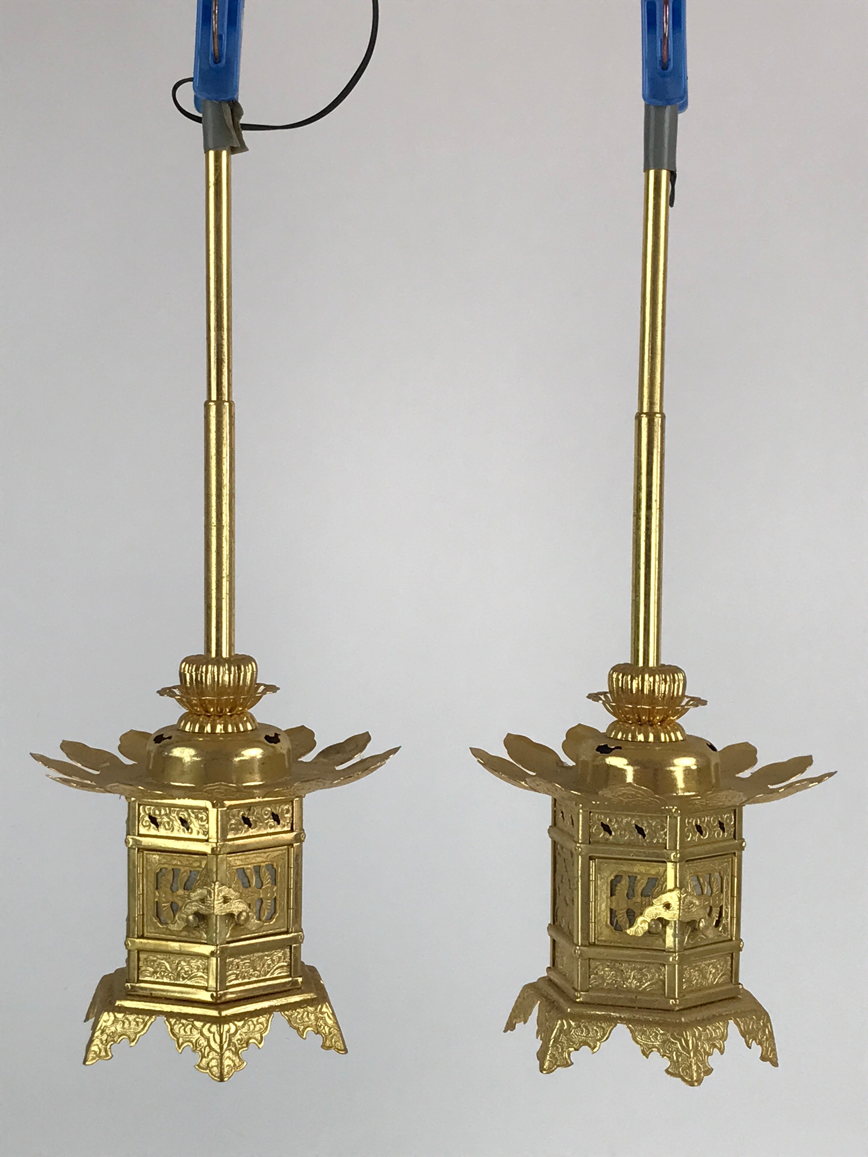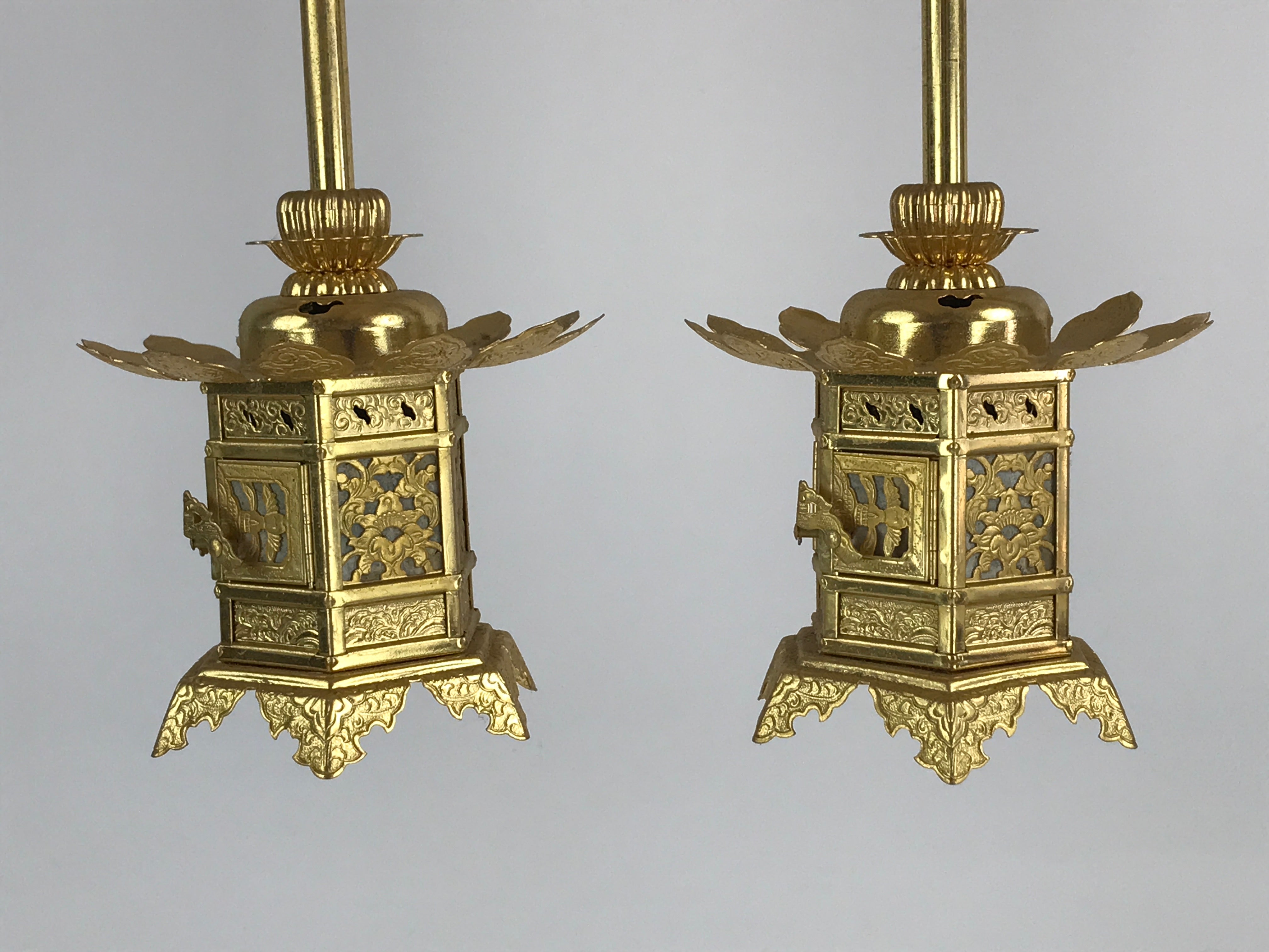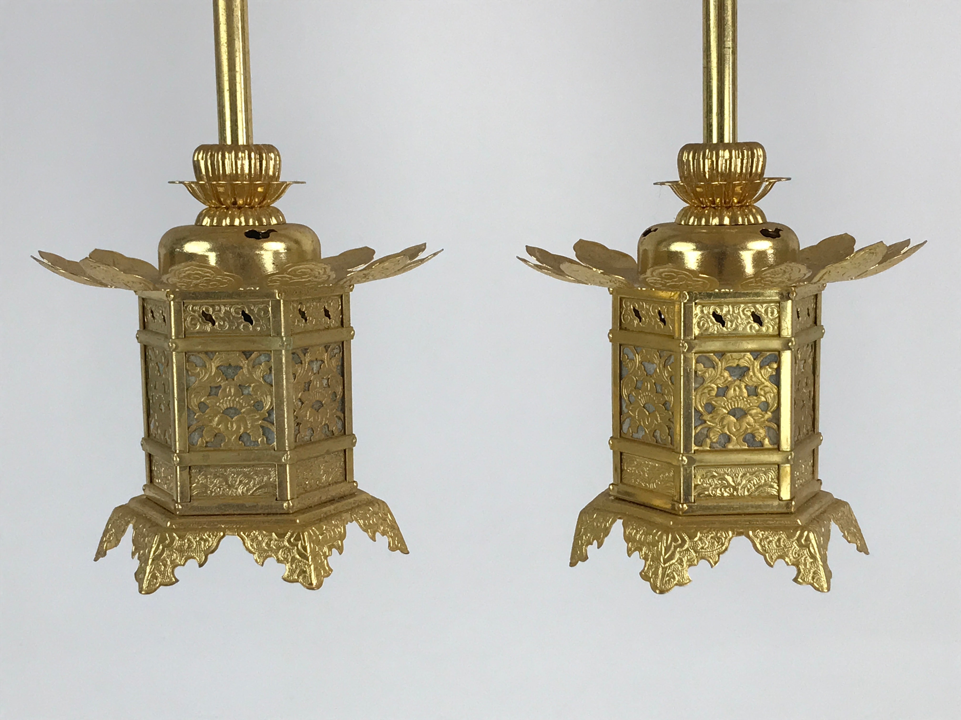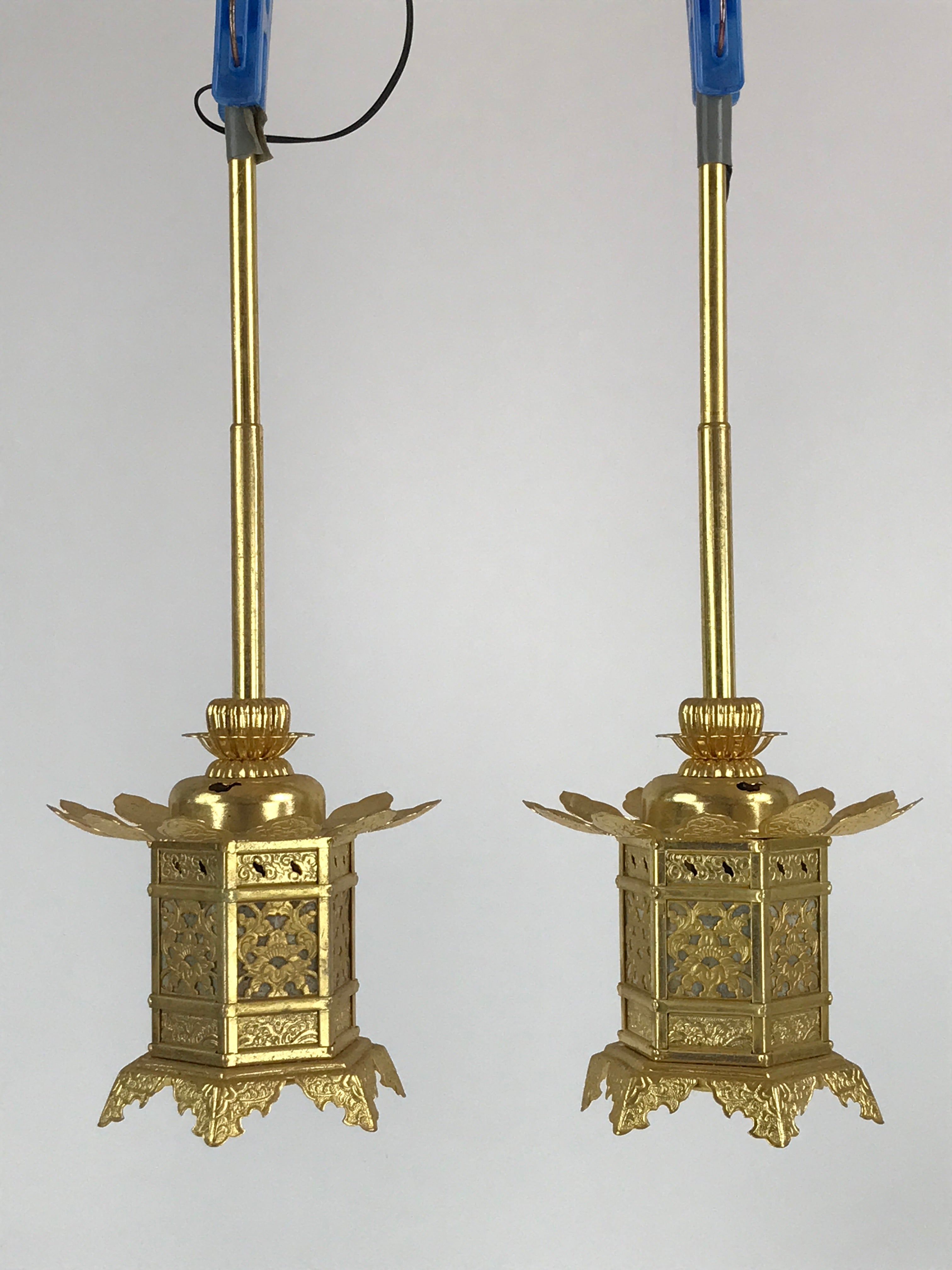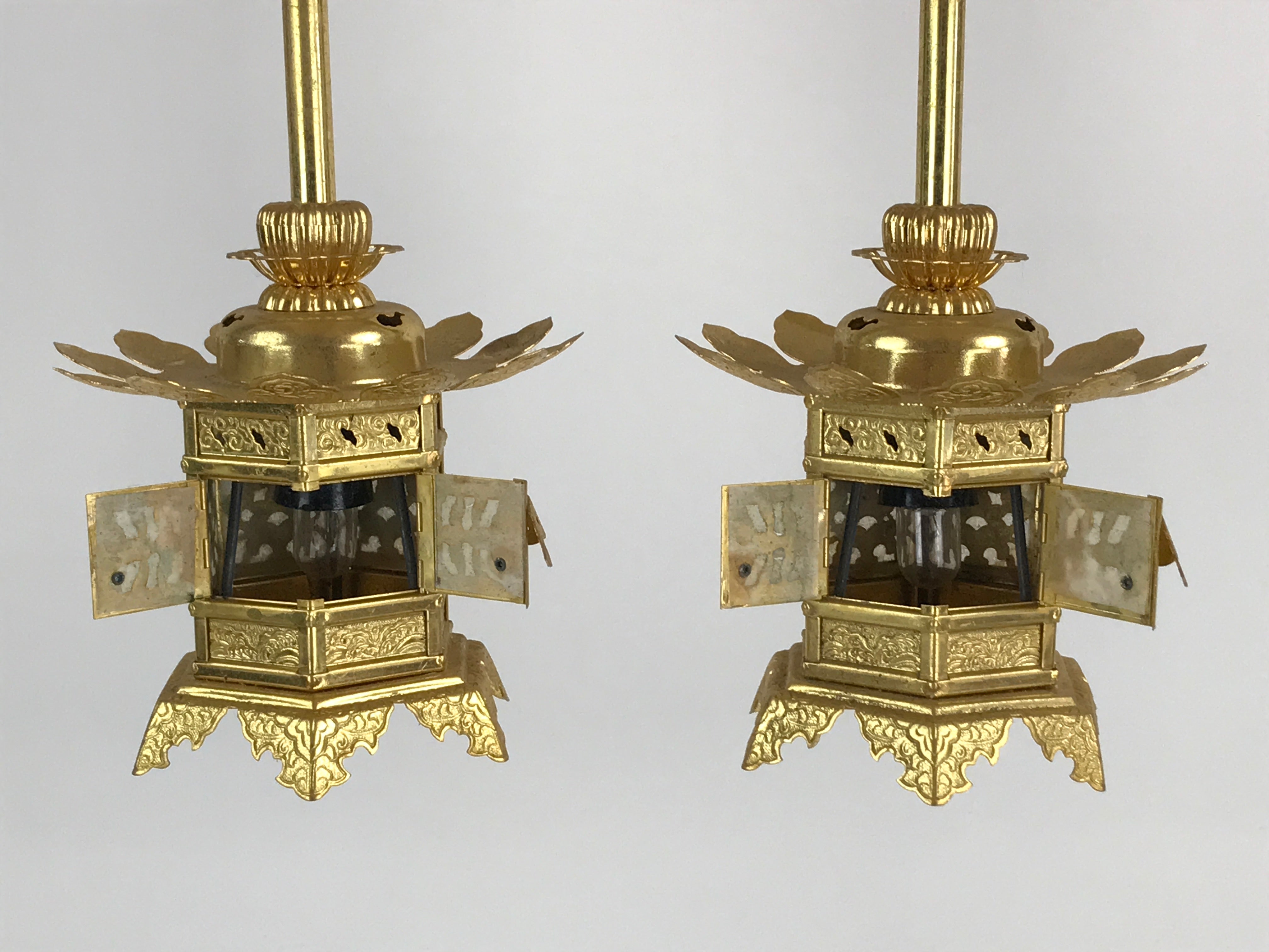 This is a Japanese Buddhist altar hanging lantern, Tsurushi-Toro. Tsurushi-Toro is a lantern that hangs from the ceiling of a Buddhist altar. Brighten up the altar. Connect the wiring set inside the Buddhist altar and decorate it with a pair of left and right.