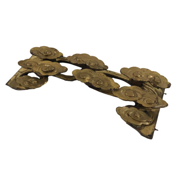 This is an antique Japanese part of a Buddhist altar (front piece). It is a very beautiful decorative item carved from wood and lacquered with gold paint. It is lightweight and features a collection of small clouds. It can be used as a spare part, for repair, or for decoration.