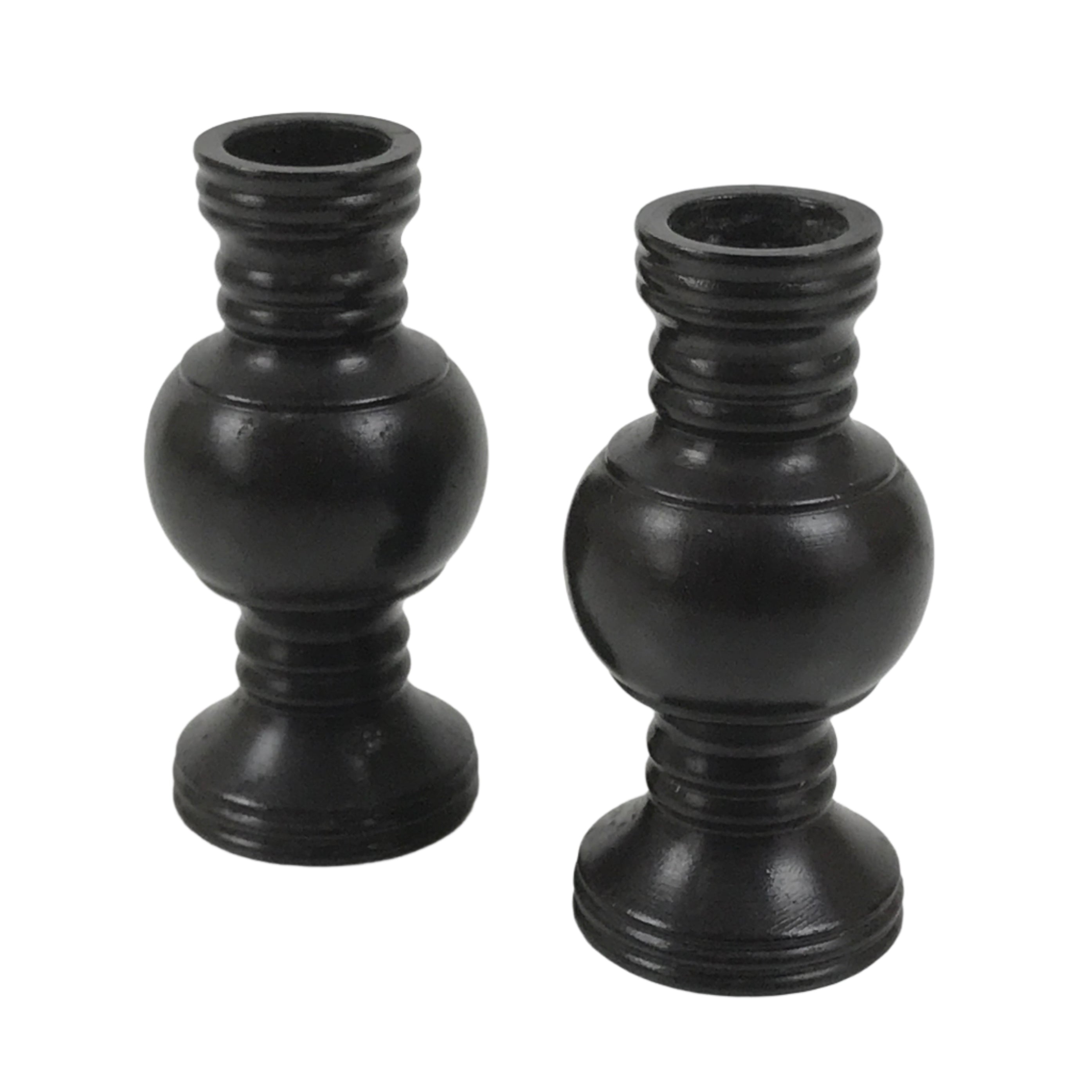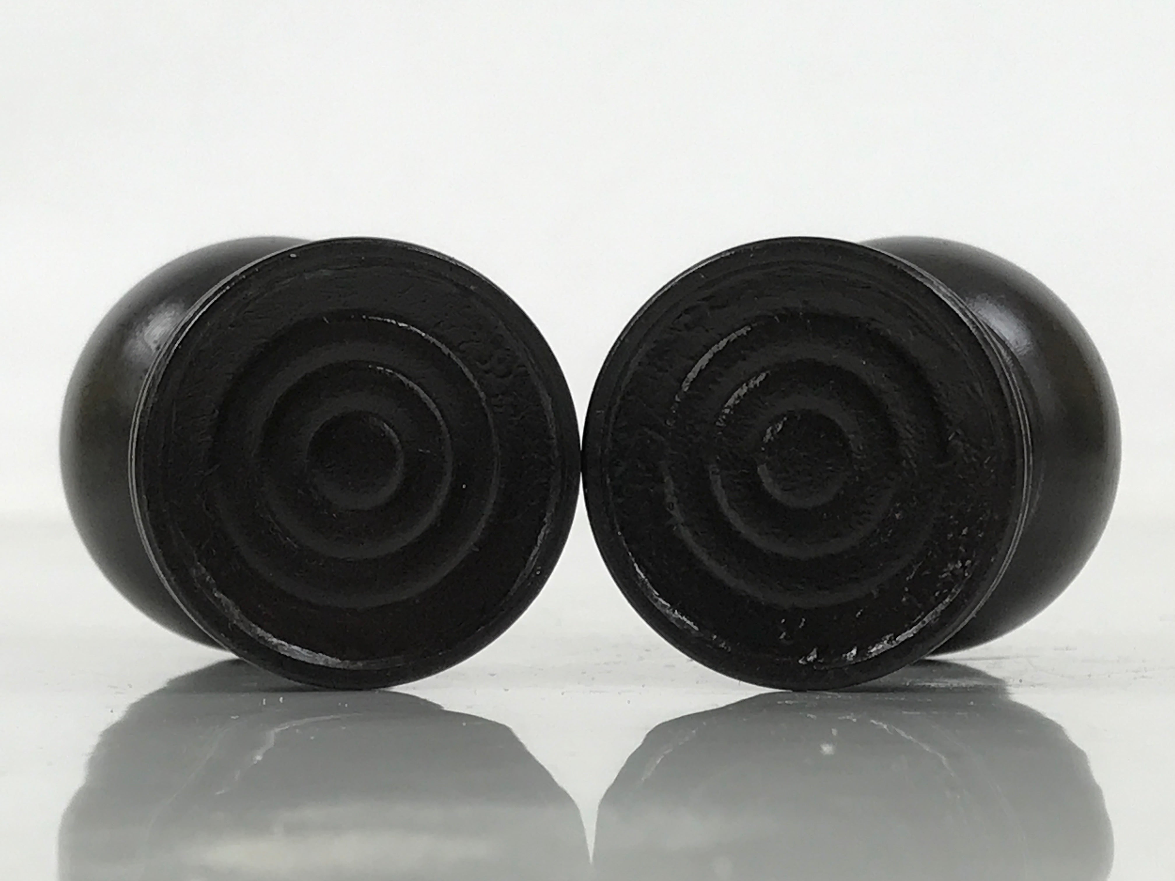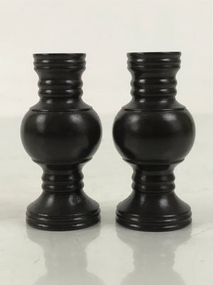 This is a pair of small dark brown metal flower vases, hanatate, for Buddhist altars. These particular vases are very simple in design with no added embellishments or designs. They each can hold individual or very small collections of flowers.