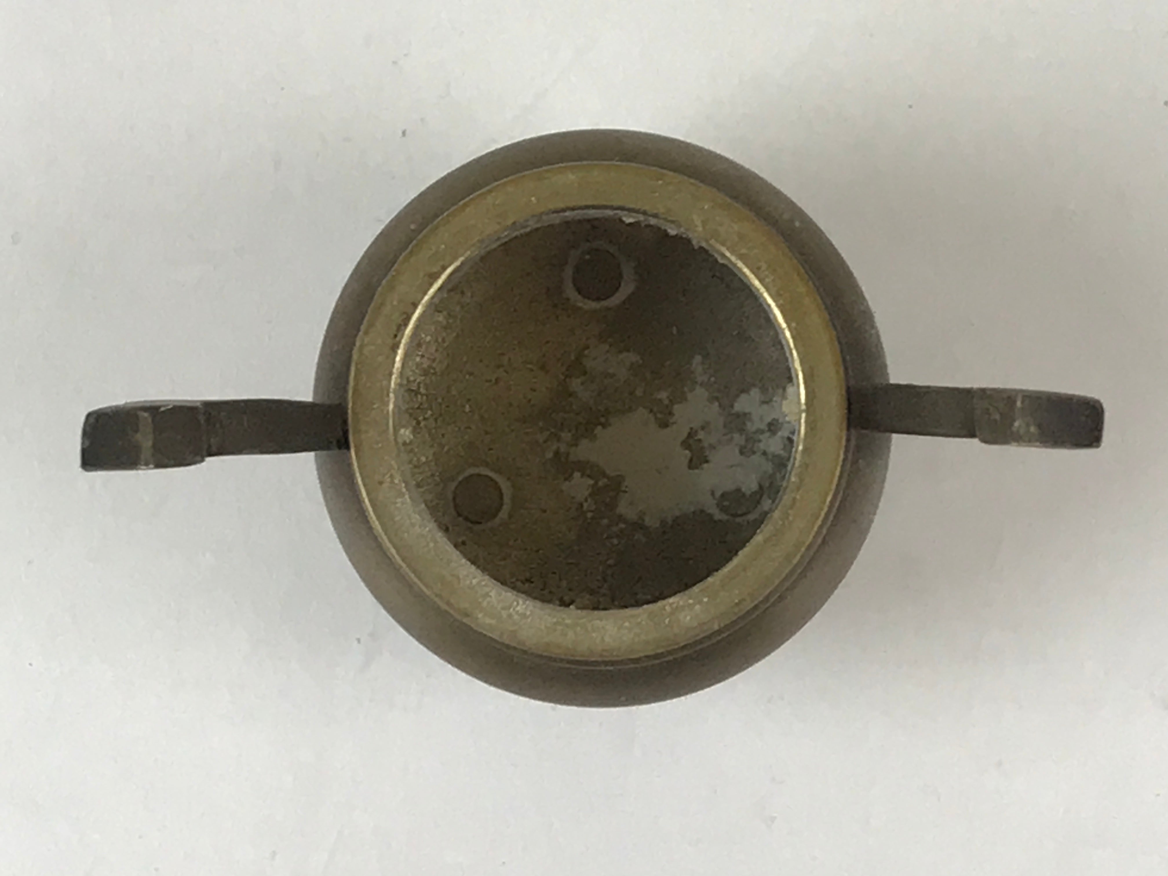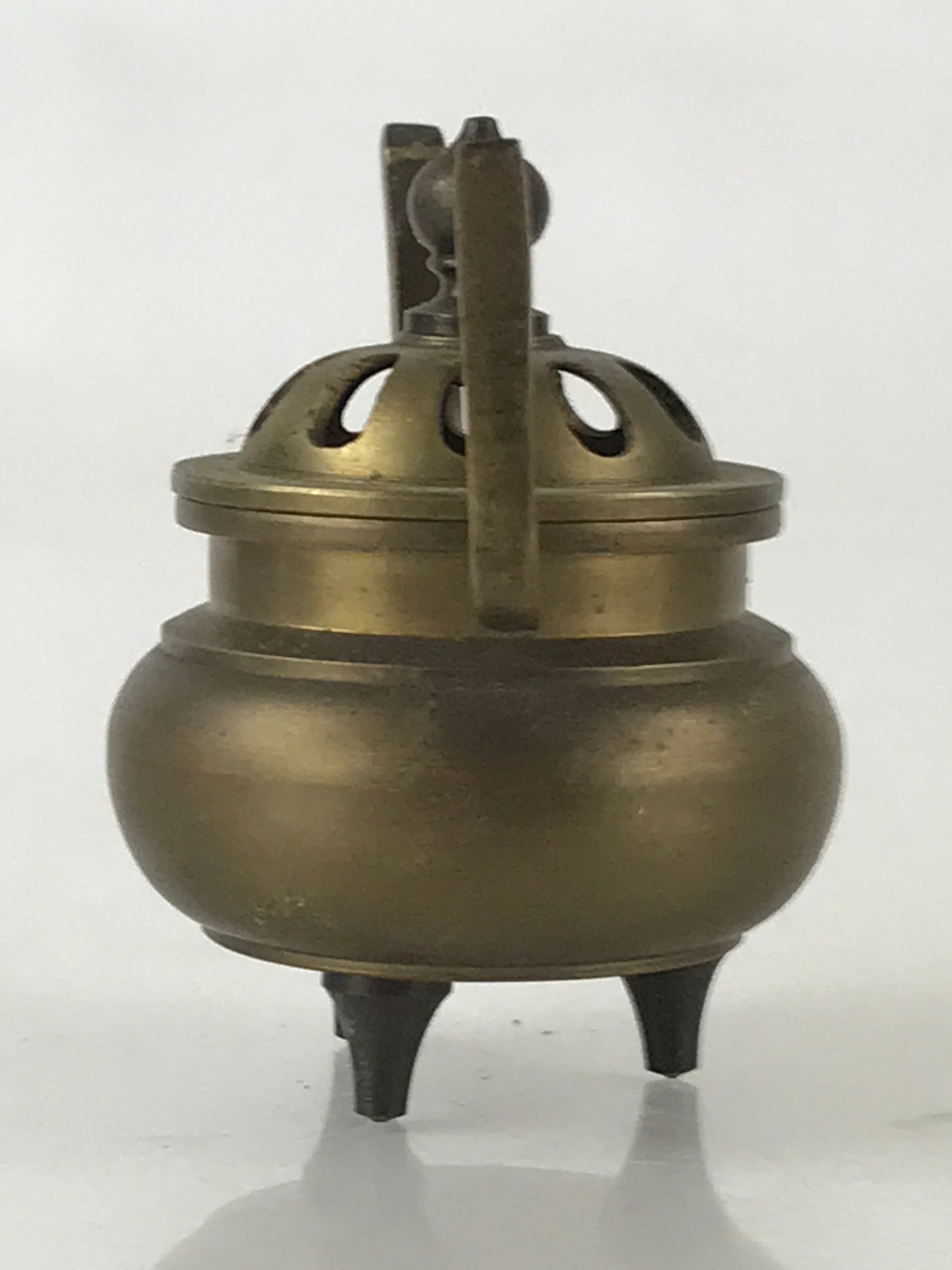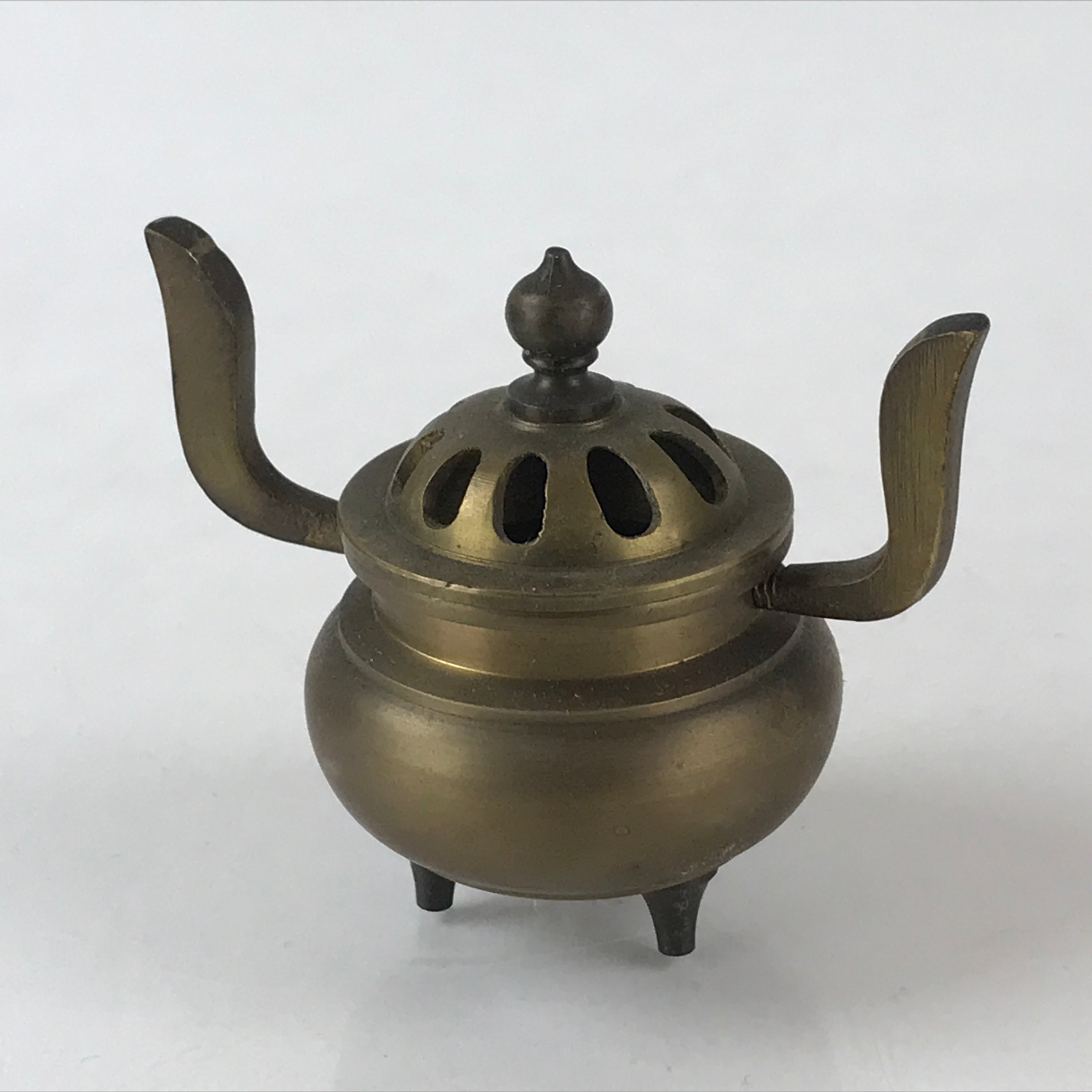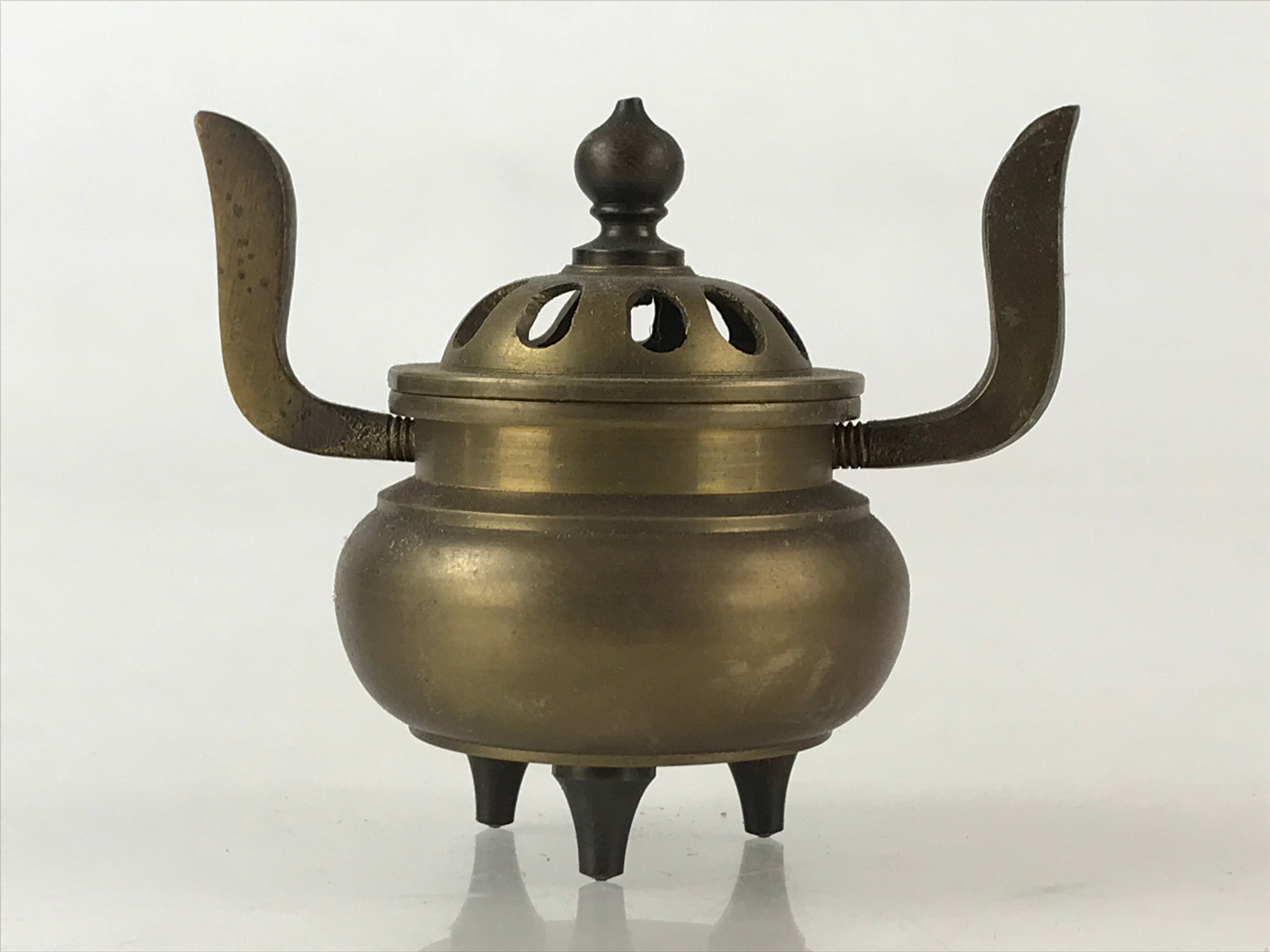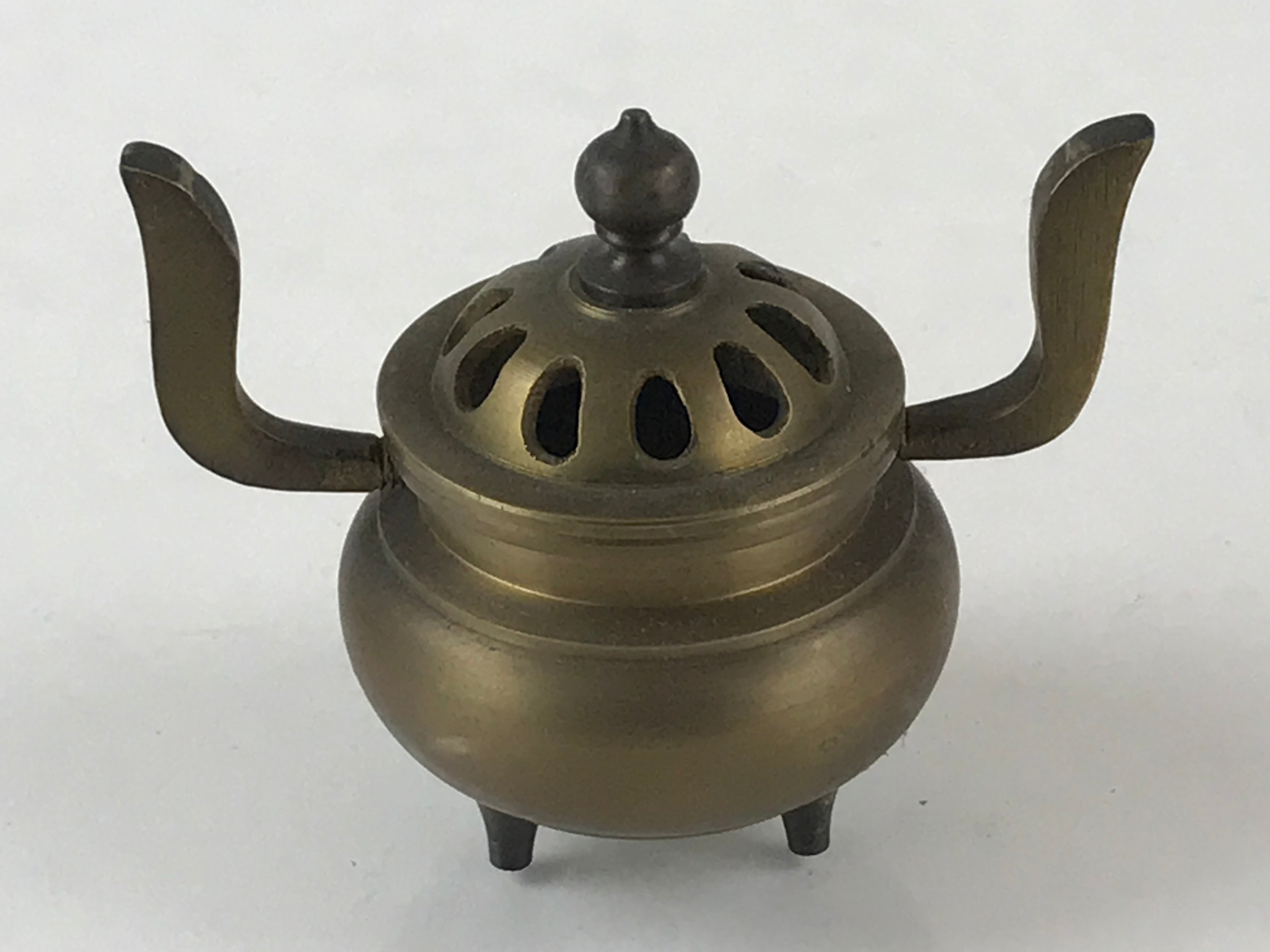 This is a vintage Japanese Buddhist altar fitting, incense burner, Koro. It is used for burning incense powder or sticks. The incense burner has the meaning of purifying the body of the worshiper. There is a lid on the top.