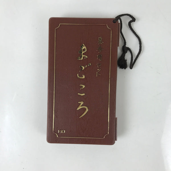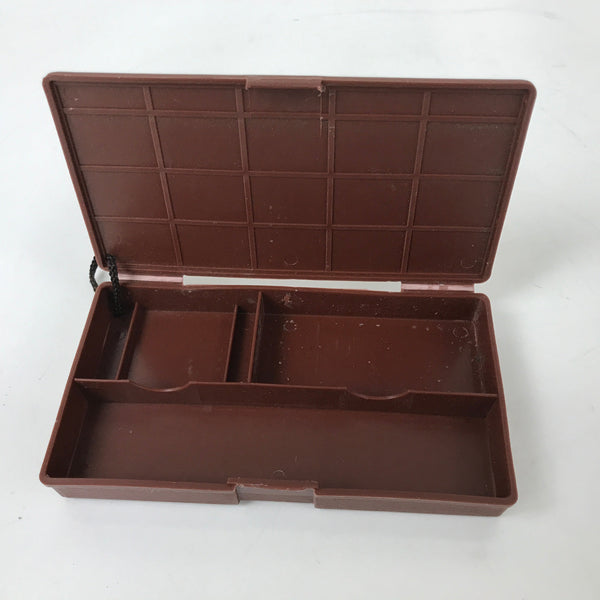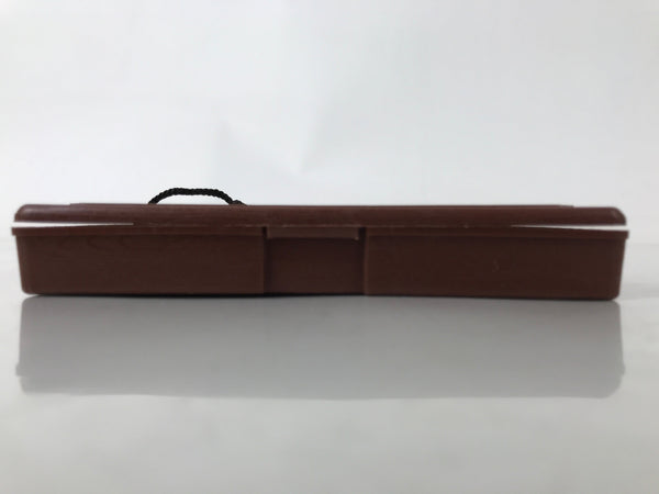 This vintage Japanese incense sticks, candles, and match box storage case is made to carry all the materials needed when visiting one's ancestors' graves (called haka mairi in Japanese). This empty plastic box has dedicated compartments for each item. It can fit 2 standard Japanese incense stick bundles, 10 standard Japanese altar candles, and a match box. The box has an attached cord.