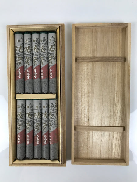 These are vintage Japanese Buddhist o-senko, incense sticks cased in a wooden box. It has ten bundles of sticks, and a bundle contains about fifty sticks; about five hundred pieces in total.  It has a gold inscription on the box lid.