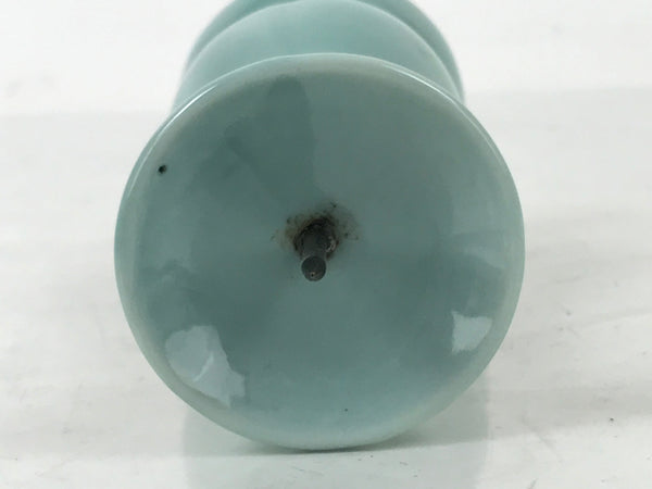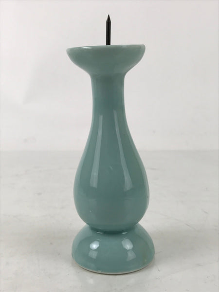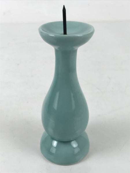 This item is a Japanese vintage Buddhist altar candle holder stand. This porcelain candlestick has a blue celadon glaze and has a very simple, classic design. Candlestands or candlesticks are basic Buddhist tools used in most sects and an essential for Buddhist altars (Butsudan).