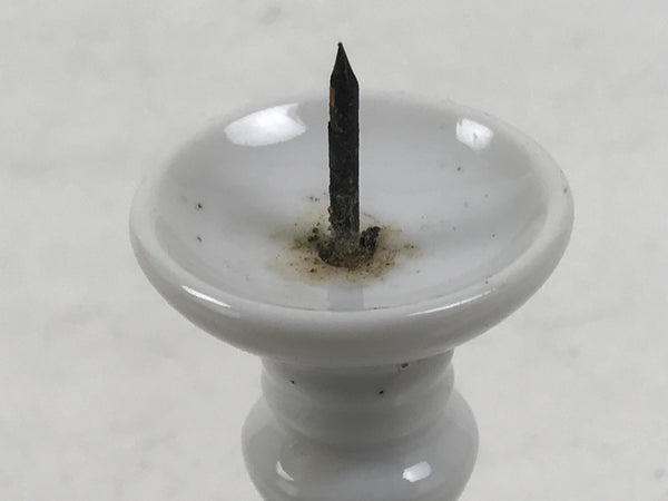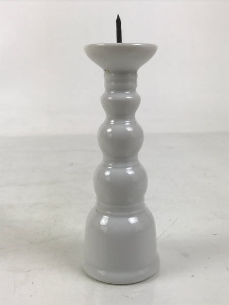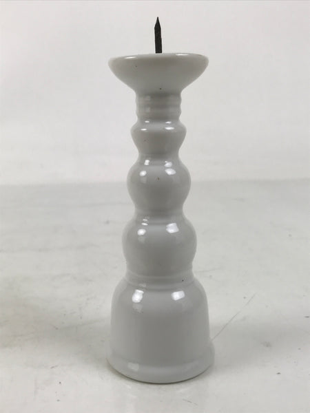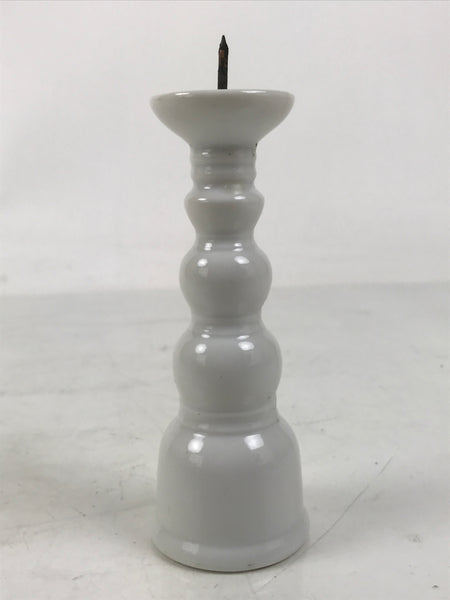 This item is a Japanese vintage Buddhist altar candle holder stand. This porcelain candlestick has a bright white glaze and has a very simple, classic design. Candlestands or candlesticks are basic Buddhist tools used in most sects and an essential for Buddhist altars (Butsudan).