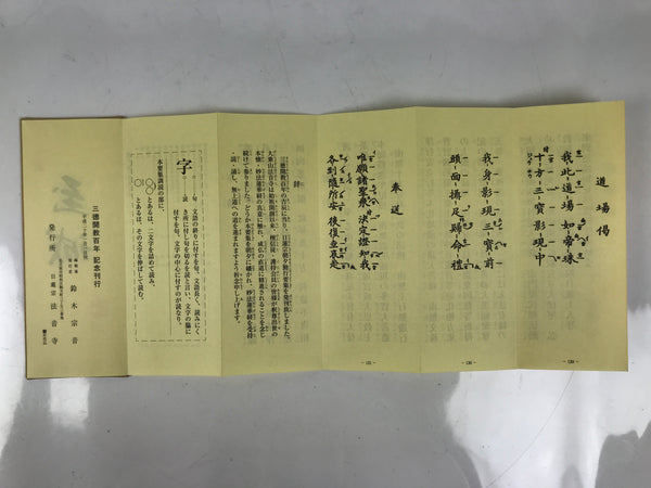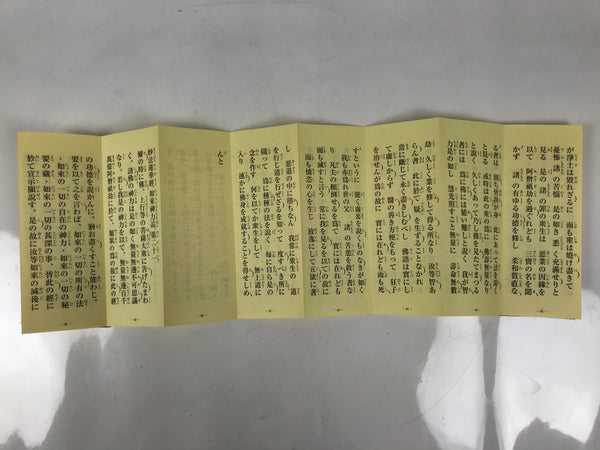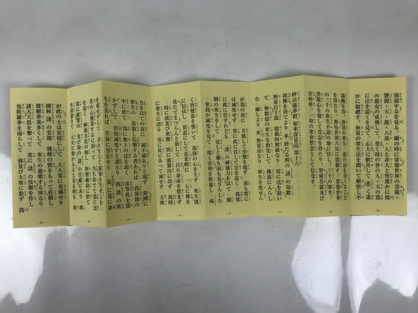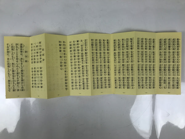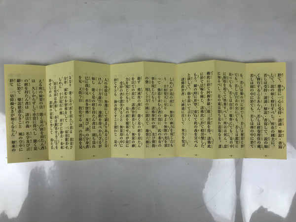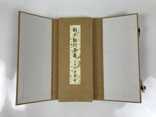 This vintage Japanese Buddhist book is called Choseki Gongyo Yoshu and is for morning and evening services at Houonji temple (Nichiren school). It is an accordion-type book protected by a cardboard cover and has a matching paper box.