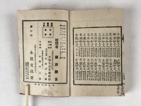 This is a vintage Japanese Buddhist sutra book. This book's title is Zaikagongyoshu and it features sutra texts for the Jodo Shinshu Hongwanji-ha sect. This sutra book has a red cover. It was published in 1938 (Showa 13).