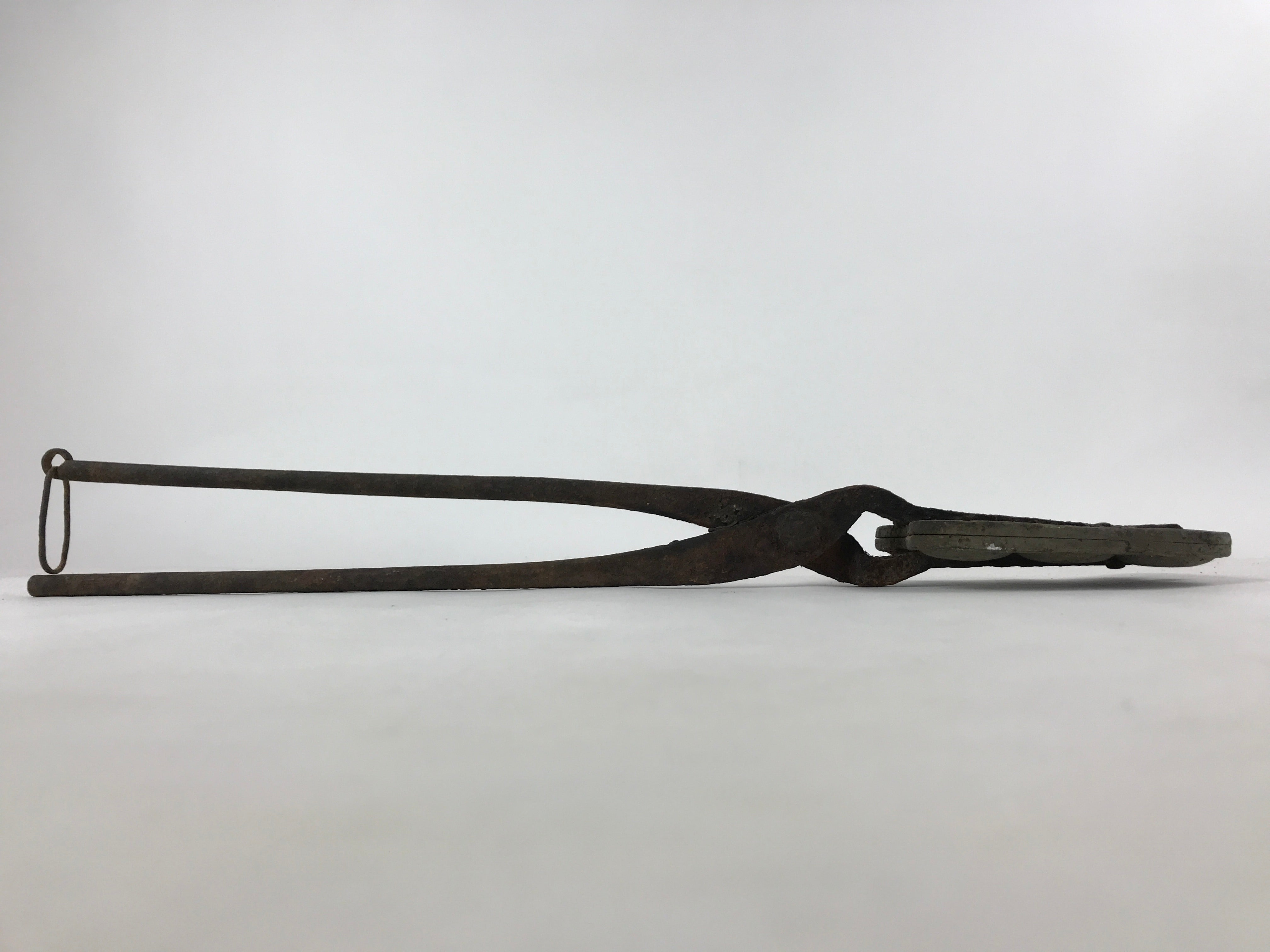 Japanese Cast Iron Monaka Shell Baking Mold Vtg Sweet Confection Hand Press T109