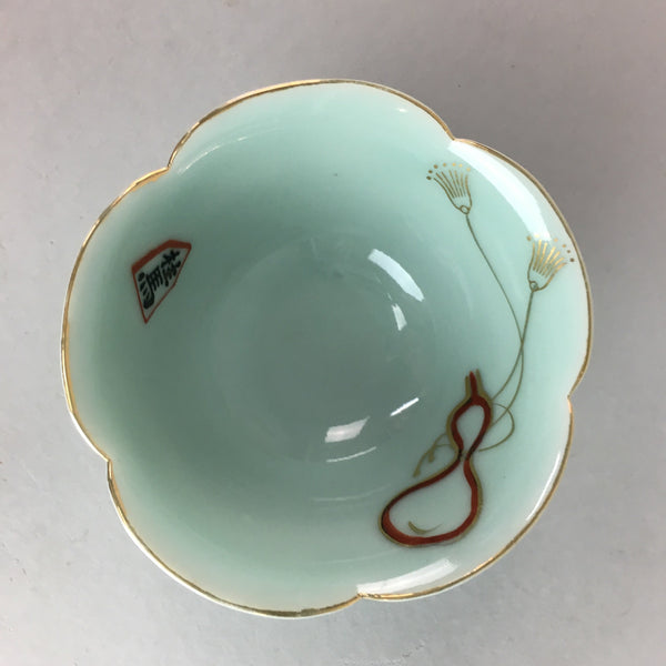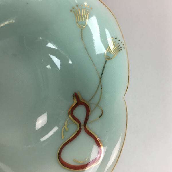 Japanese Celadon Small Bowl Vtg Porcelain Green Kobachi Gourd Chess Floral PT671