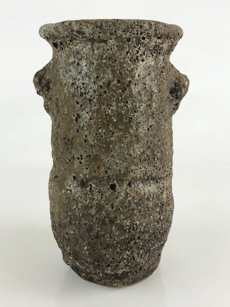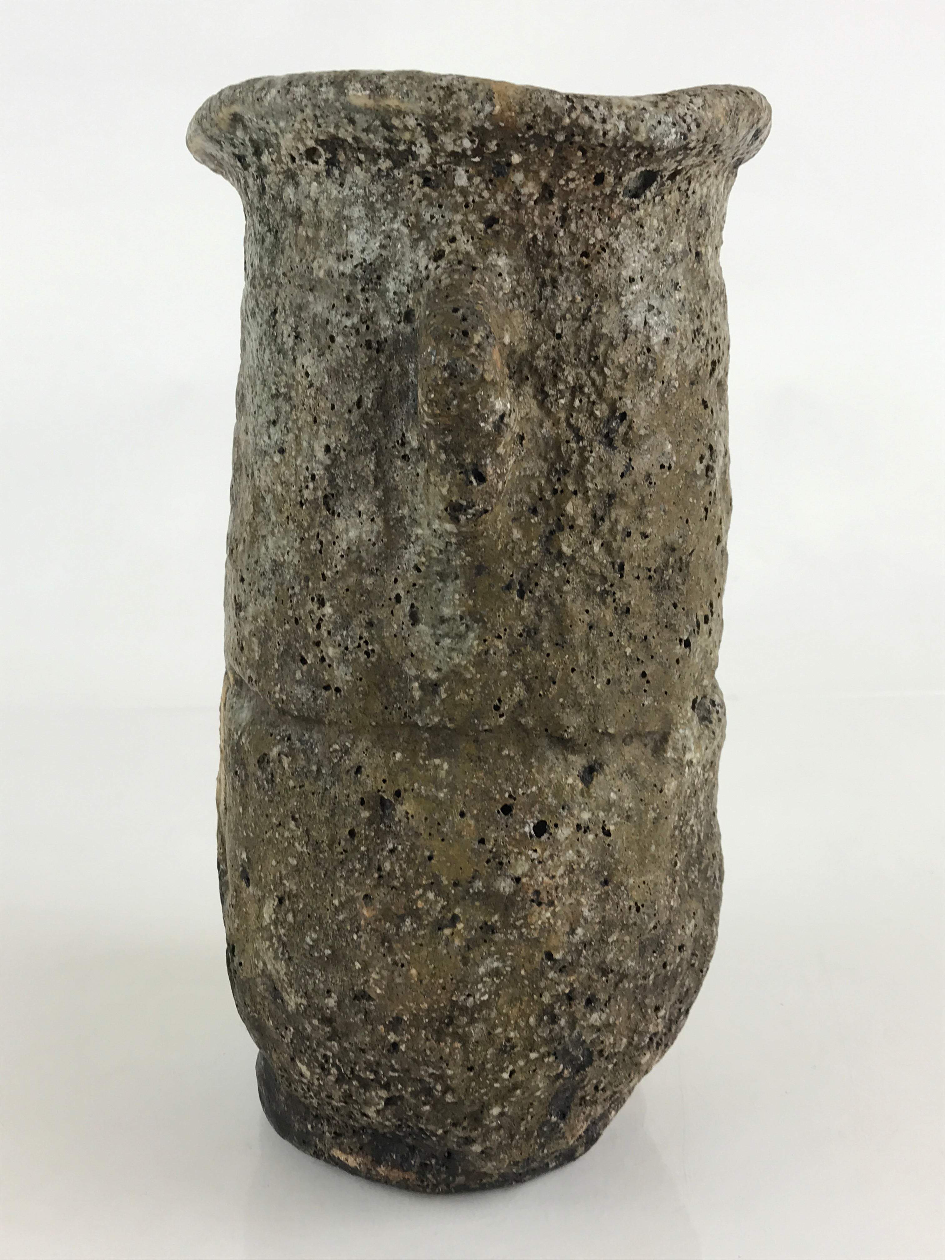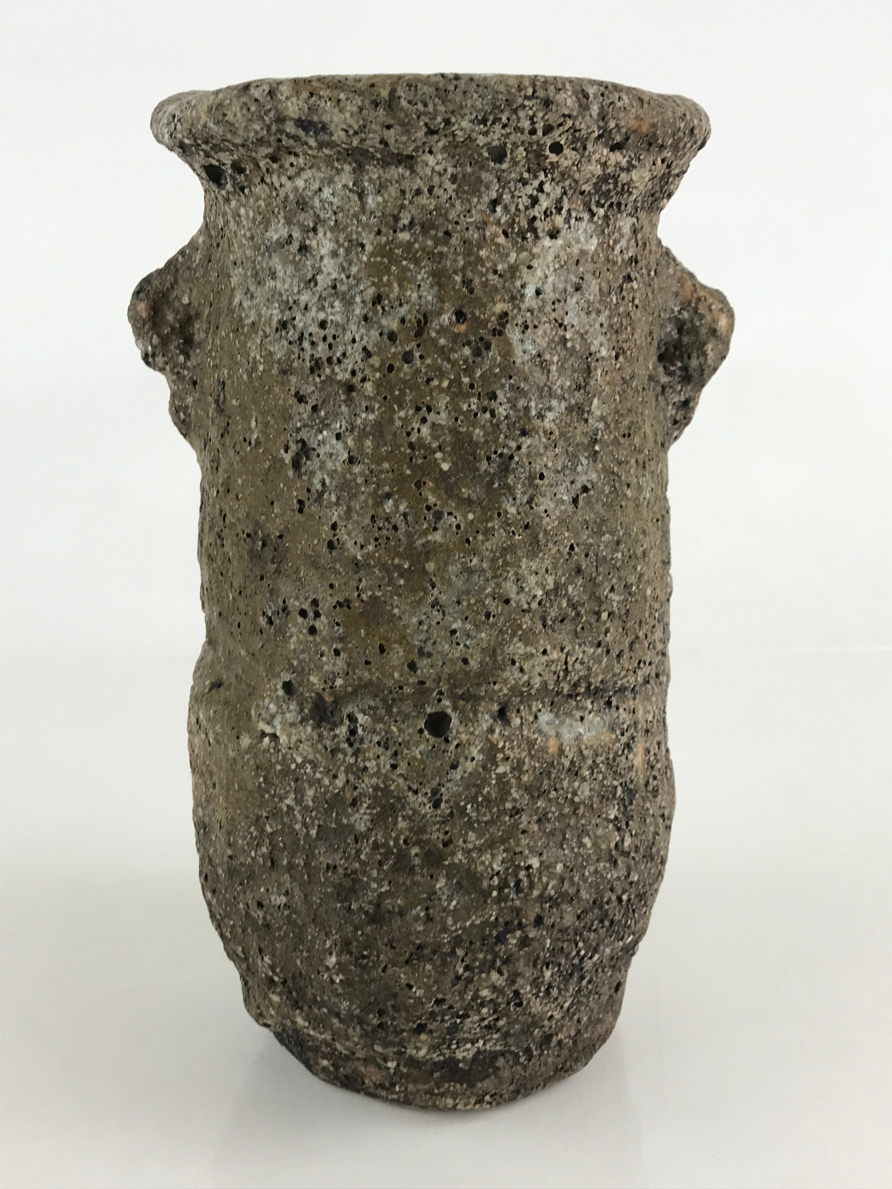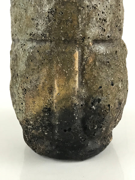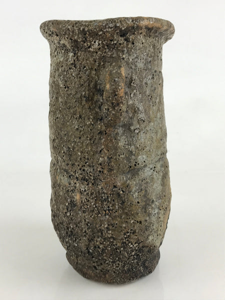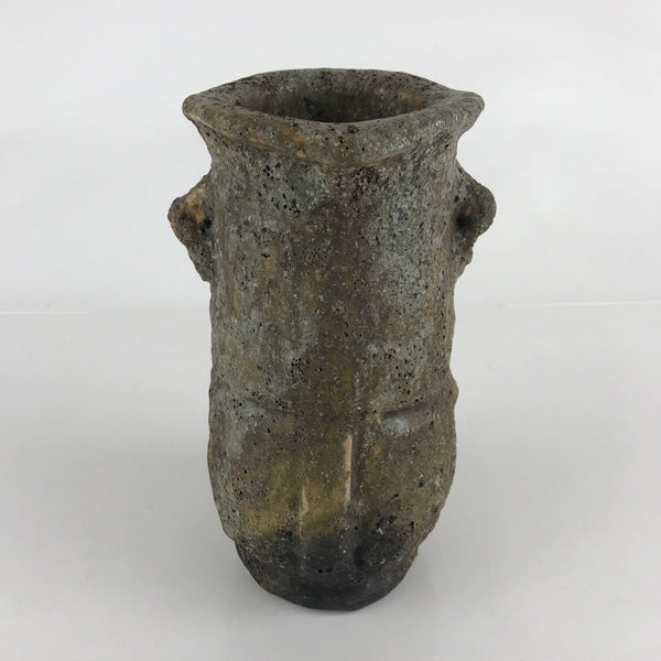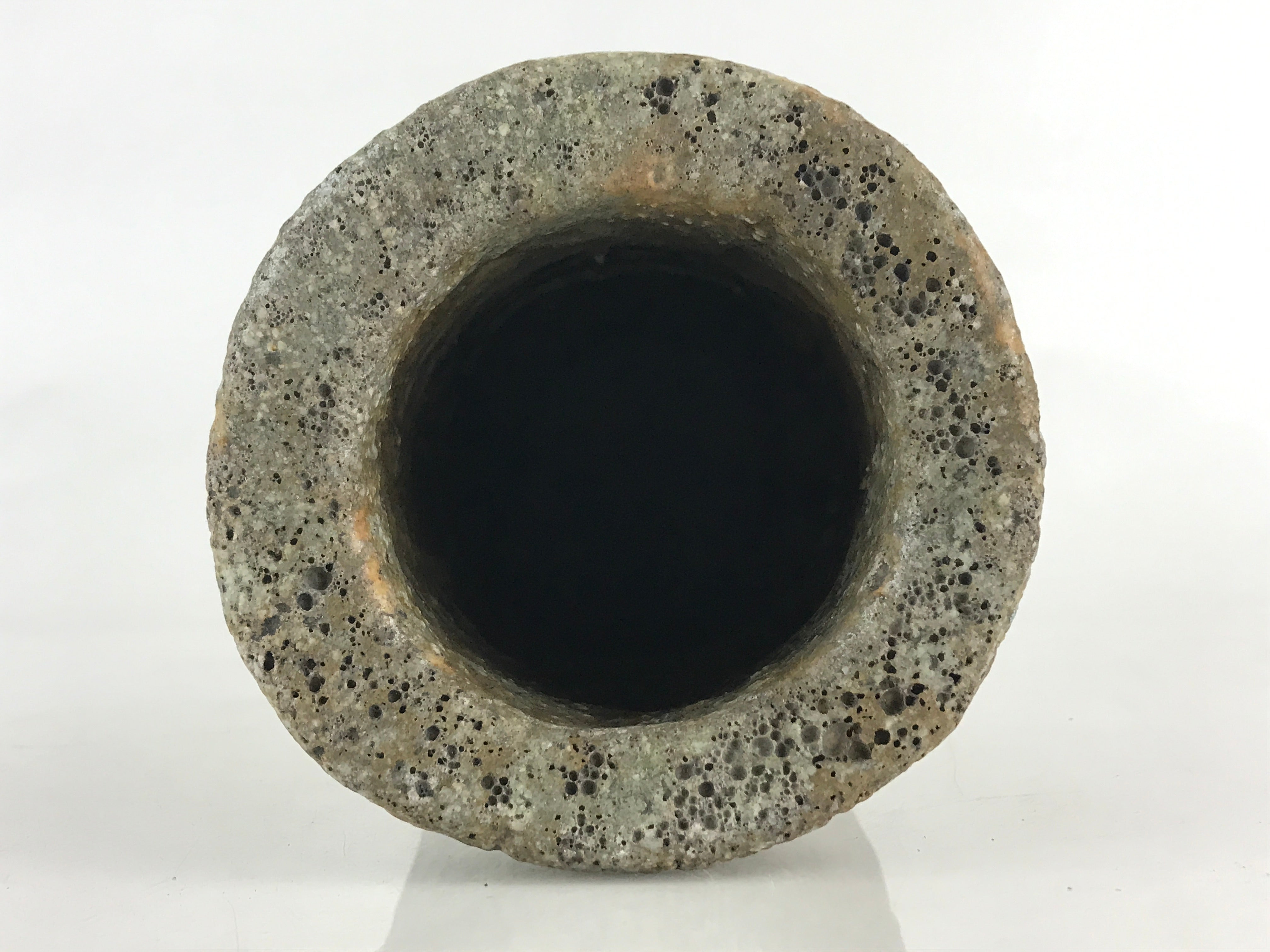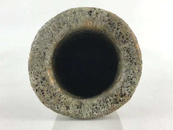 This is a Japanese vintage flower vase, Kabin. It is used for flower arrangements, Ikebana. Ikebana is one of the Japanese art cultures. This vase has a rough surface and a gray glaze.