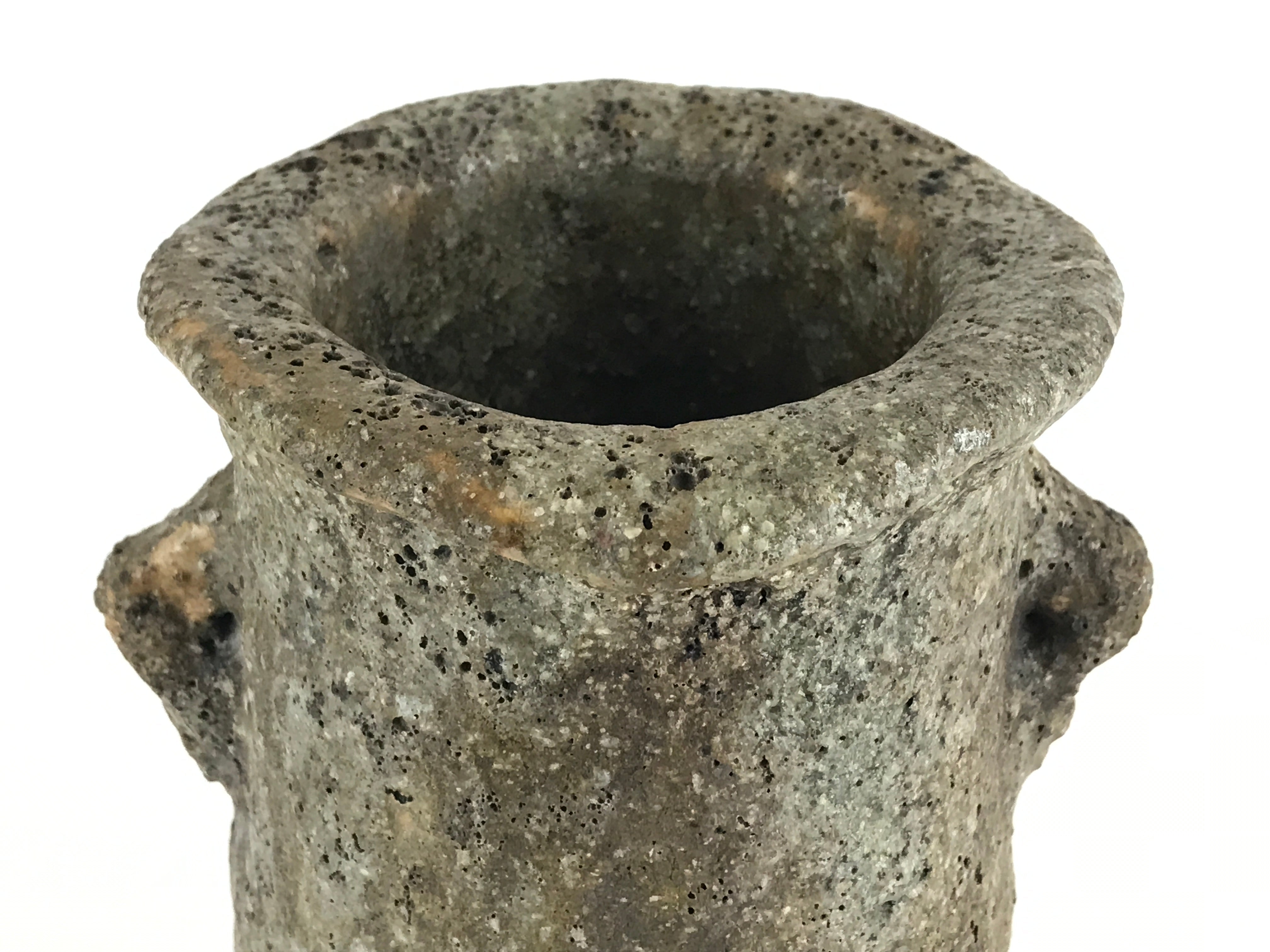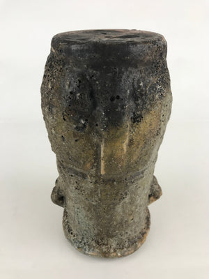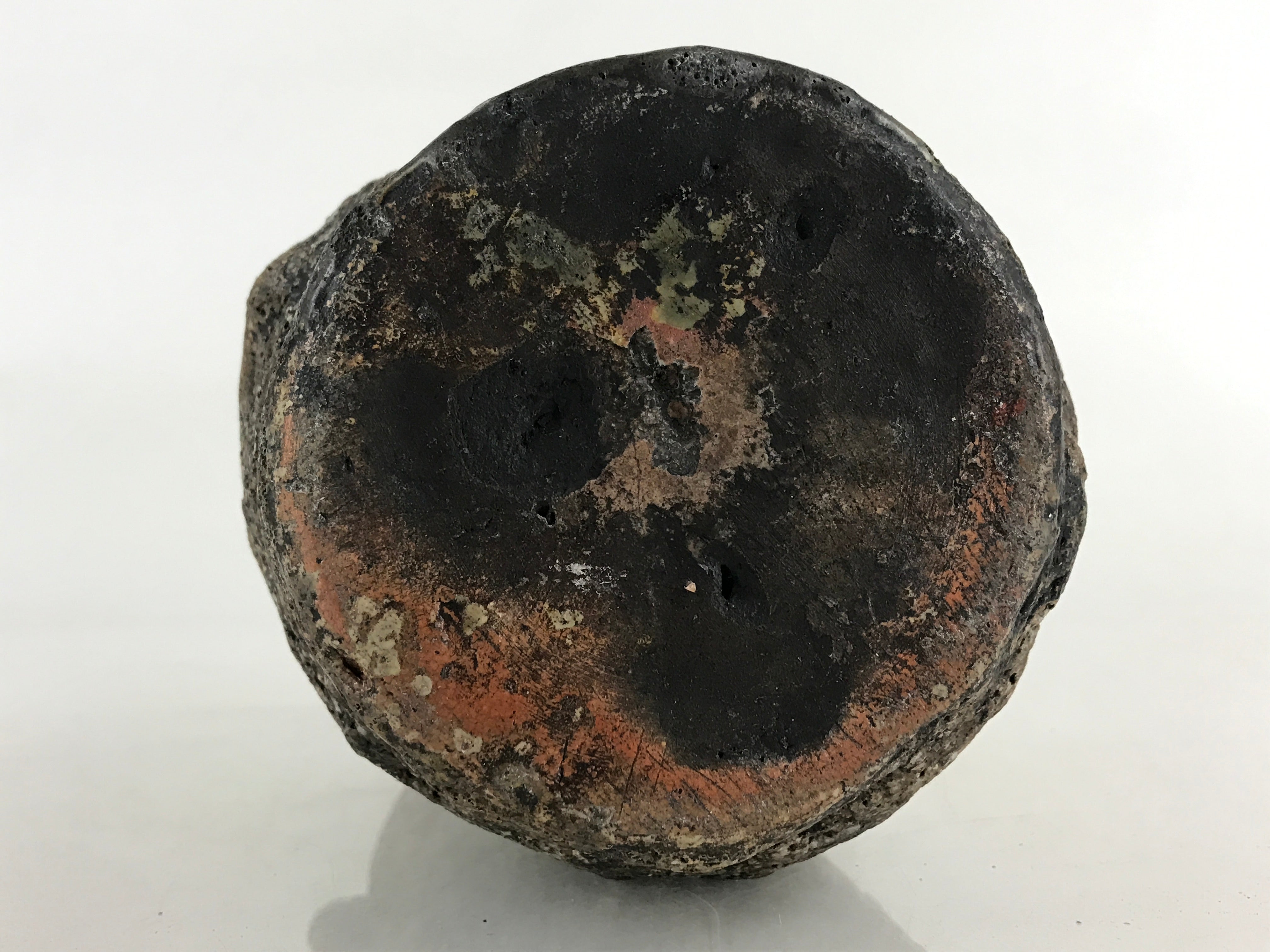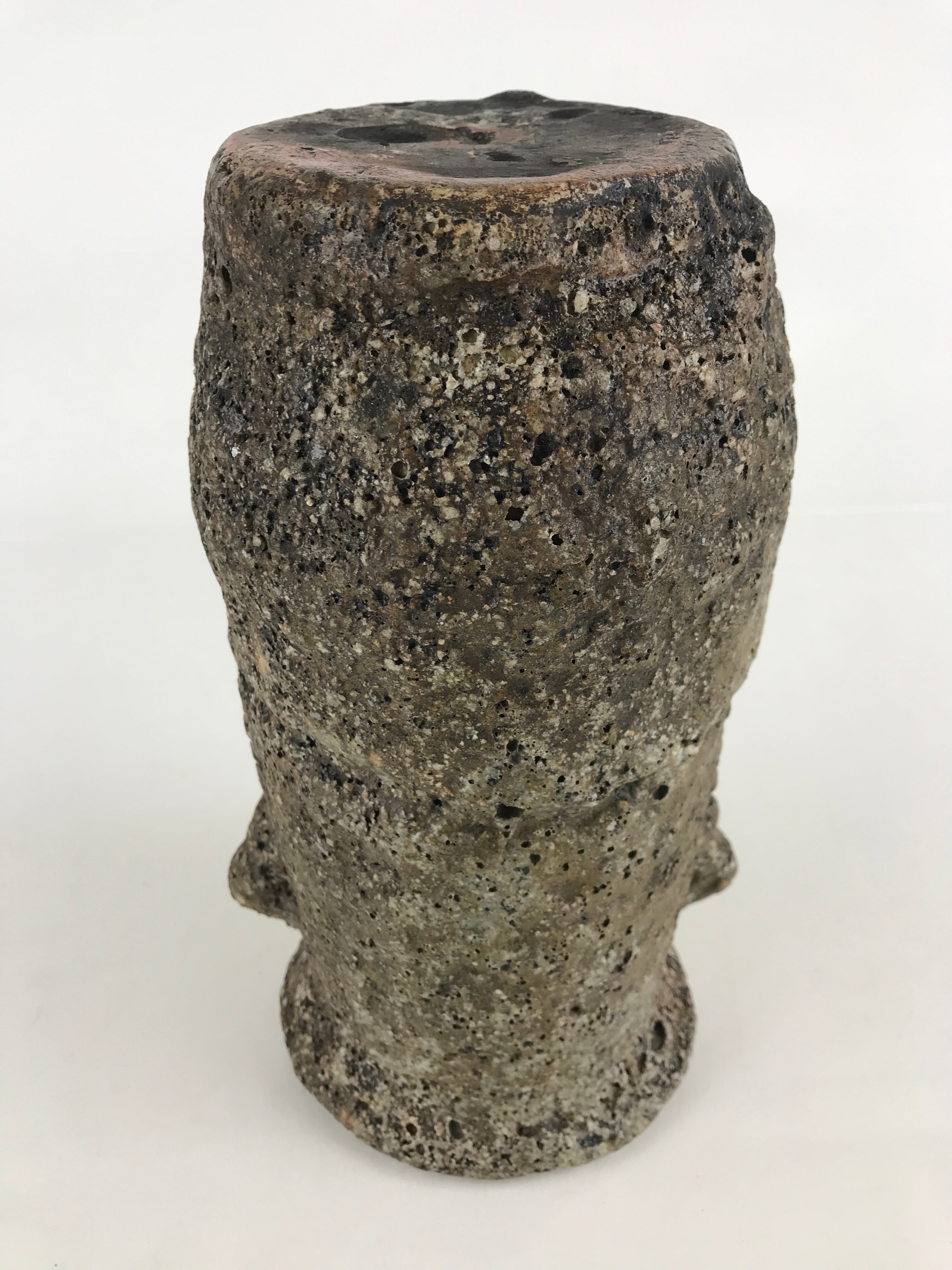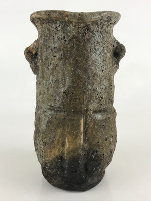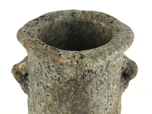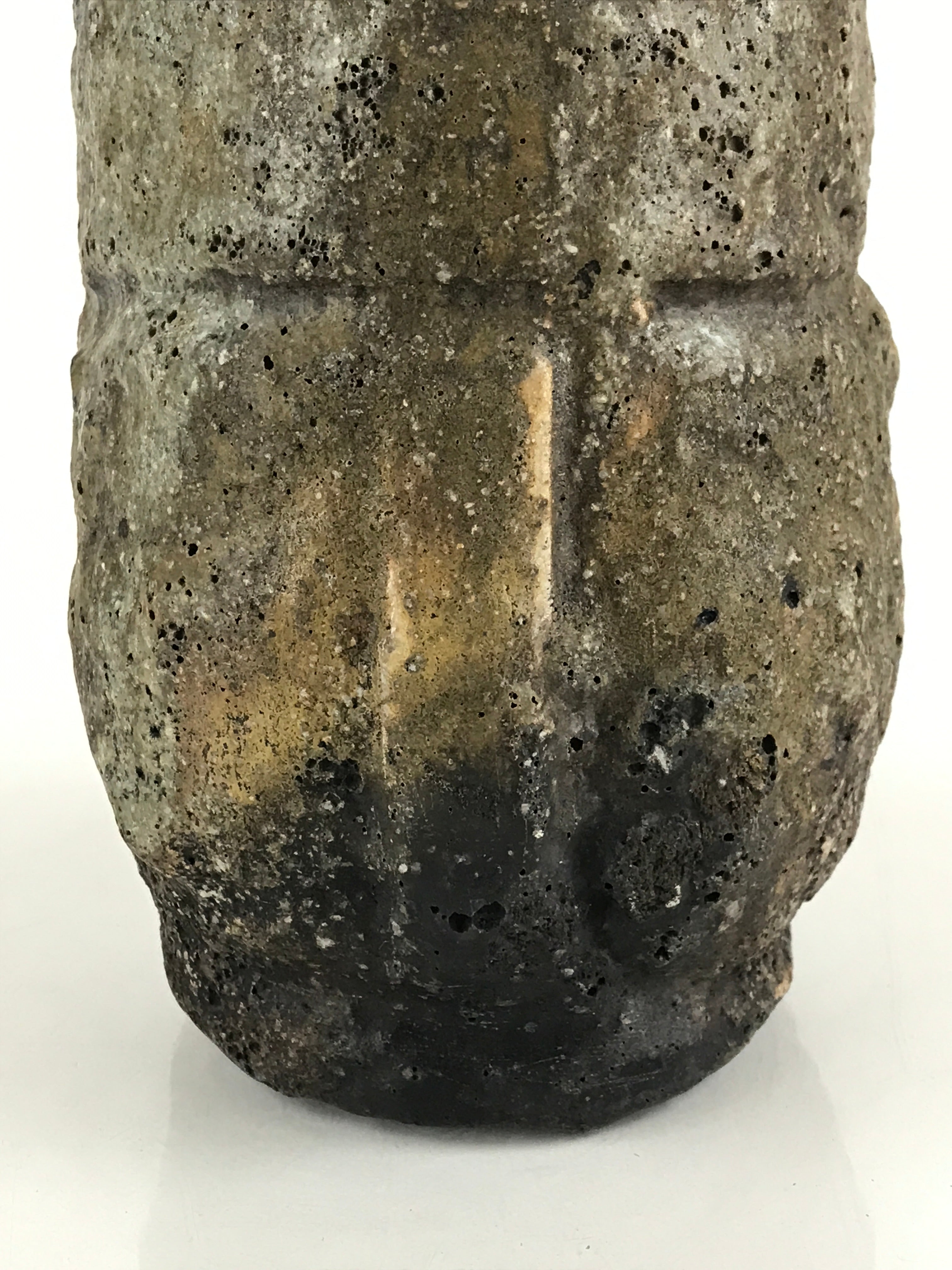 This is a Japanese vintage flower vase, Kabin. It is used for flower arrangements, Ikebana. Ikebana is one of the Japanese art cultures. This vase has a rough surface and a gray glaze.