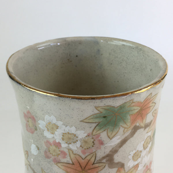 Japanese Ceramic Flower Vase Kabin Vtg Cherry blossoms Pottery Ikebana FK3