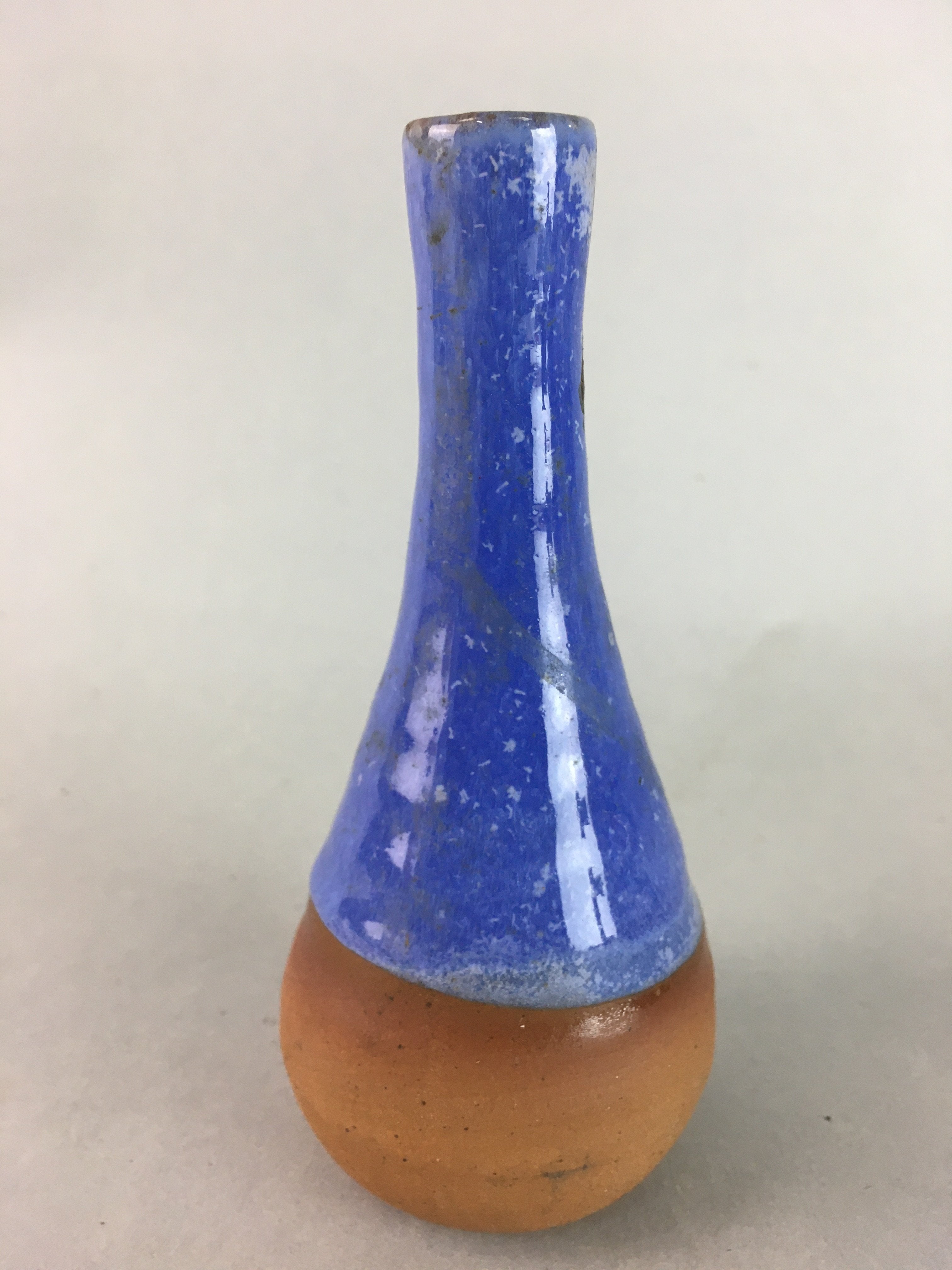 Japanese Ceramic Flower Vase Kabin Vtg Pottery Brown Blue Slim Dent FV855