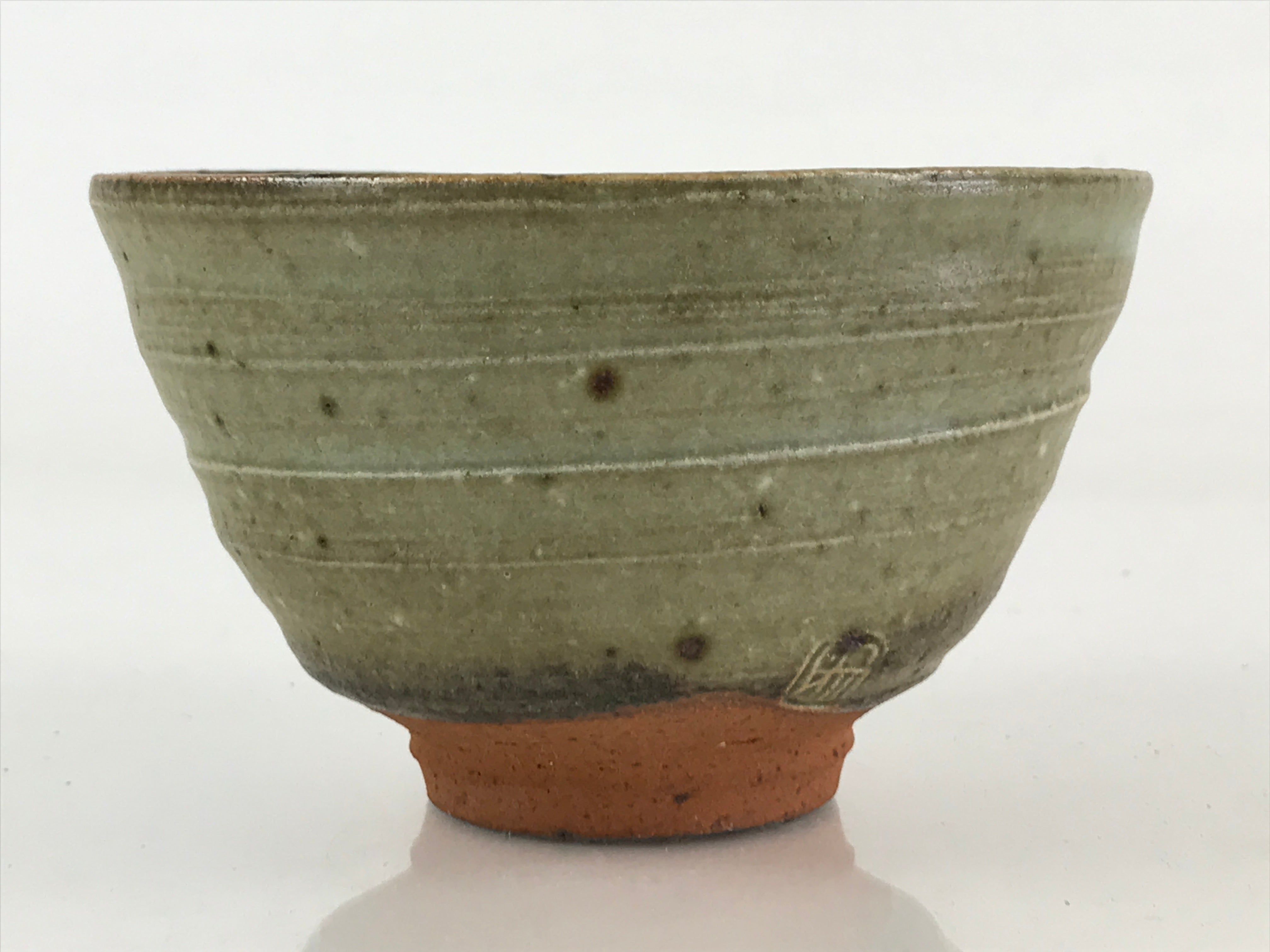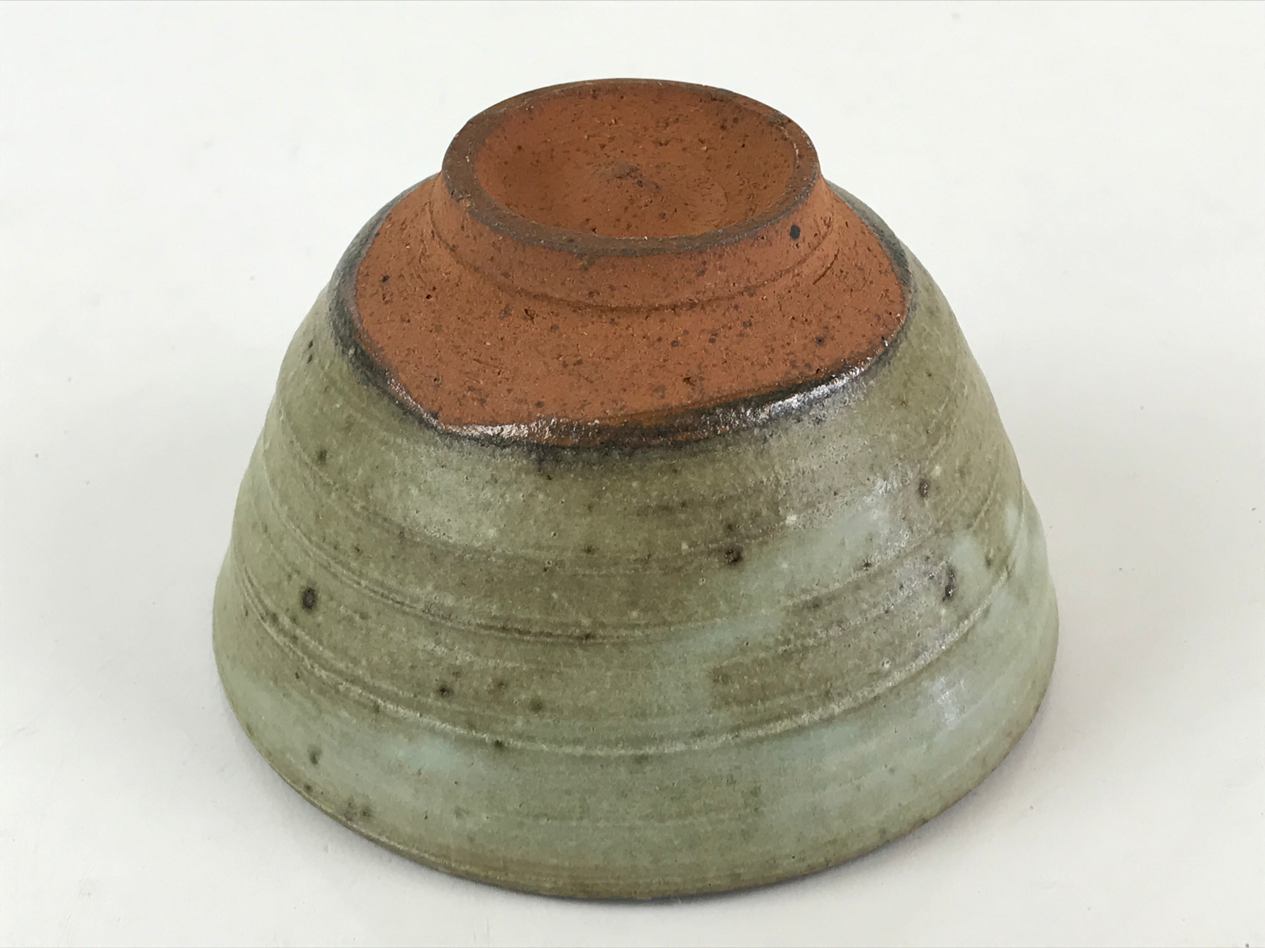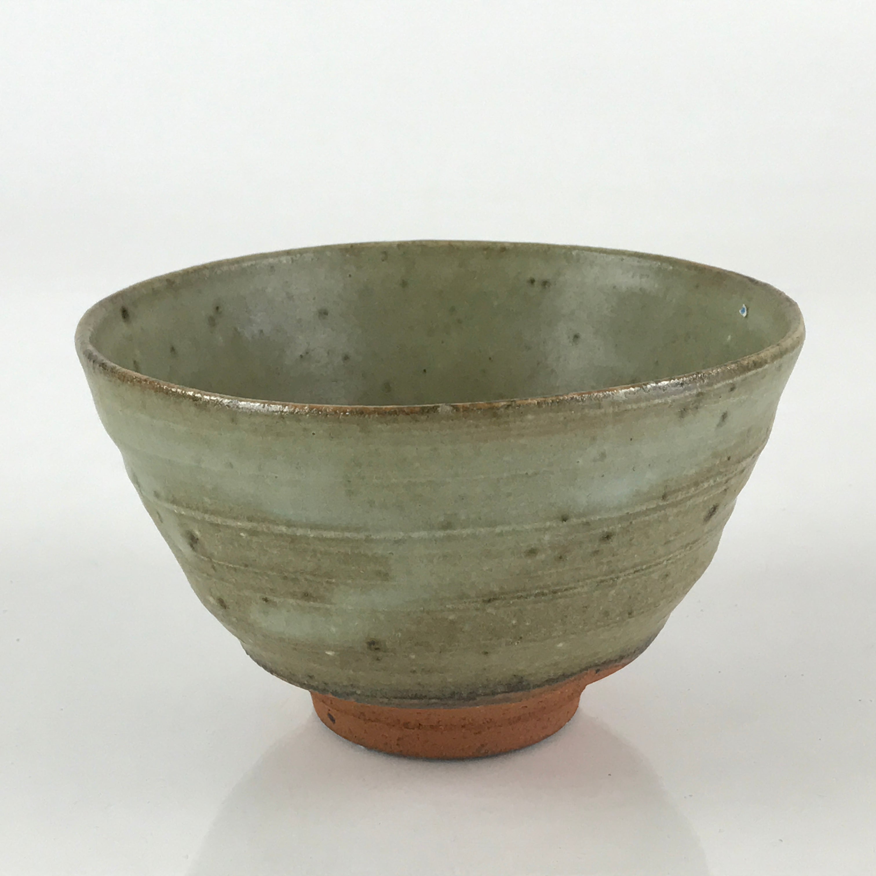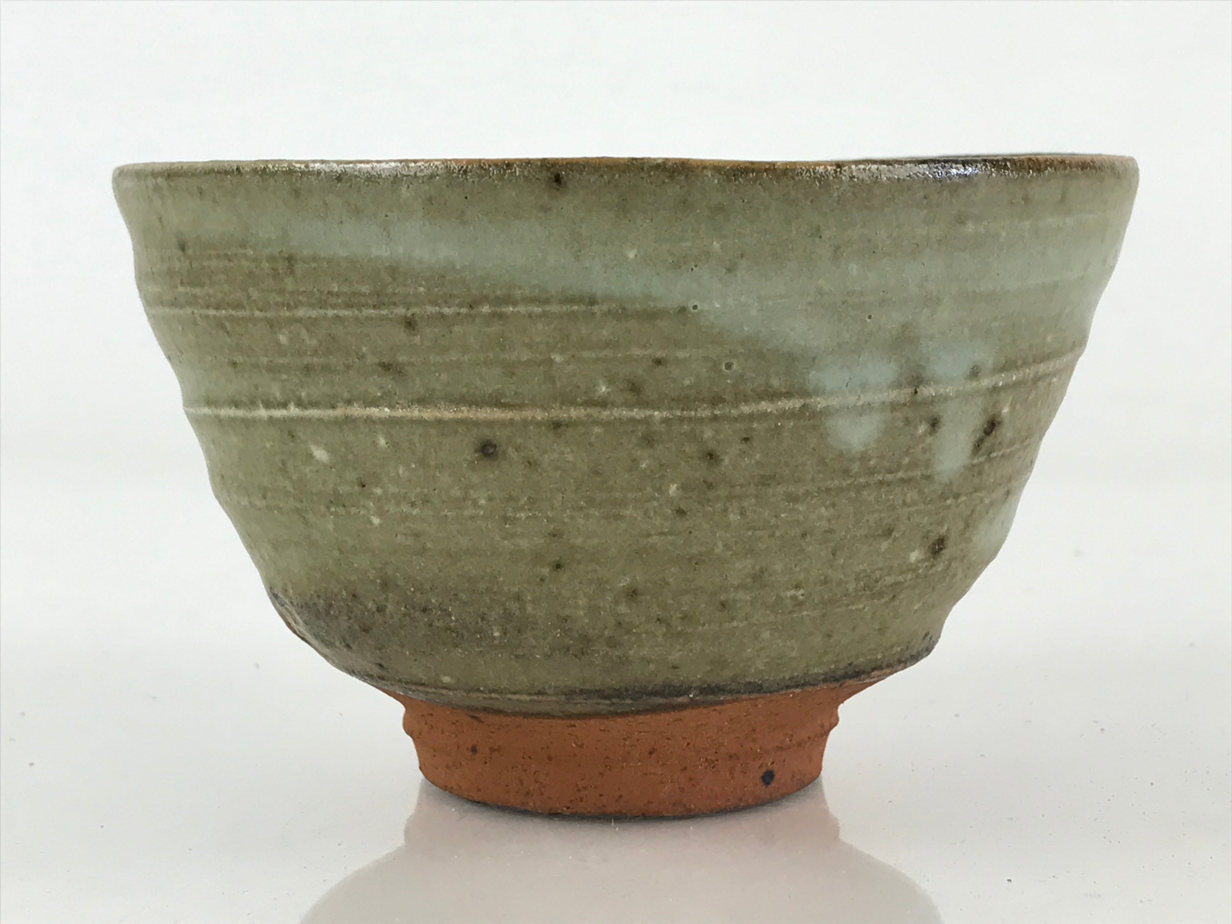 This is a Japanese vintage green tea bowl Matcha Chawan. Green tea bowls are not only for drinking tea but also for appreciating tea bowls as works of art. These are available in a wide range of sizes and styles, and different styles are used for thick and thin tea. Shallow bowls, which allow the tea to cool quickly are used in summer; deep bowls are used in winter to keep the tea hot for a longer time.