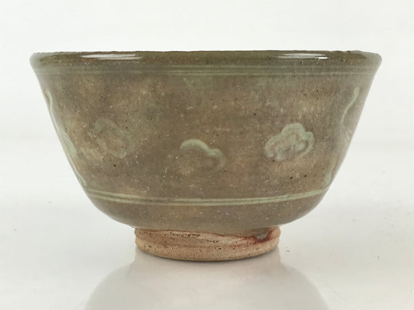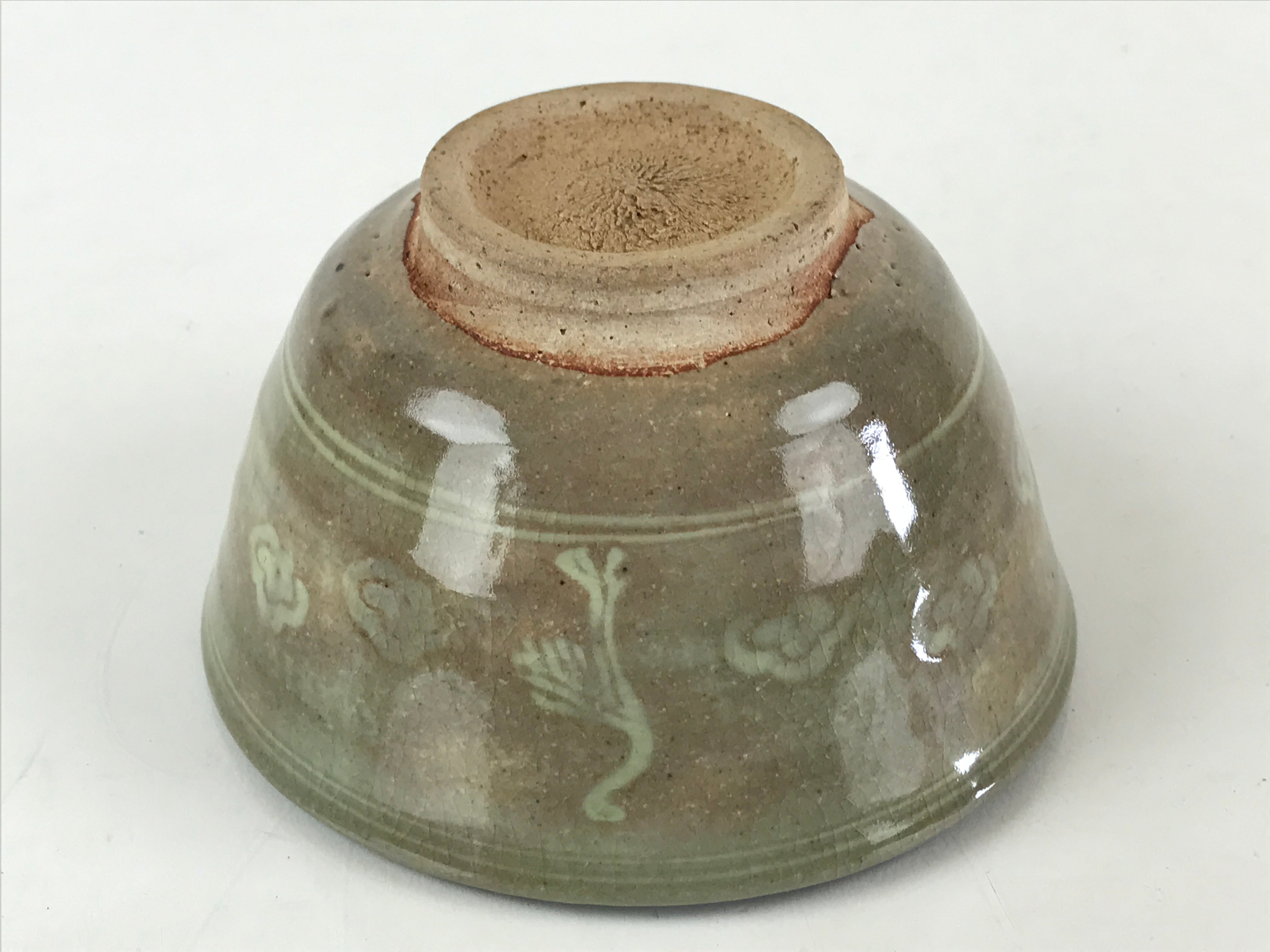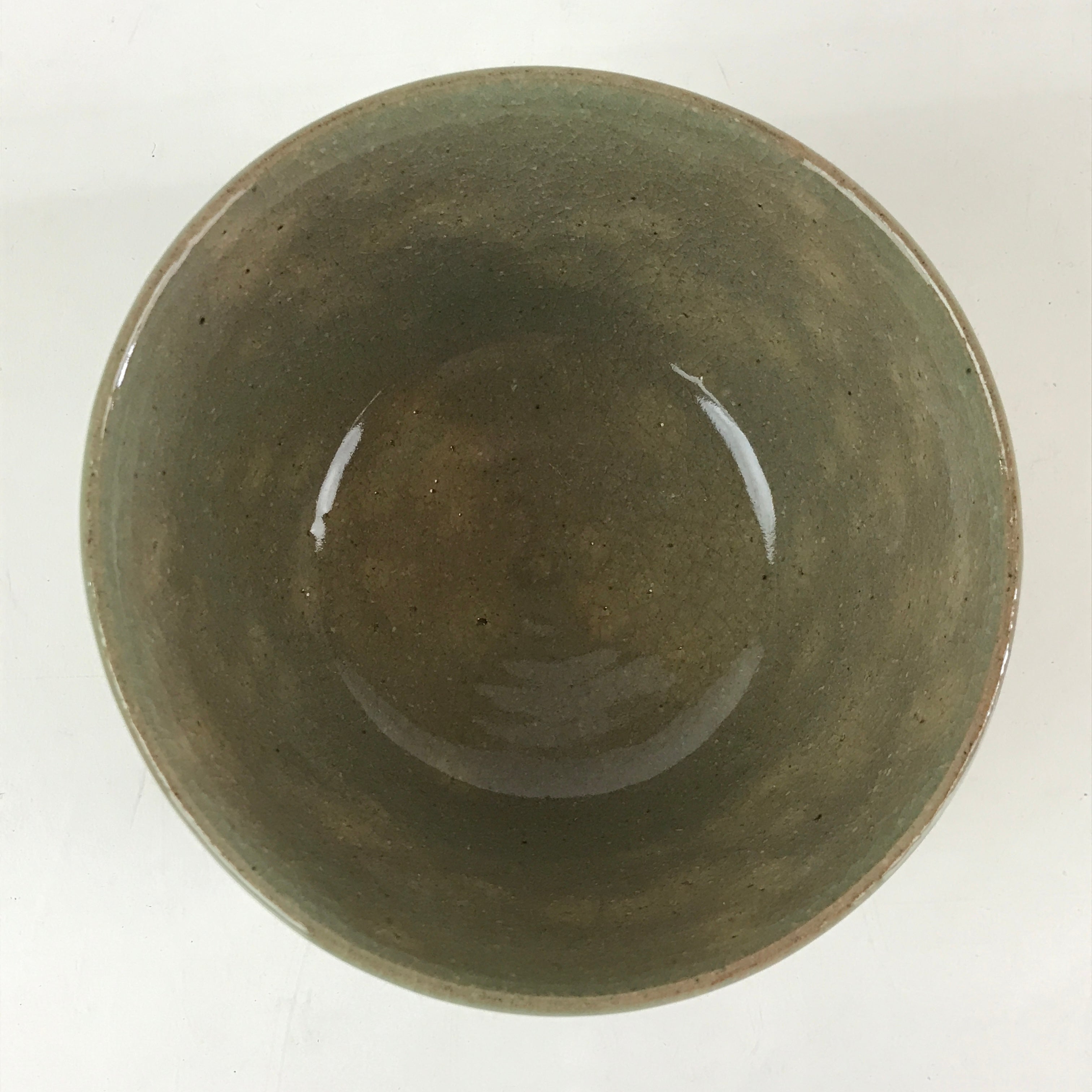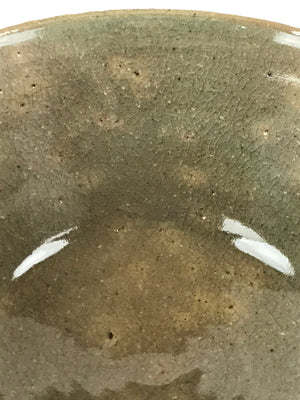 This is a Japanese vintage green tea bowl Matcha Chawan. Green tea bowls are not only for drinking tea but also for appreciating tea bowls as works of art. These are available in a wide range of sizes and styles, and different styles are used for thick and thin tea. Shallow bowls, which allow the tea to cool quickly are used in summer; deep bowls are used in winter to keep the tea hot for a longer time.