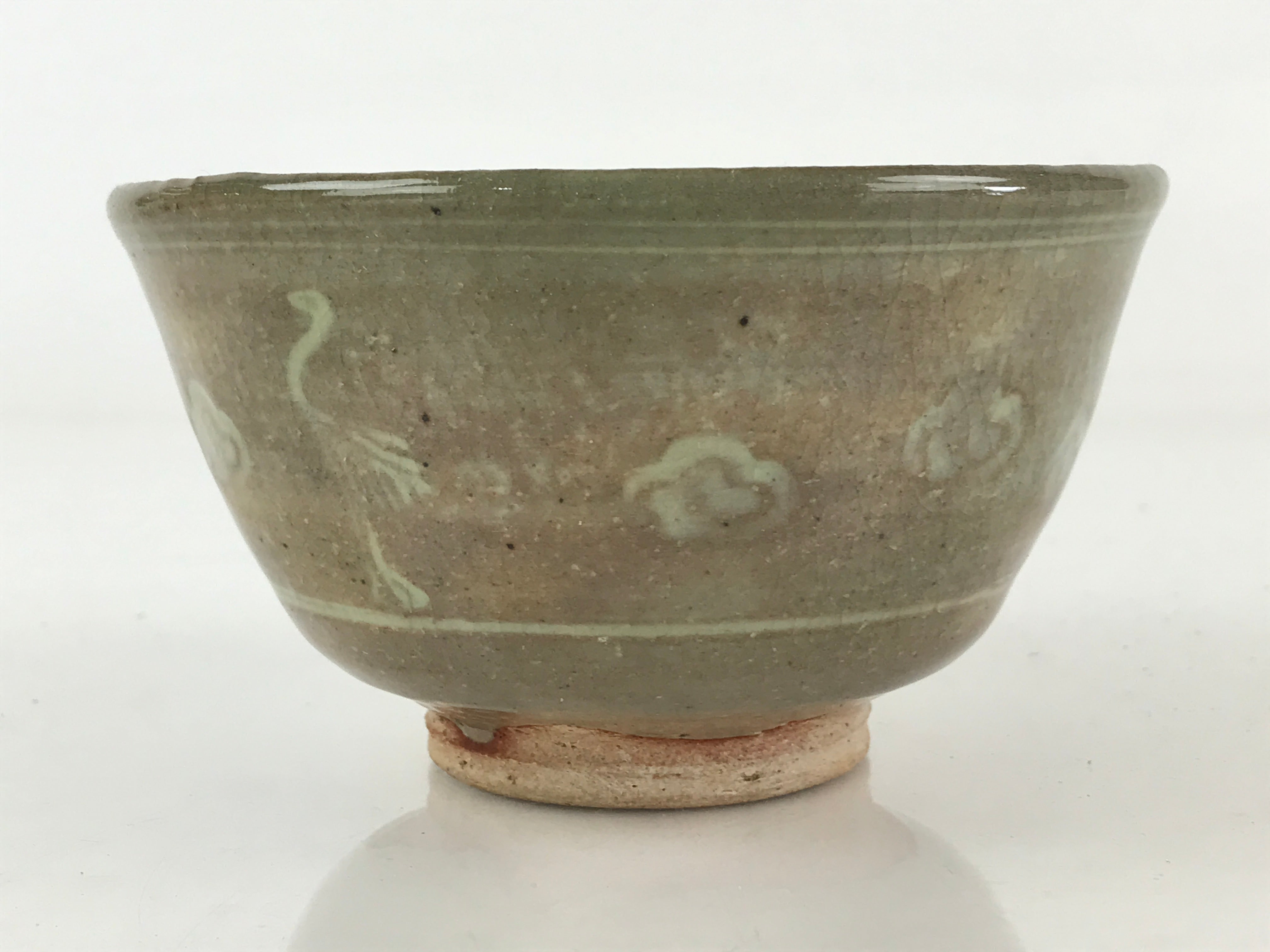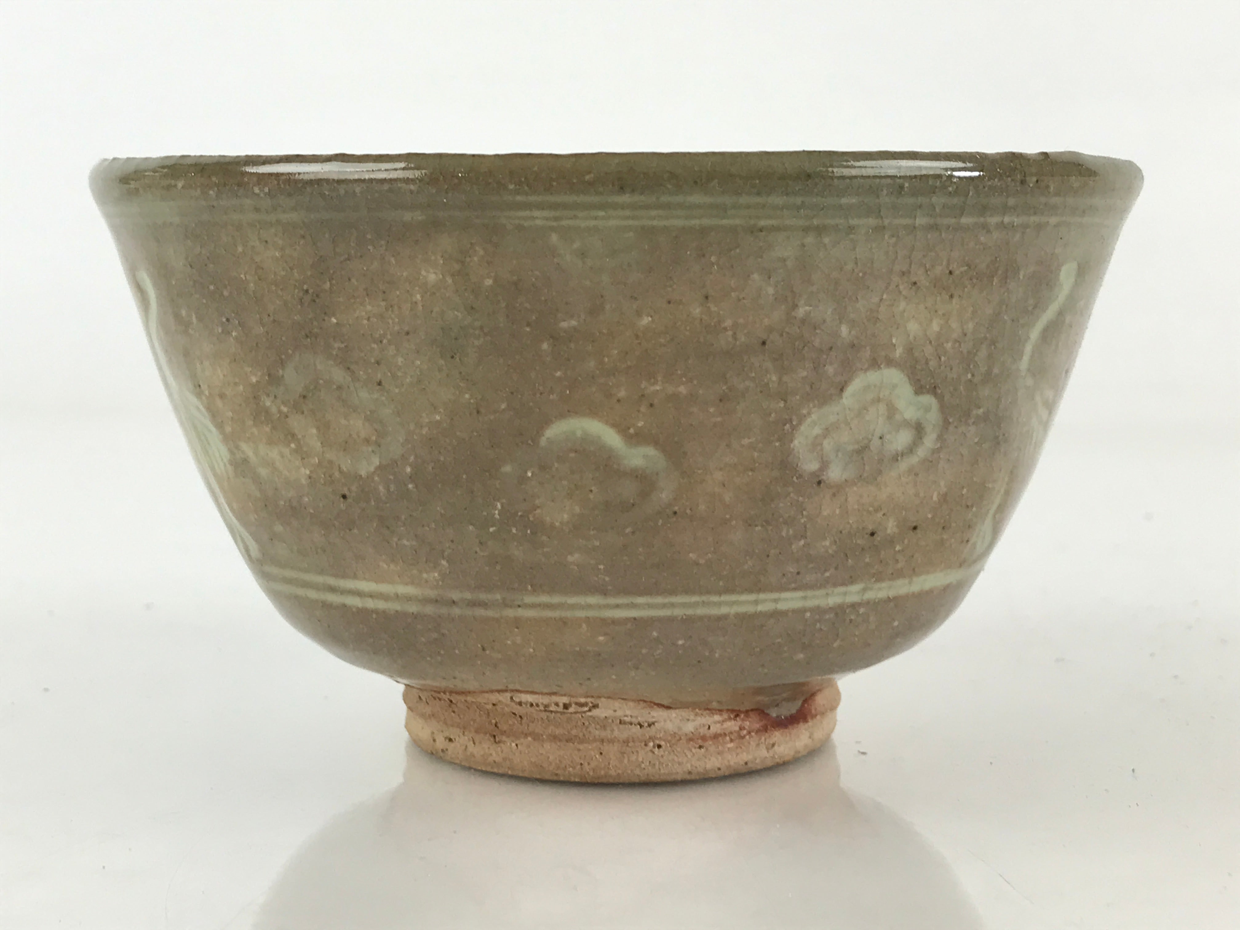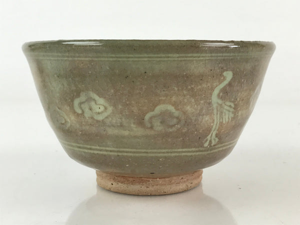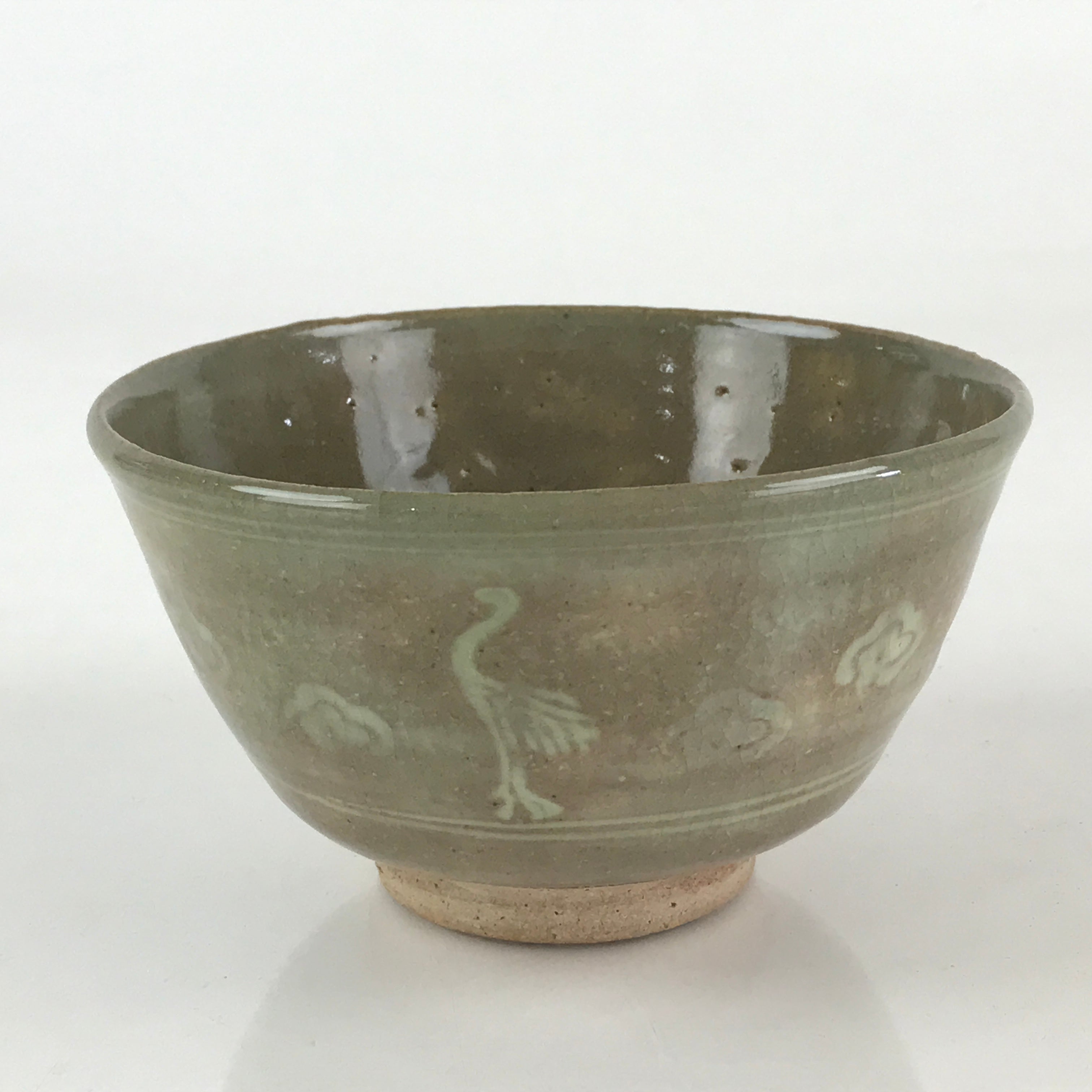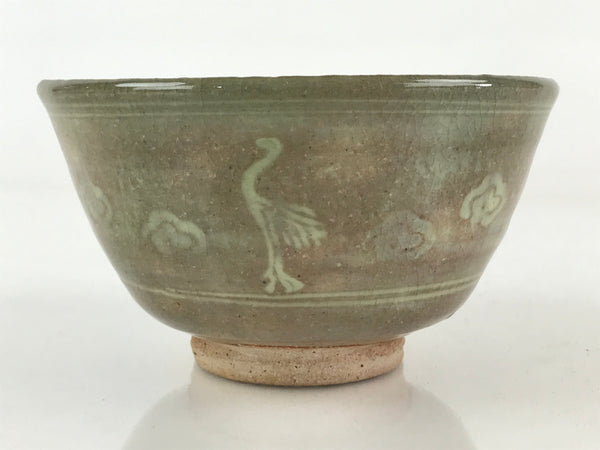 Japanese Ceramic Green Tea Ceremony Bowl Vtg Matcha Chawan Crane Pottery GTB971