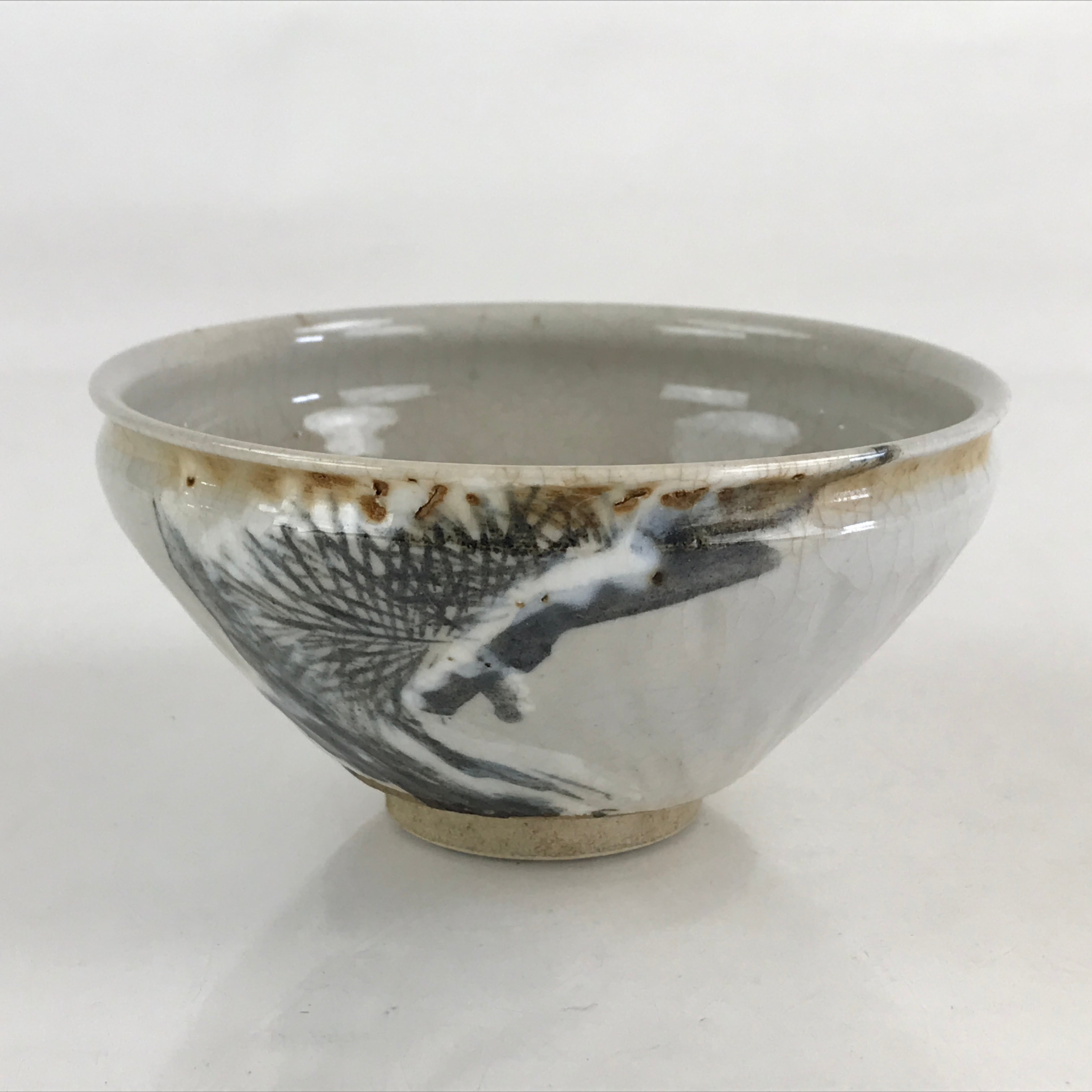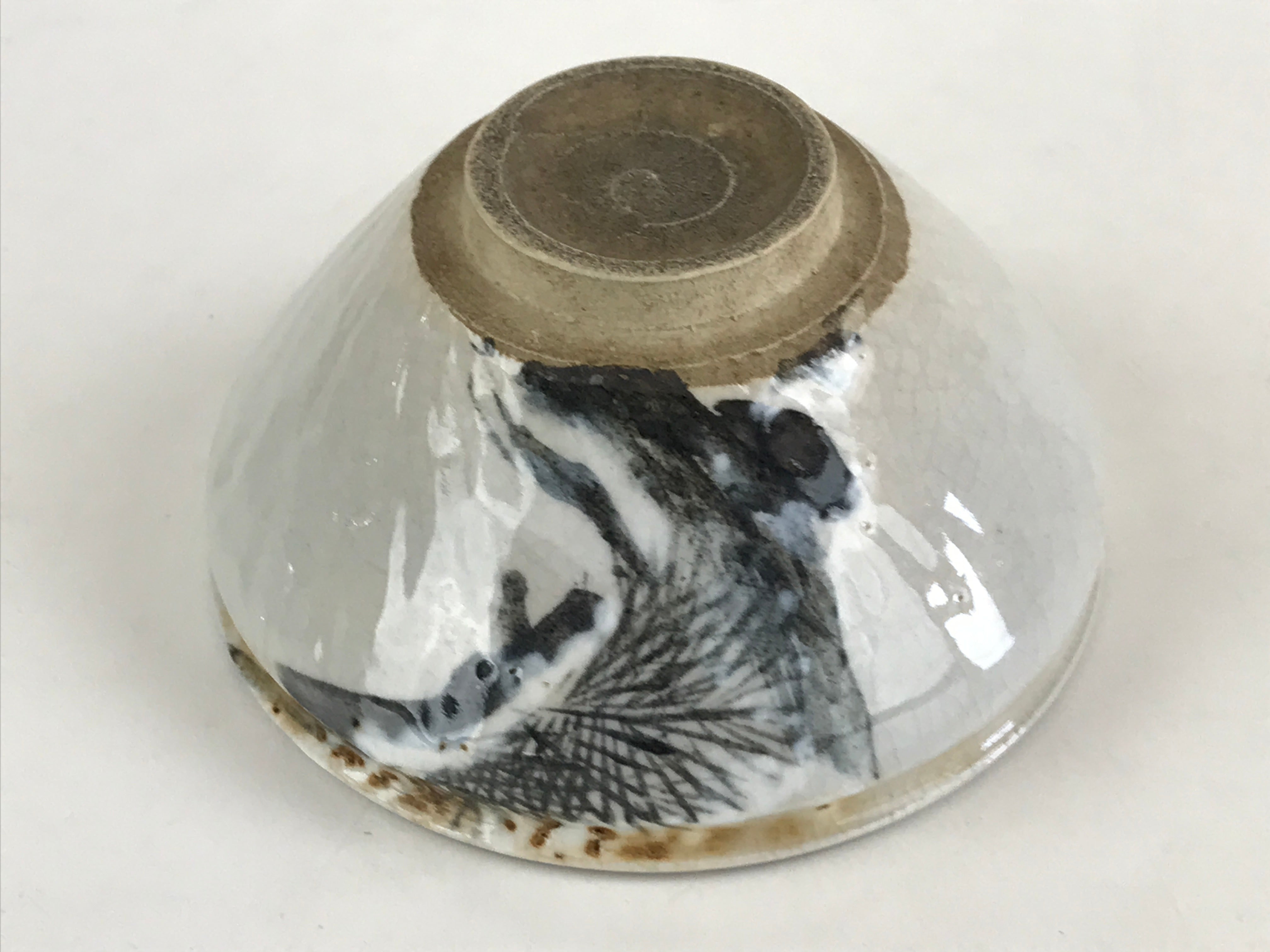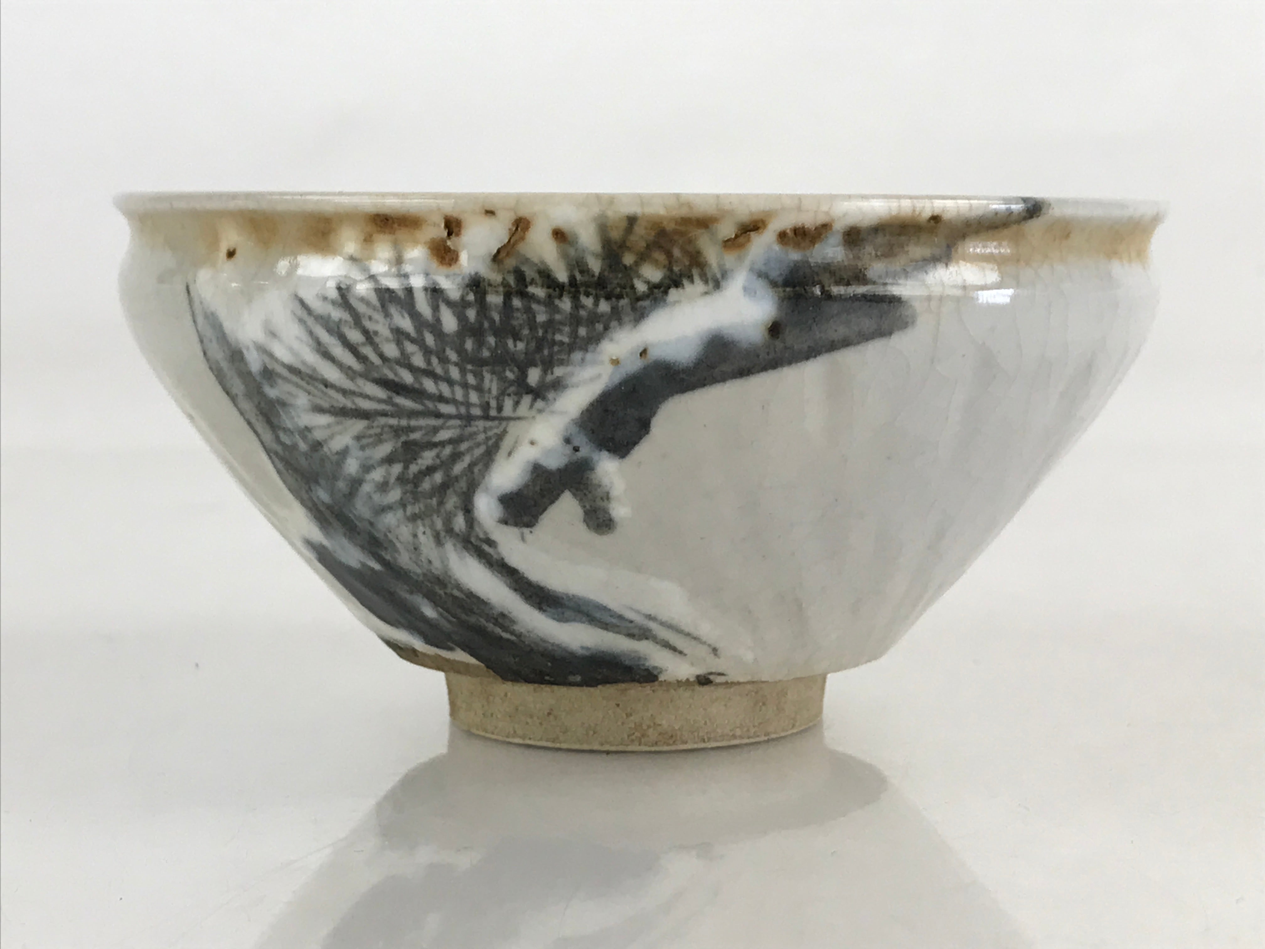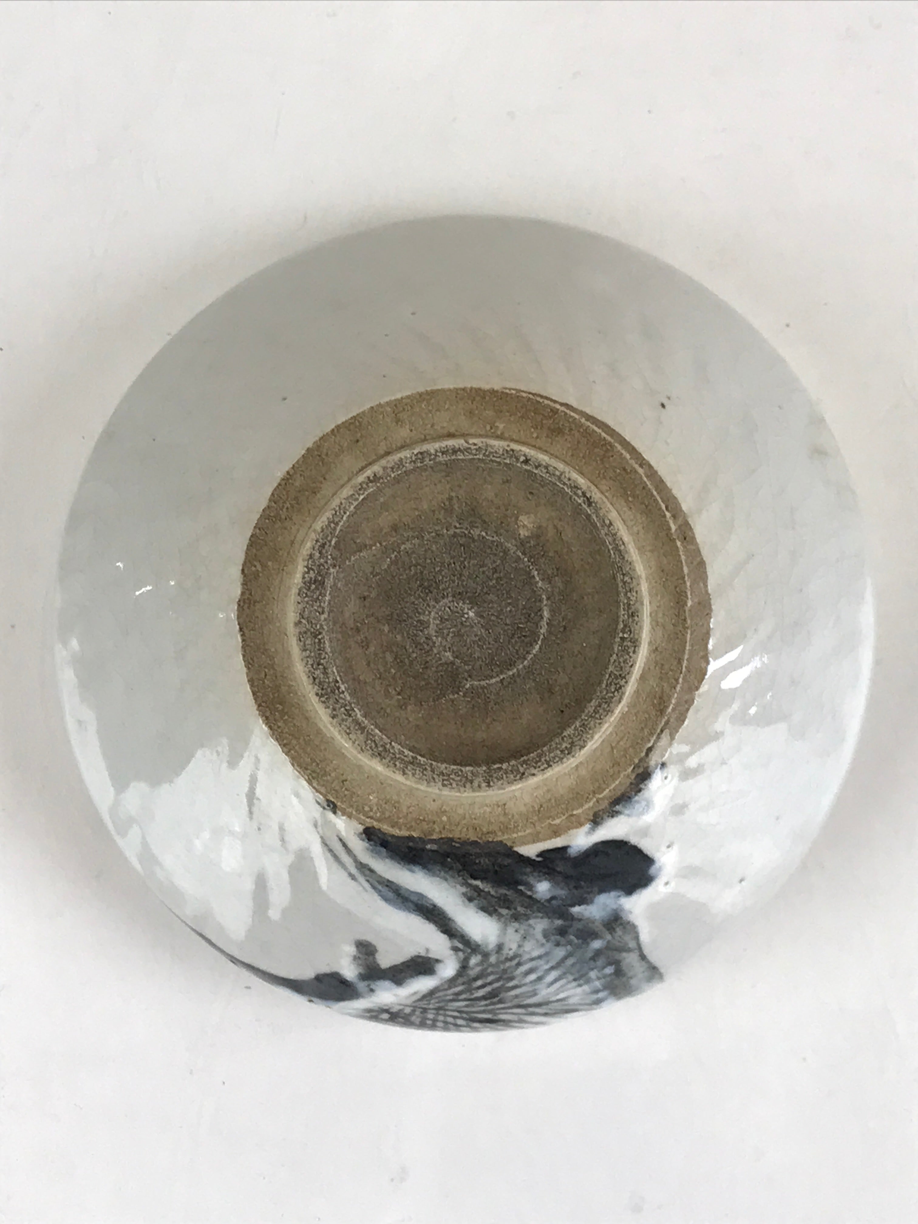 This is a Japanese vintage green tea bowl, Matcha Chawan. This is a white bowl painted a pine tree and the rim is curved. Green tea bowls are not only for drinking tea these are also for appreciating tea bowls as works of art. These have various sizes and styles. Shallow bowls are used in summer which is for the tea to cool quickly, and deep bowls are used in winter to keep the tea hot for a longer time.