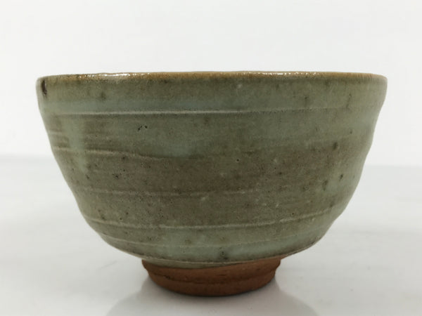 Japanese Ceramic Green Tea Bowl Matcha Chawan Vtg Pottery Gray Green CHB144