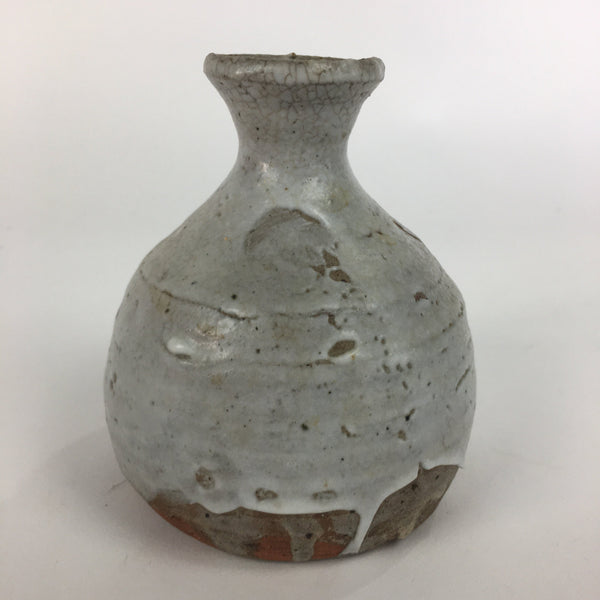 Japanese Ceramic Hagi Were Sake Bottle Vtg Pottery White Glaze Red Clay Tokkuri