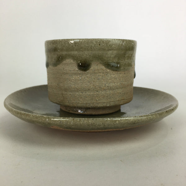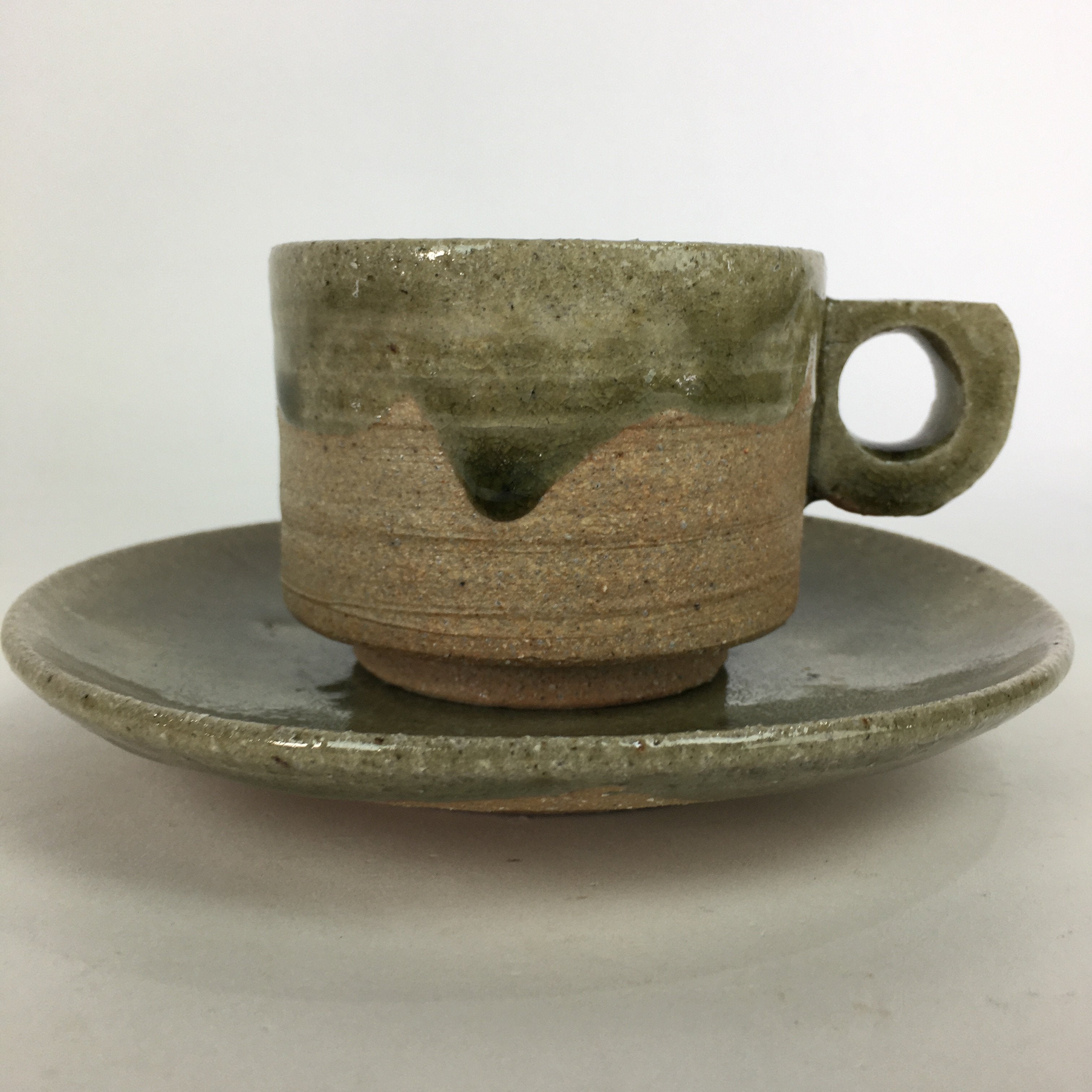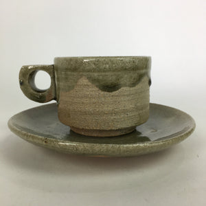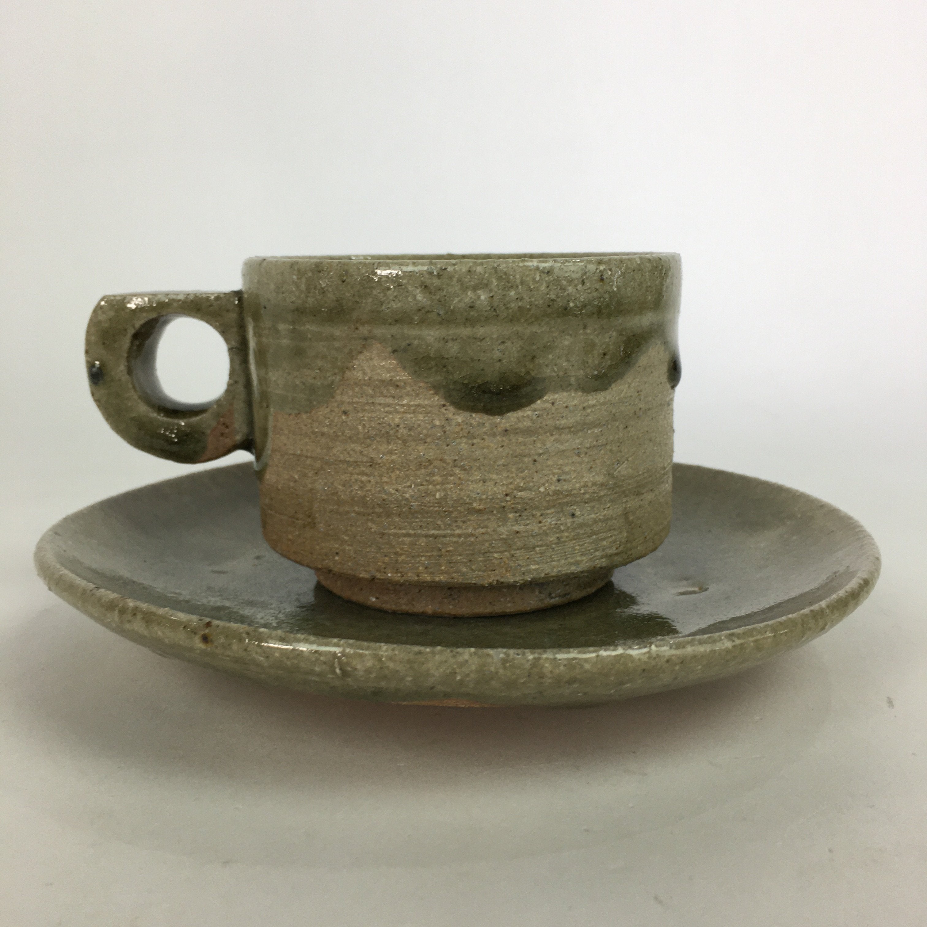 Japanese Ceramic Igayaki Teacup Mug Saucer Vtg Cup Plate Set Green Glaze PP572