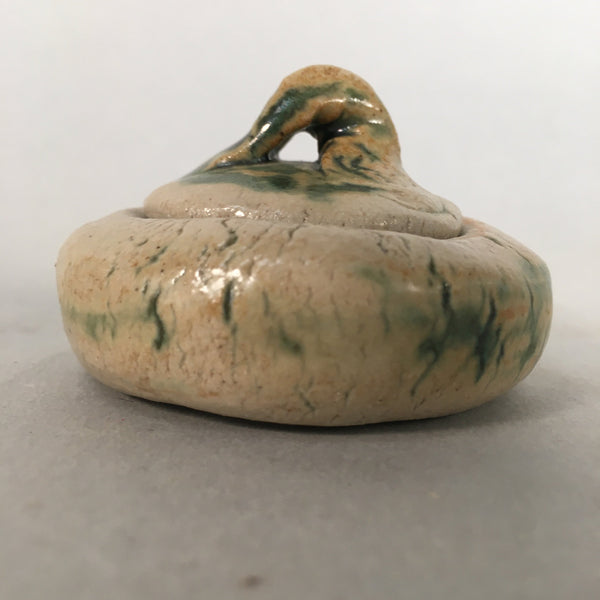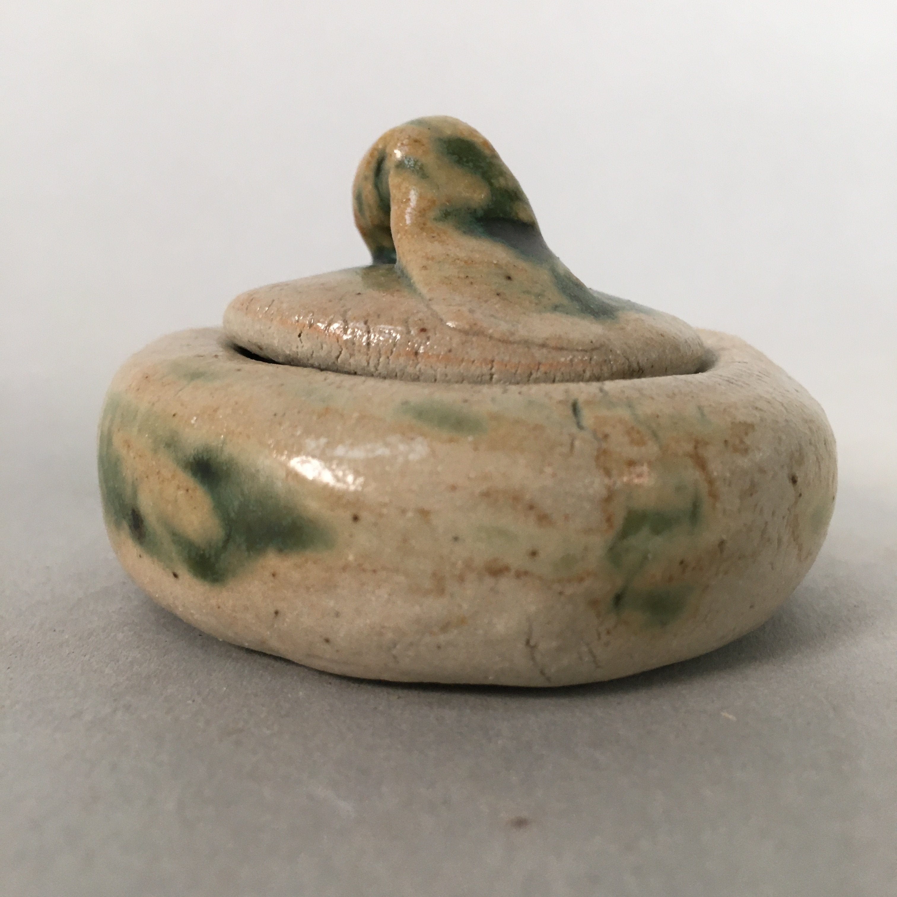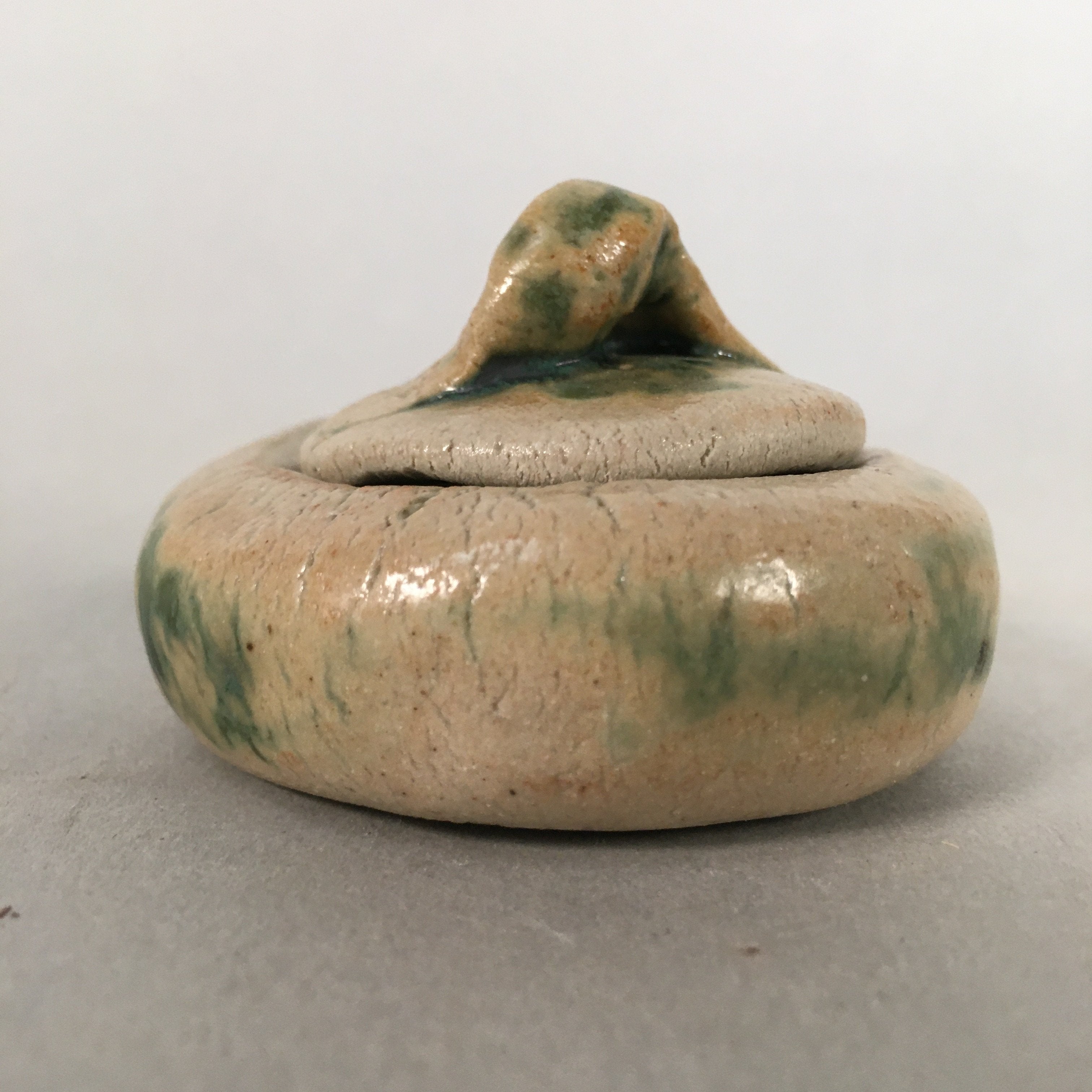 Japanese Ceramic Incense Container Vtg Pottery Kogo Round Oribe PP399