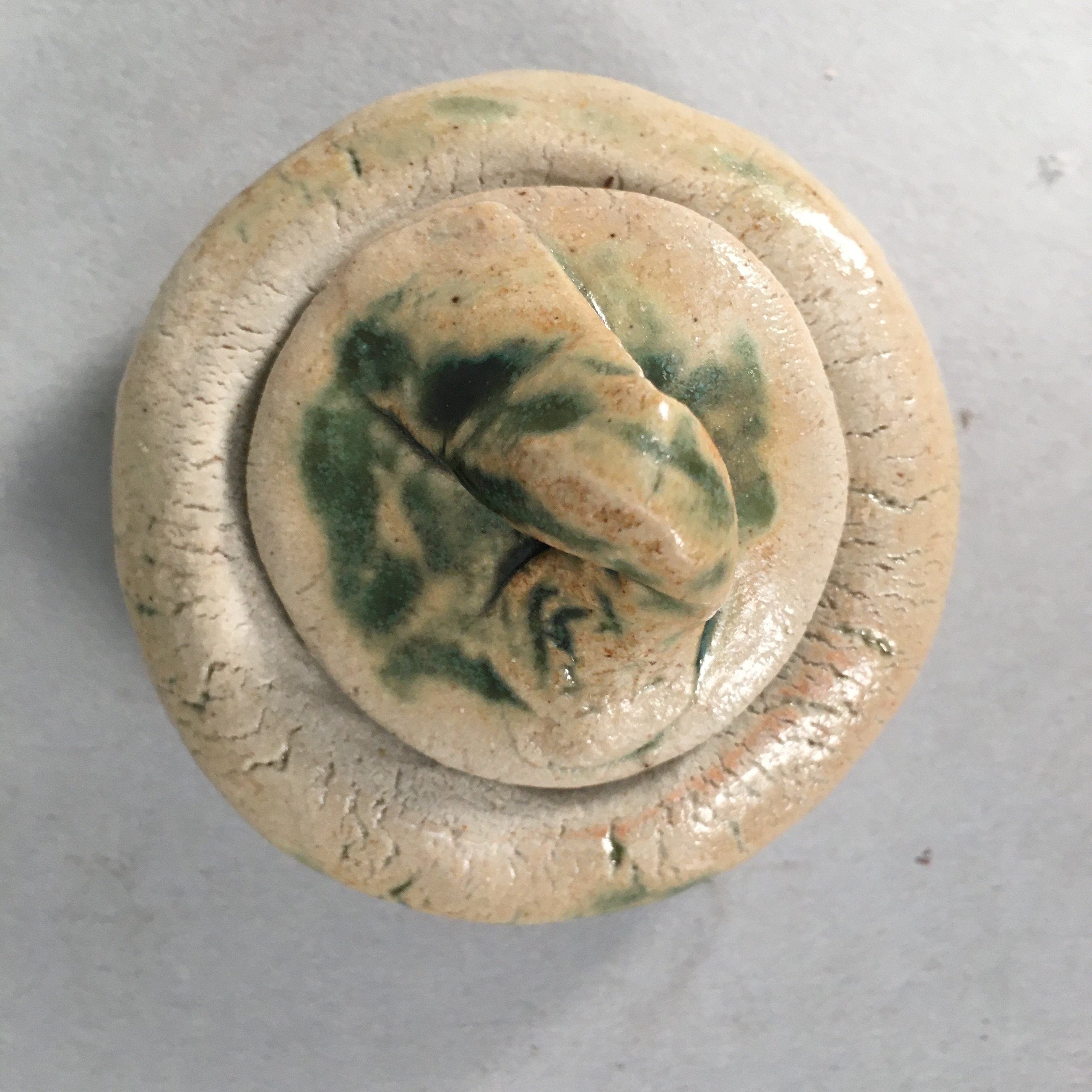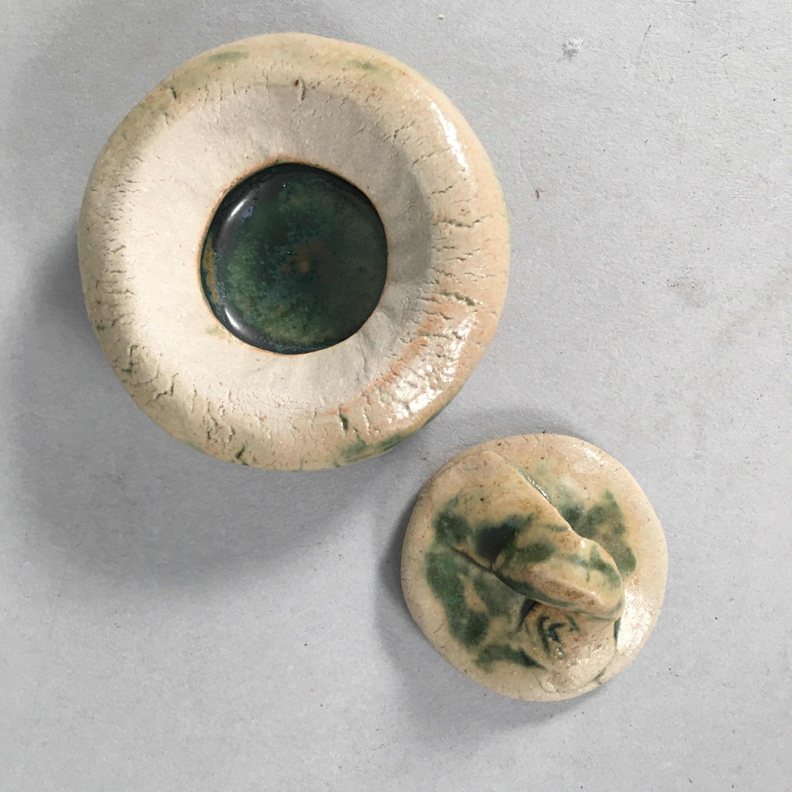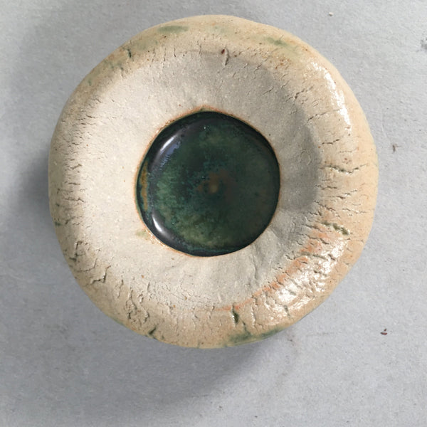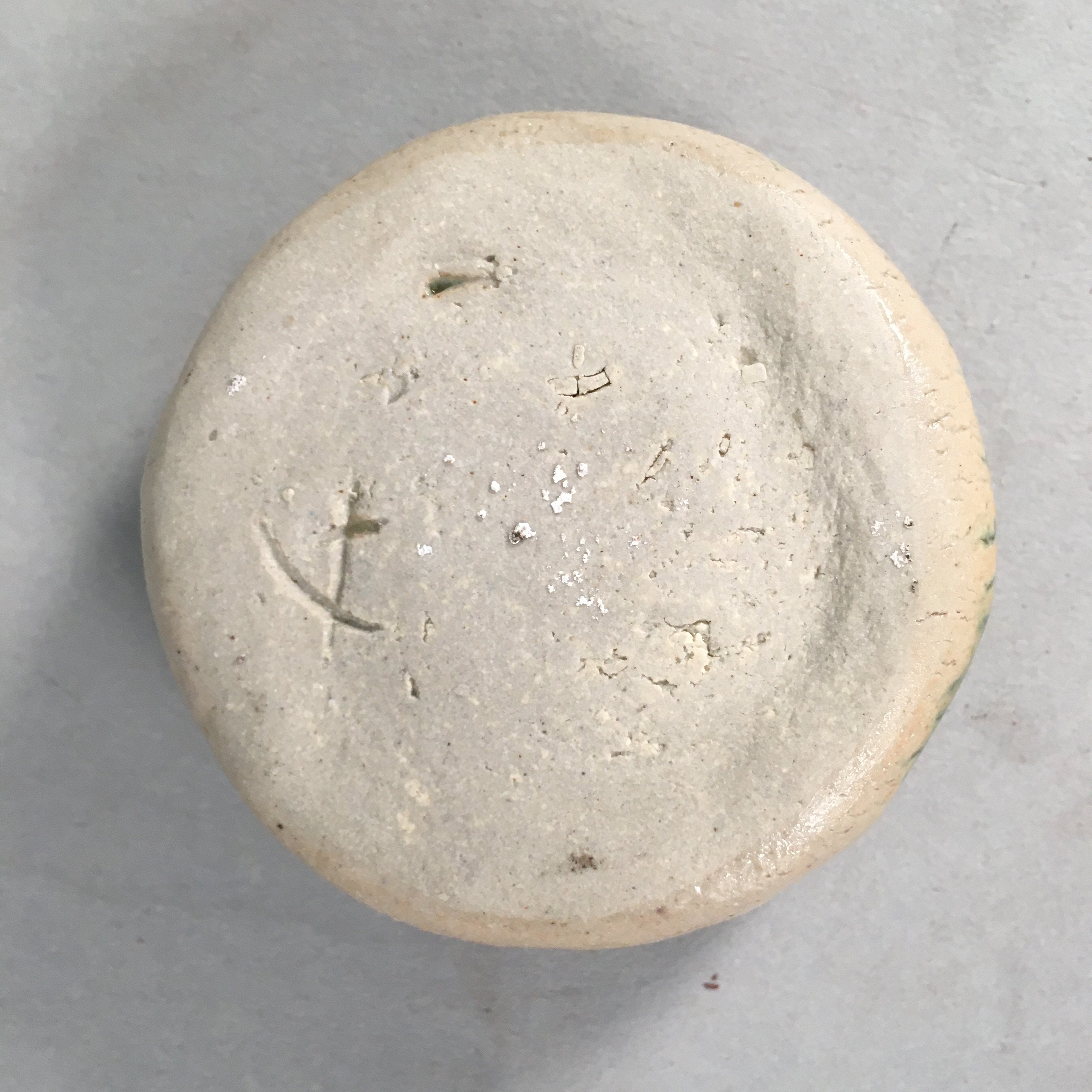 Japanese Ceramic Incense Container Vtg Pottery Kogo Round Oribe PP399