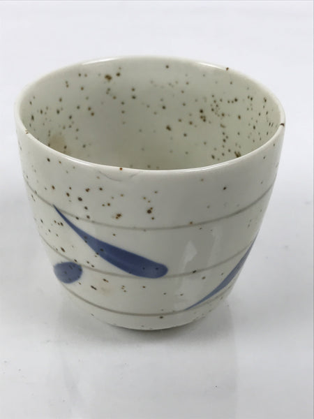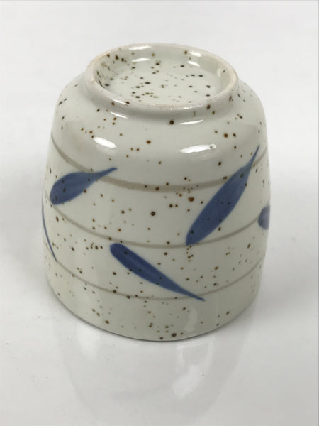 This piece is white with brown specks and features blue bamboo leaves and a gray round band lines throughout.