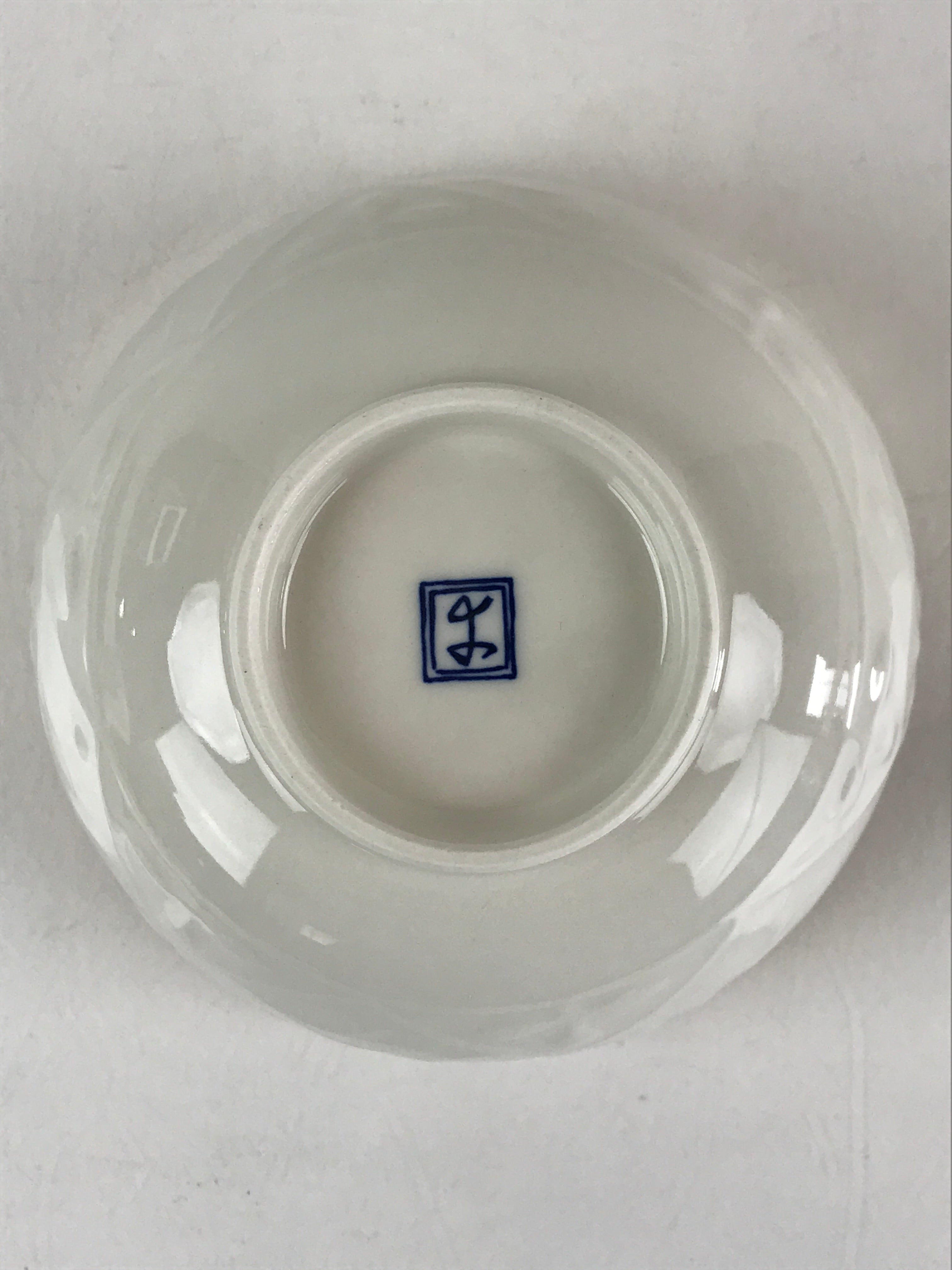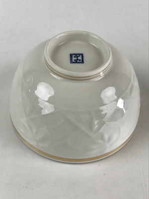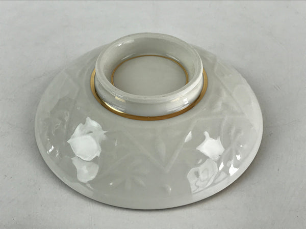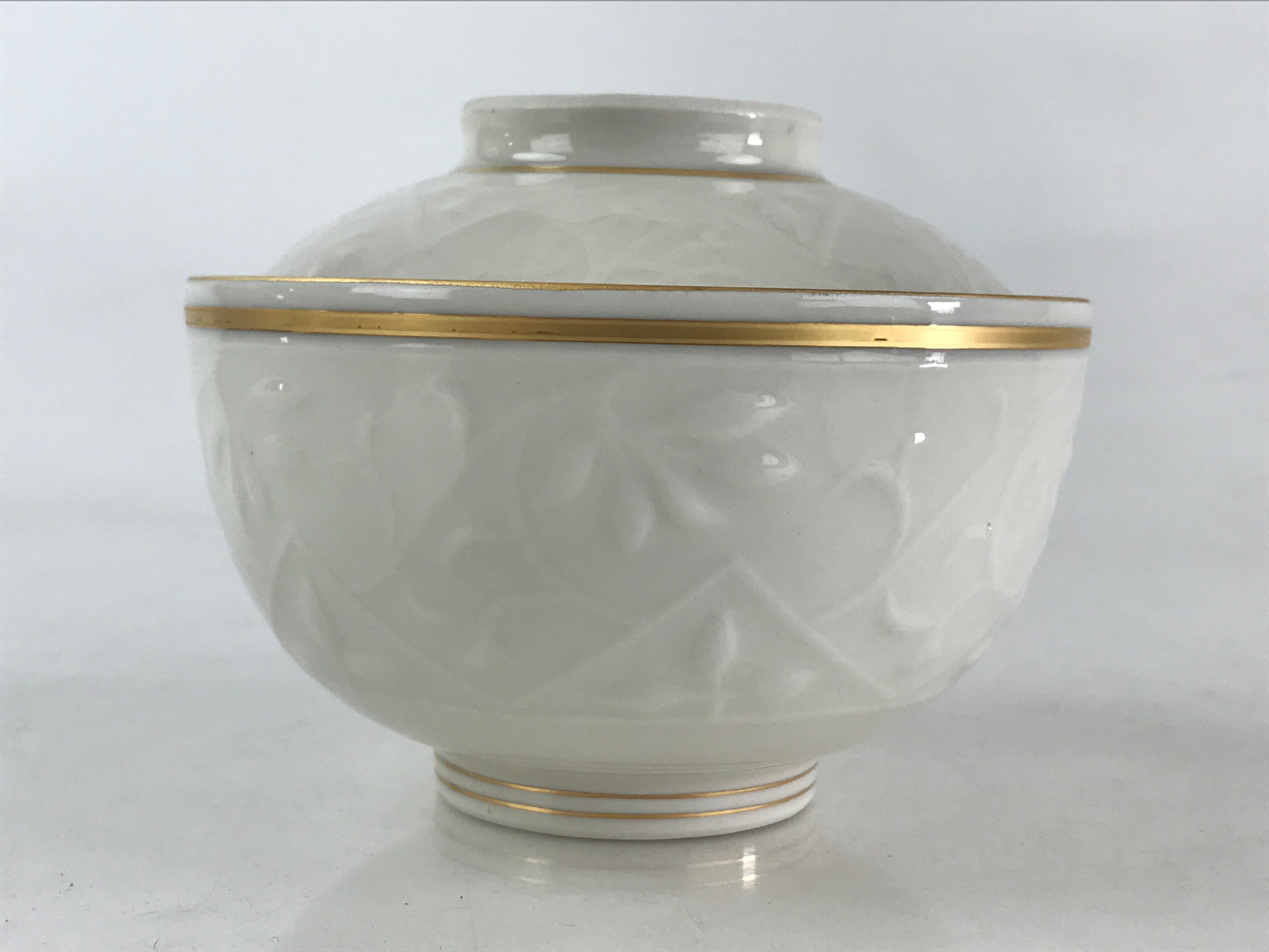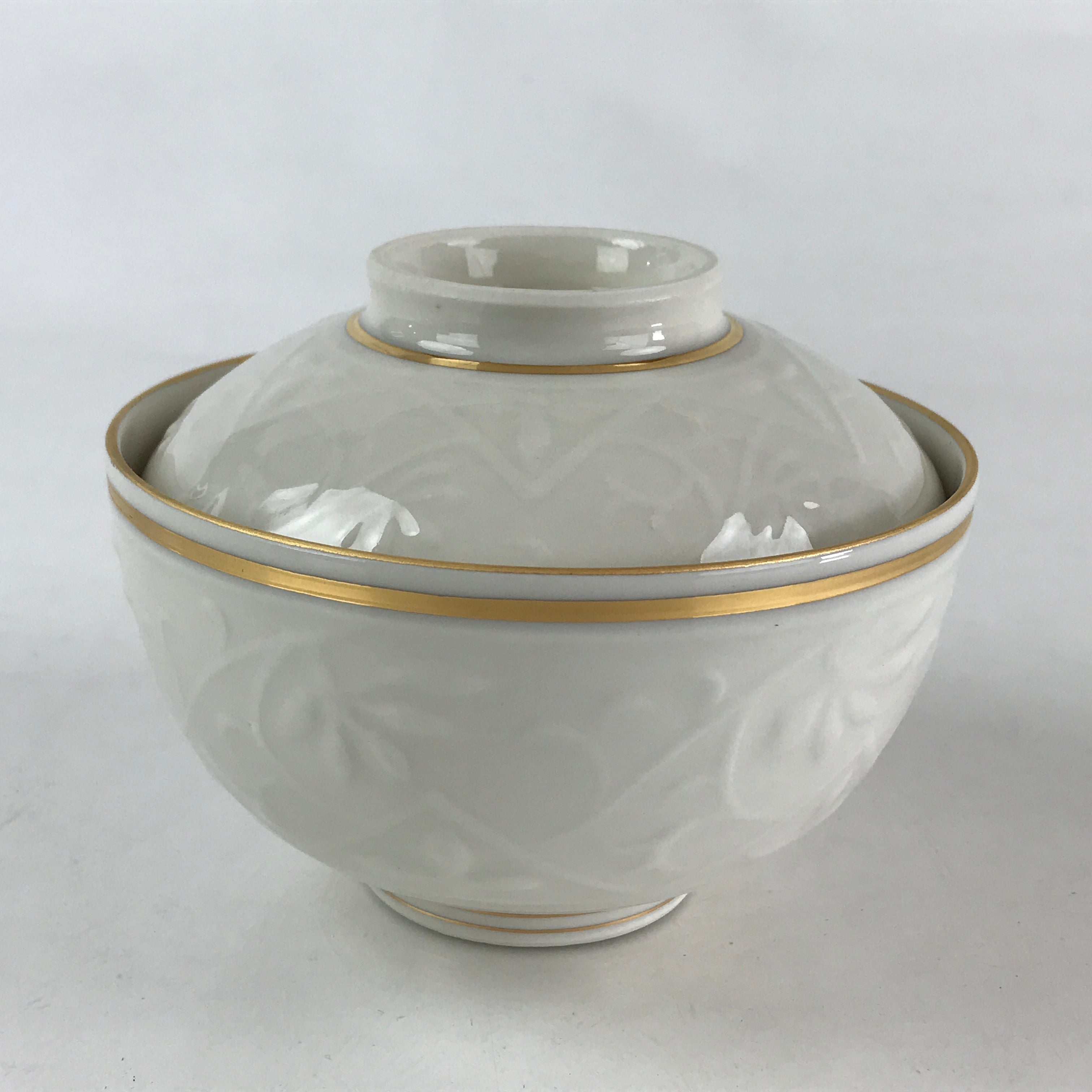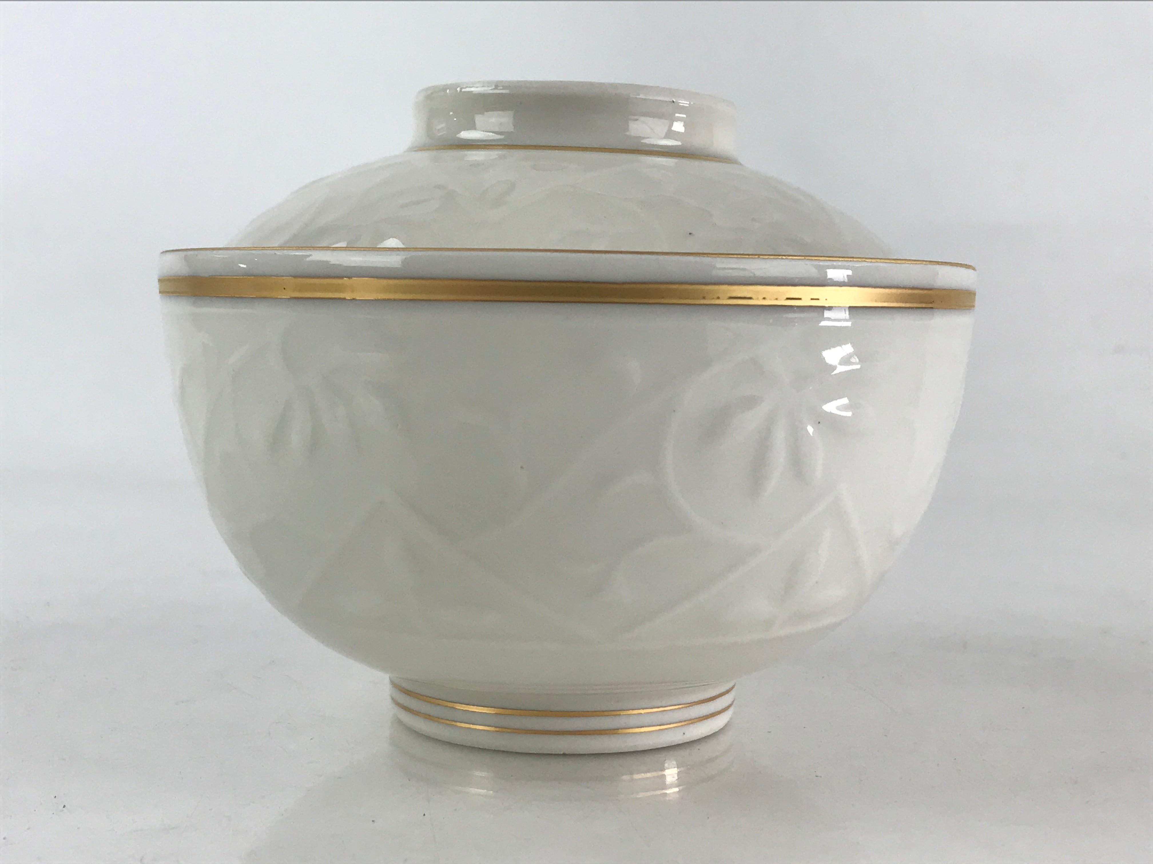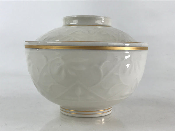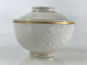Japanese Ceramic Lidded Rice Bowl White Chawan Vtg Pottery Hand-drawn Flower PY2