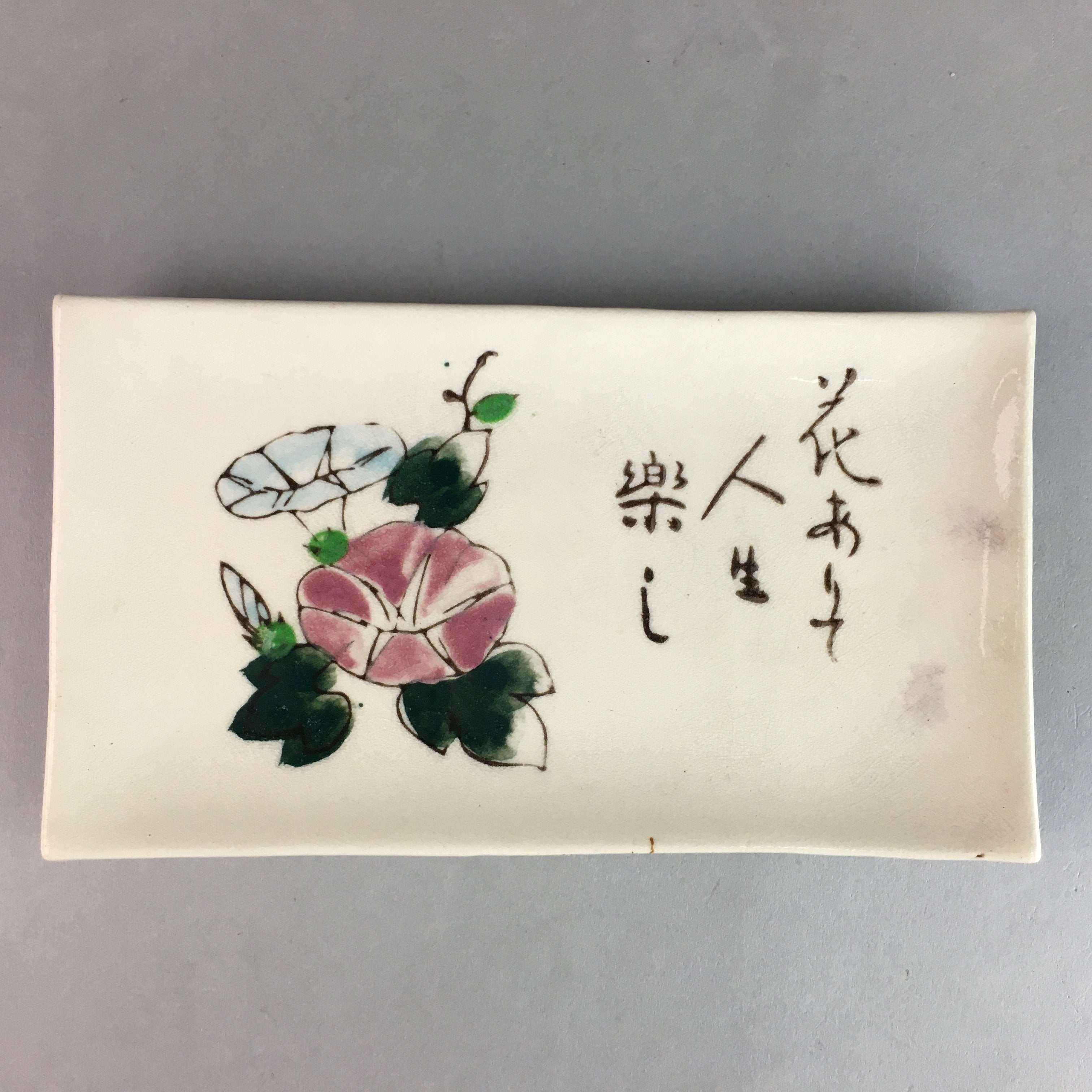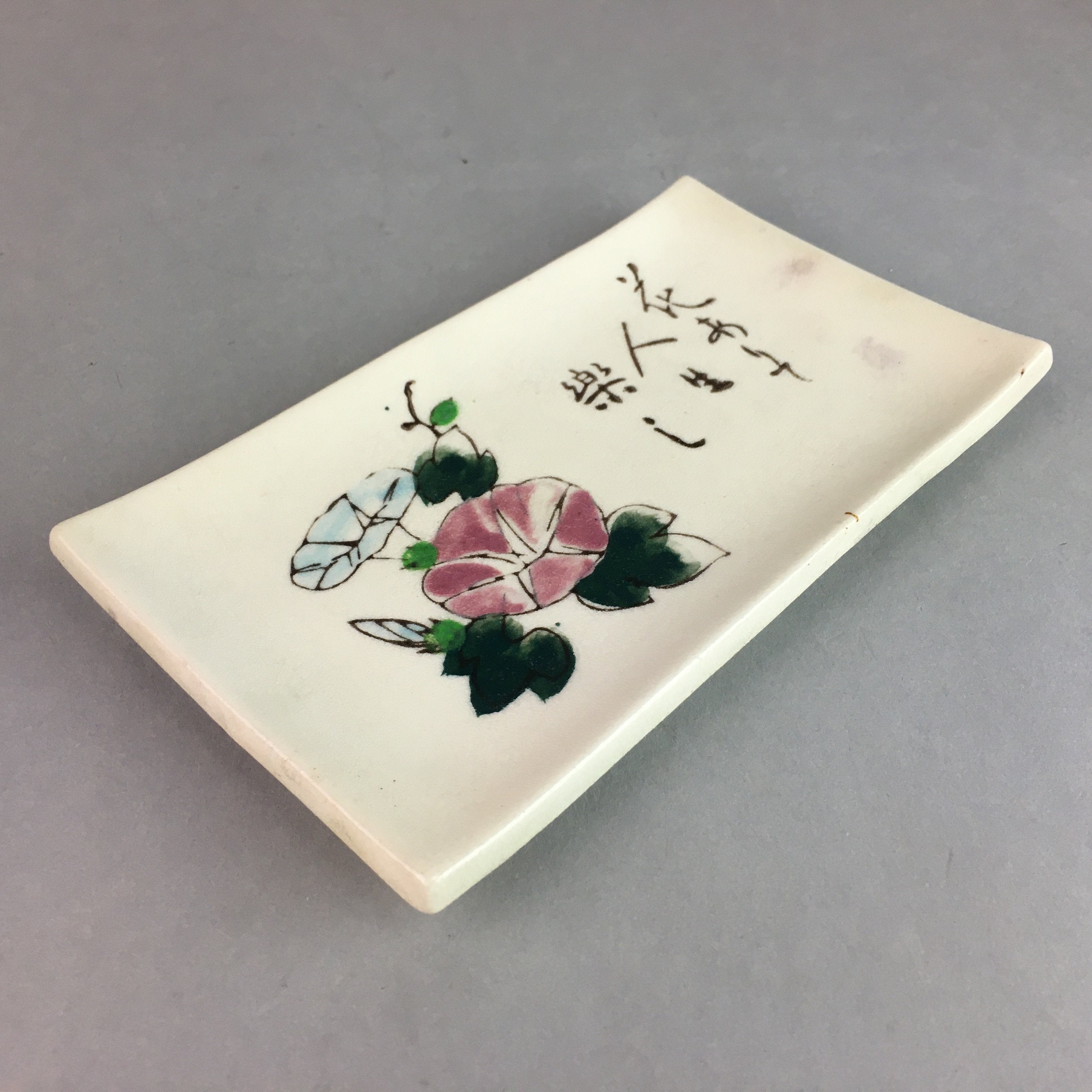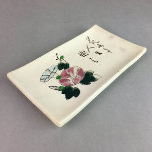 Japanese Ceramic Plate Vtg Rectangle Pottery Floral Kanji Morning Glory PP316