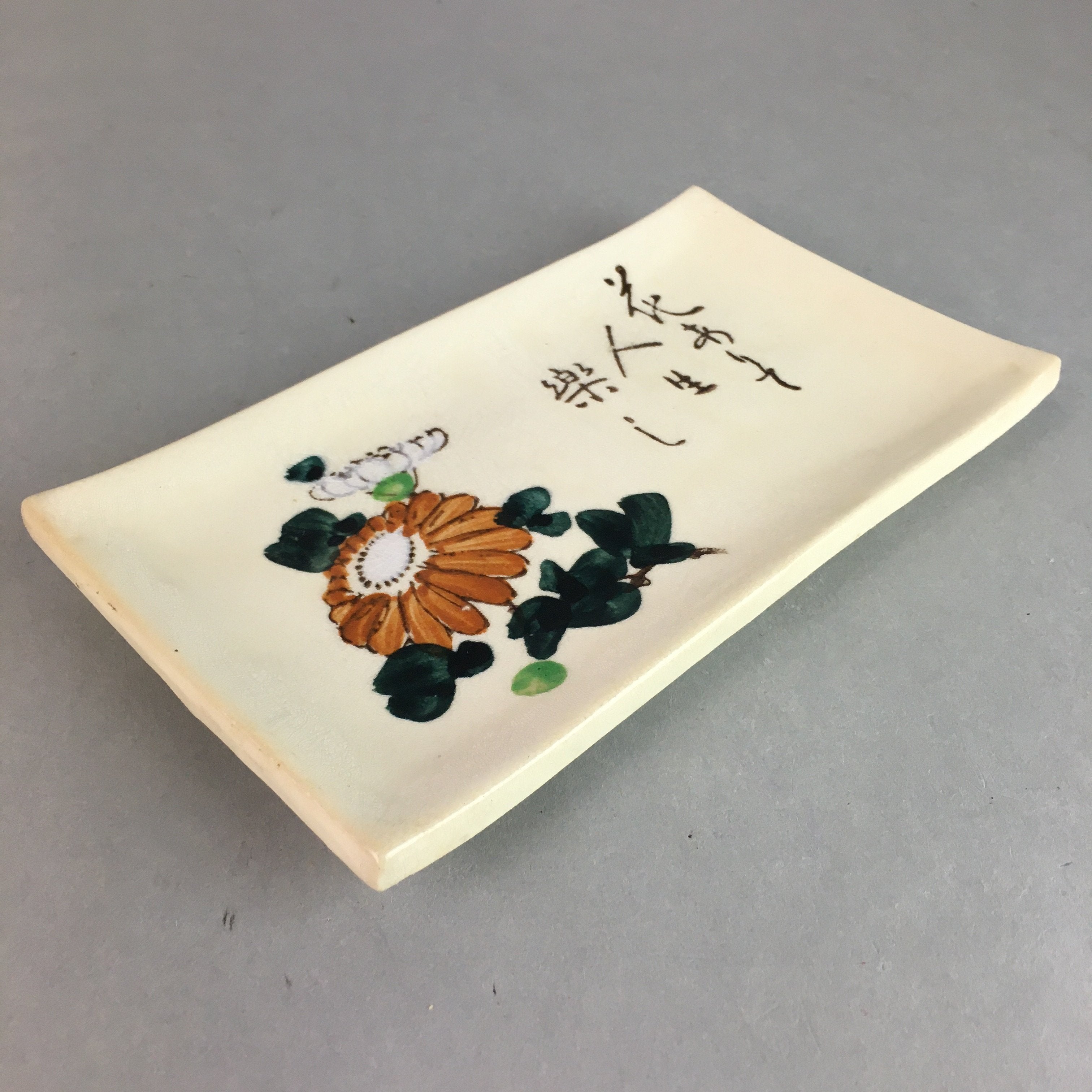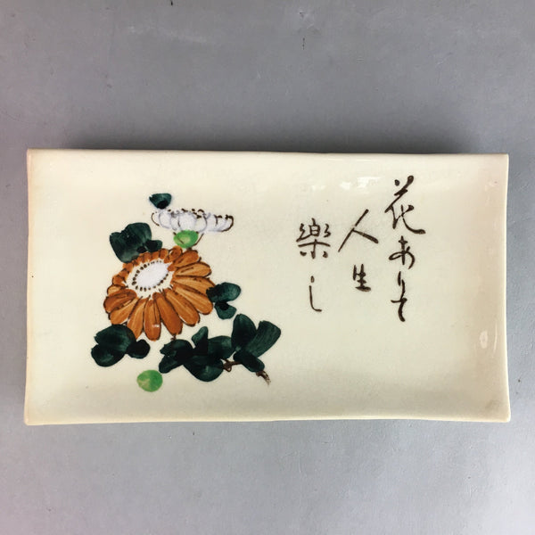 Japanese Ceramic Plate Vtg Rectangle Pottery Floral Kanji Chrysanthemum PP320