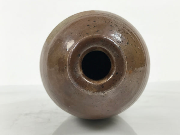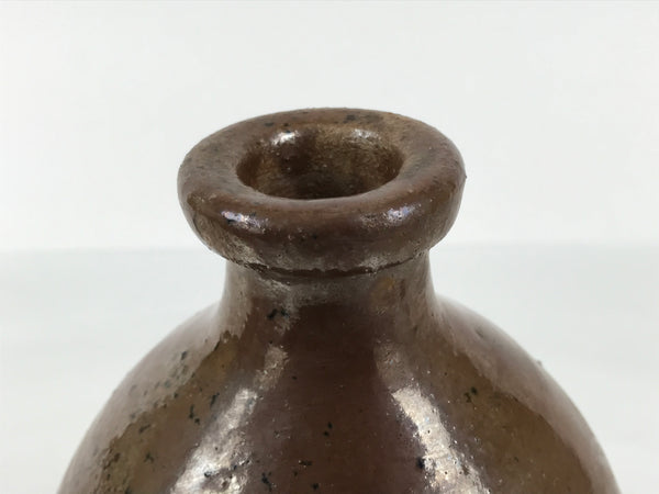 Japanese Ceramic Sake Bottle Kayoi-Tokkuri Vtg Brown Round Wax Resist TS873