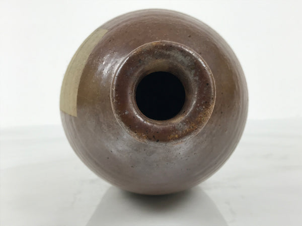 Japanese Ceramic Sake Bottle Kayoi-Tokkuri Vtg Brown Round Wax Resist TS874