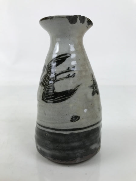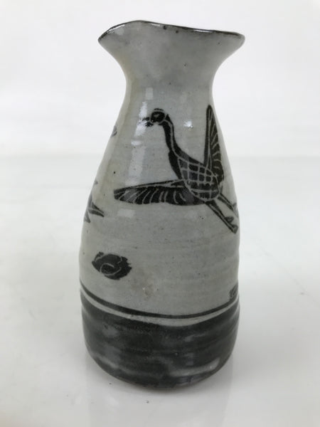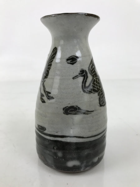 Japanese Ceramic Sake Bottle Tokkuri Gray Flying Crane Cloud Wavy Shade TS798