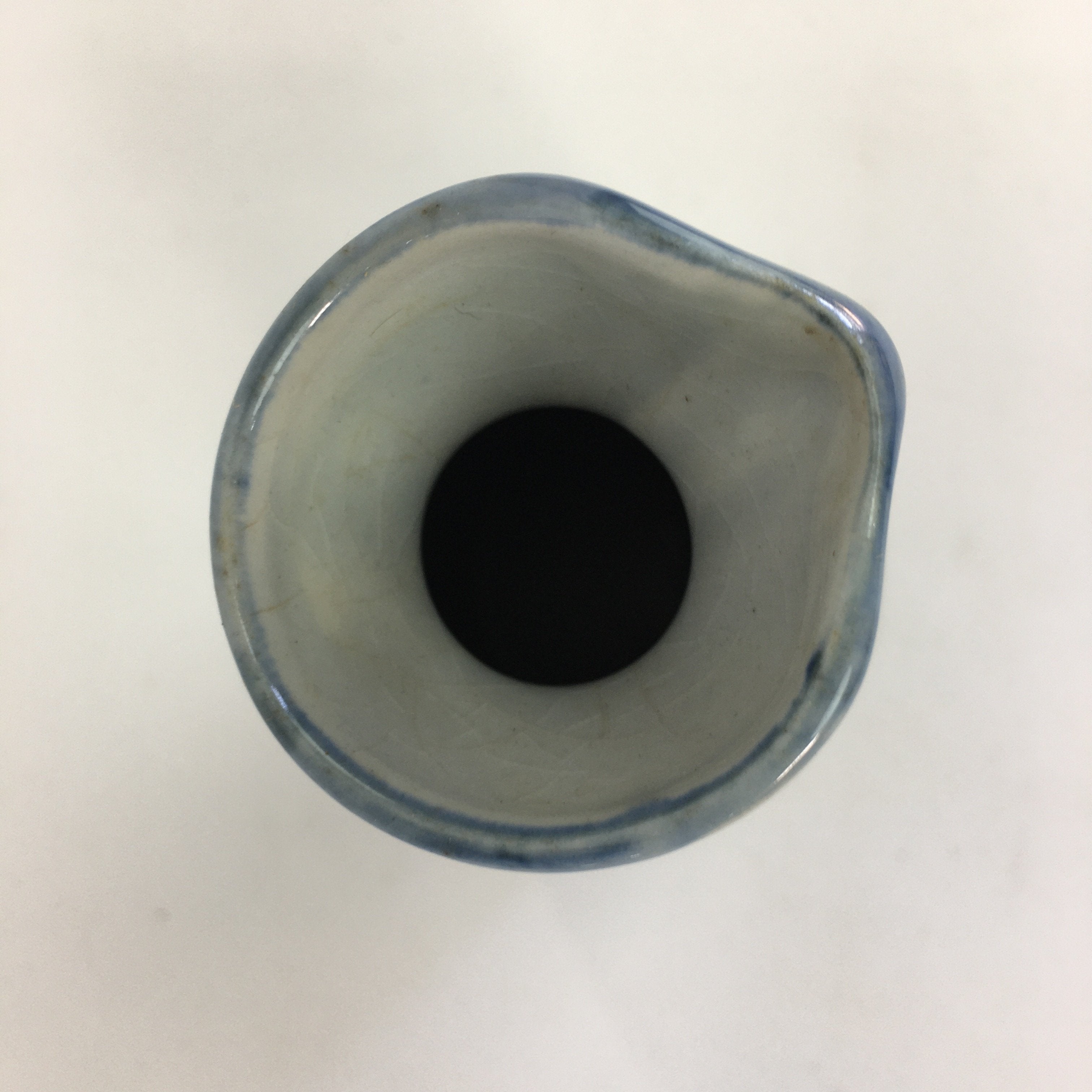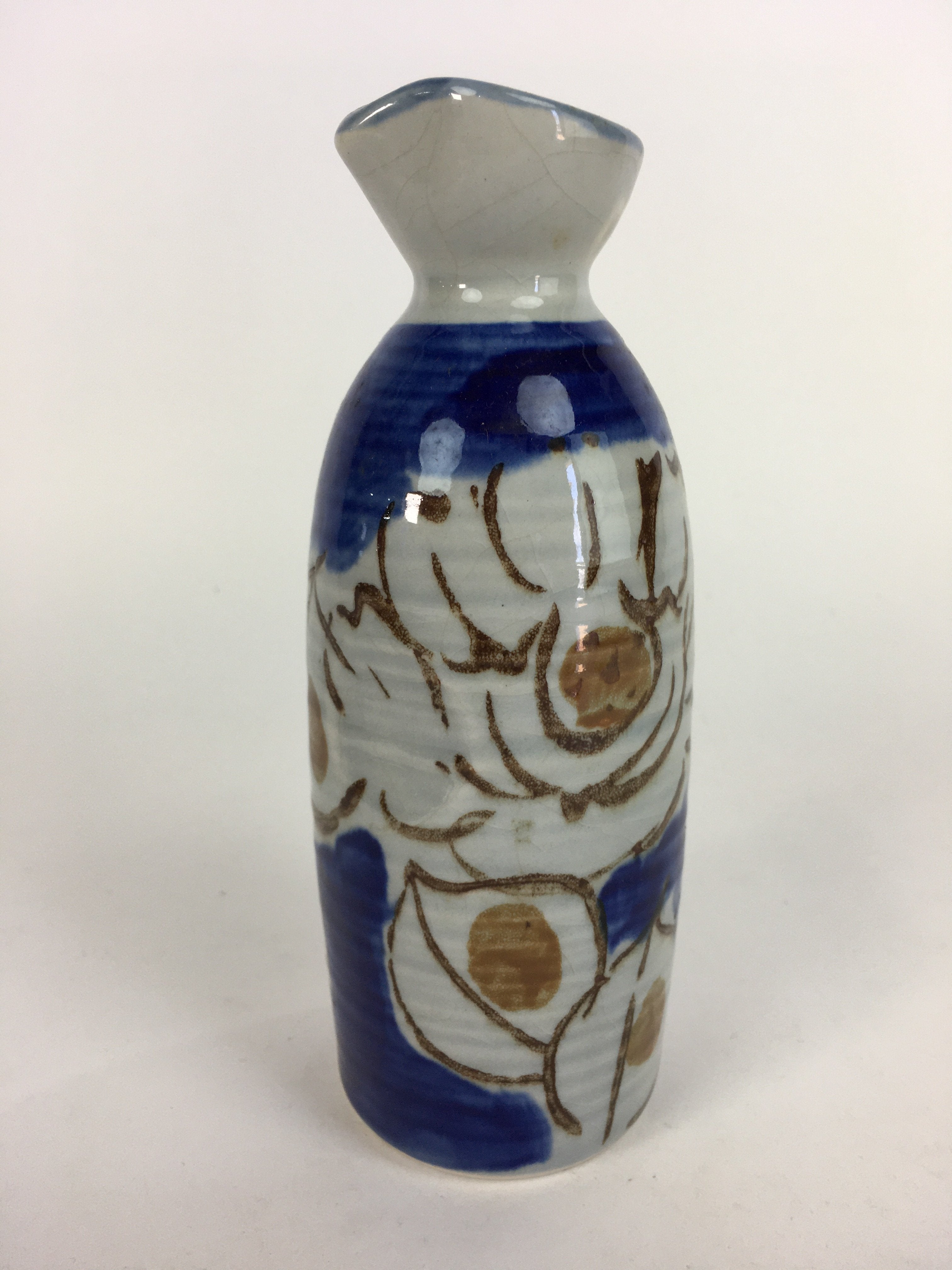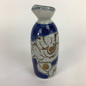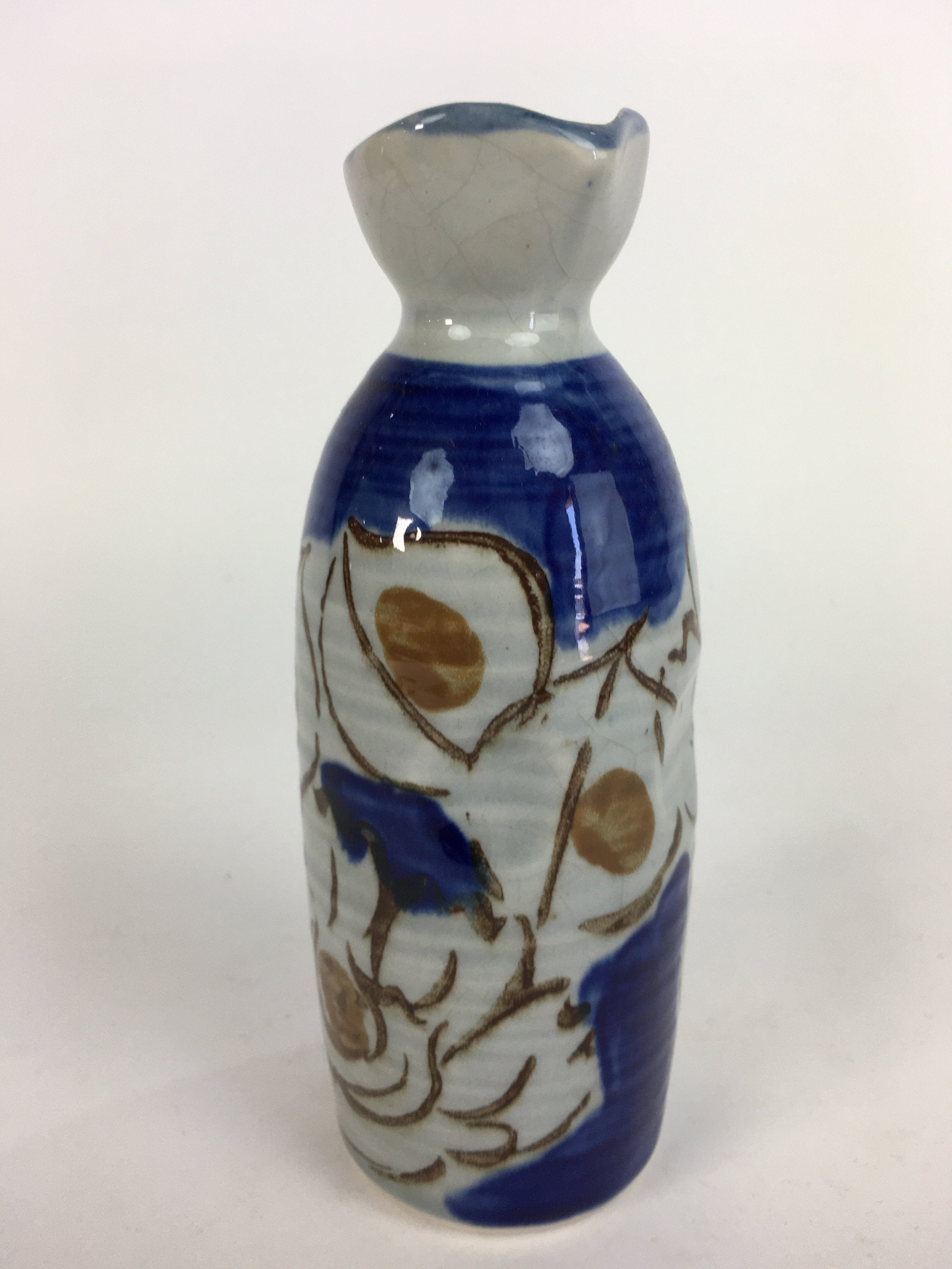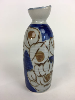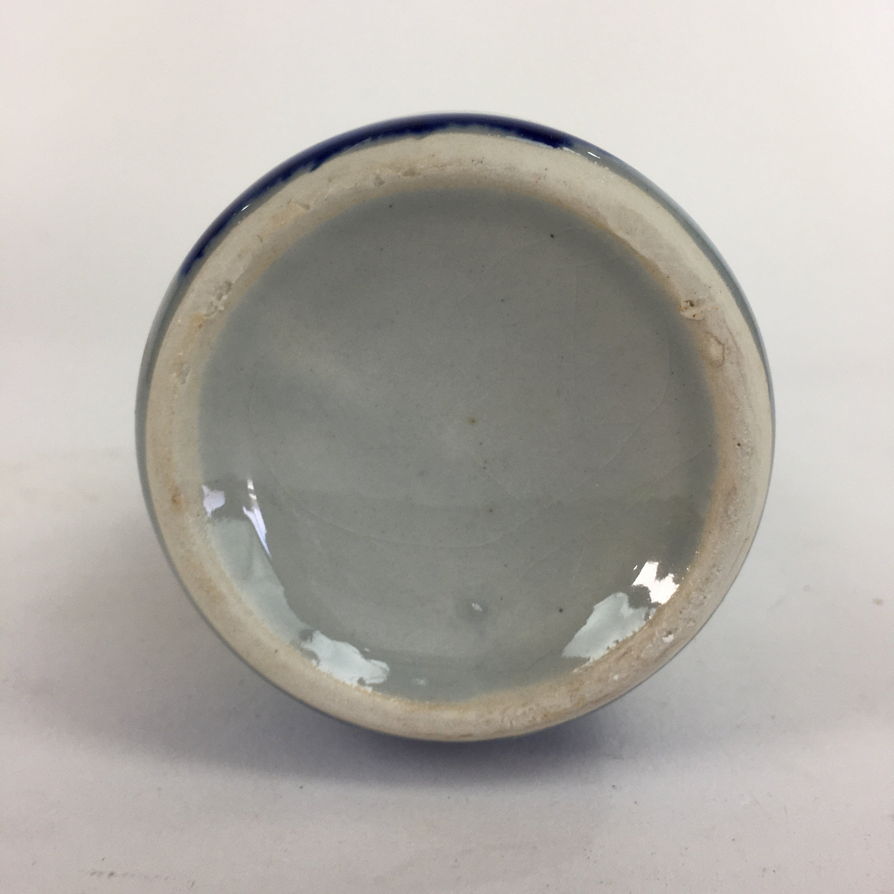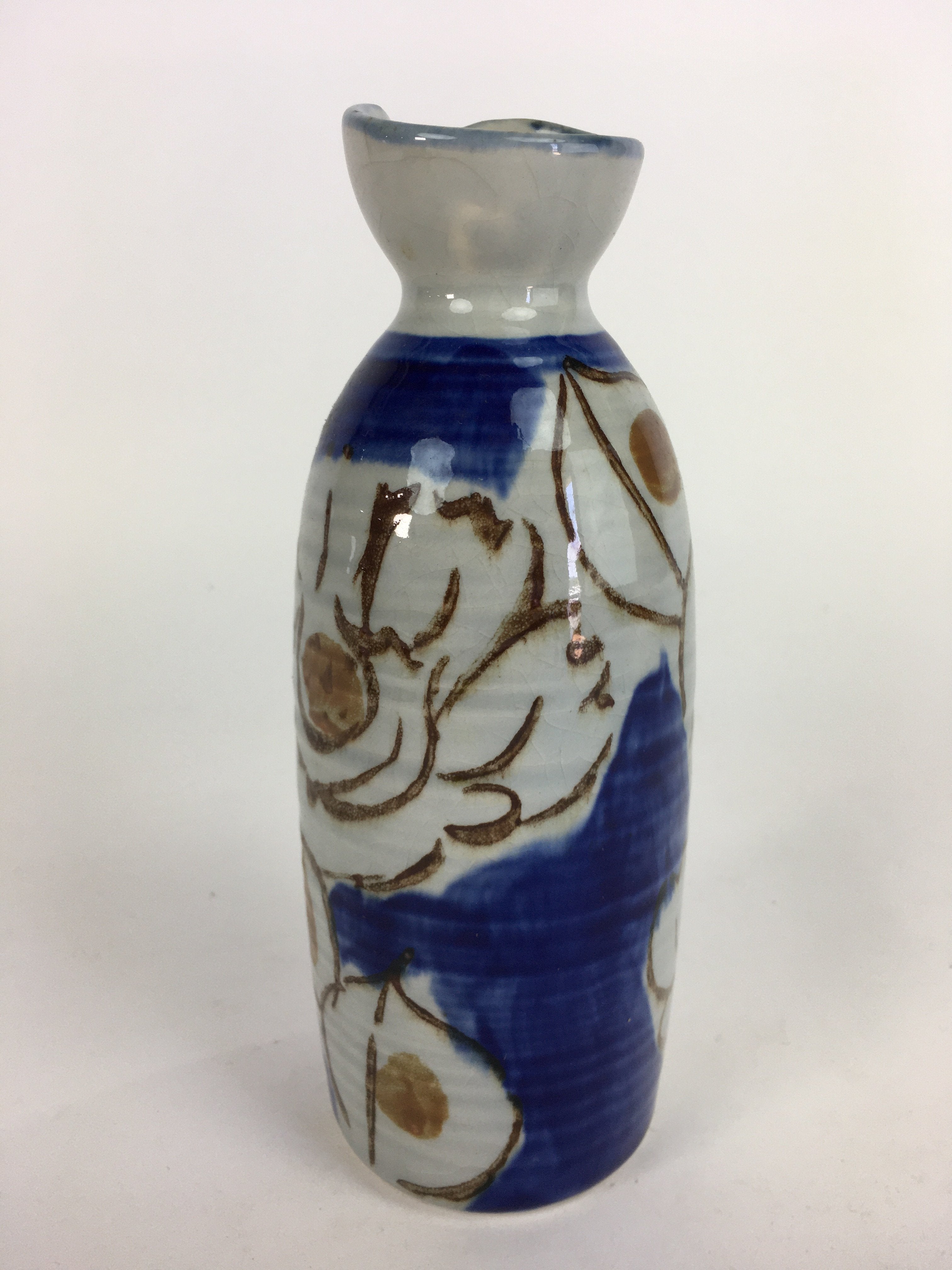 Japanese Ceramic Sake Bottle Tokkuri Vtg Pottery Blue Hand Drawn Picture TS265