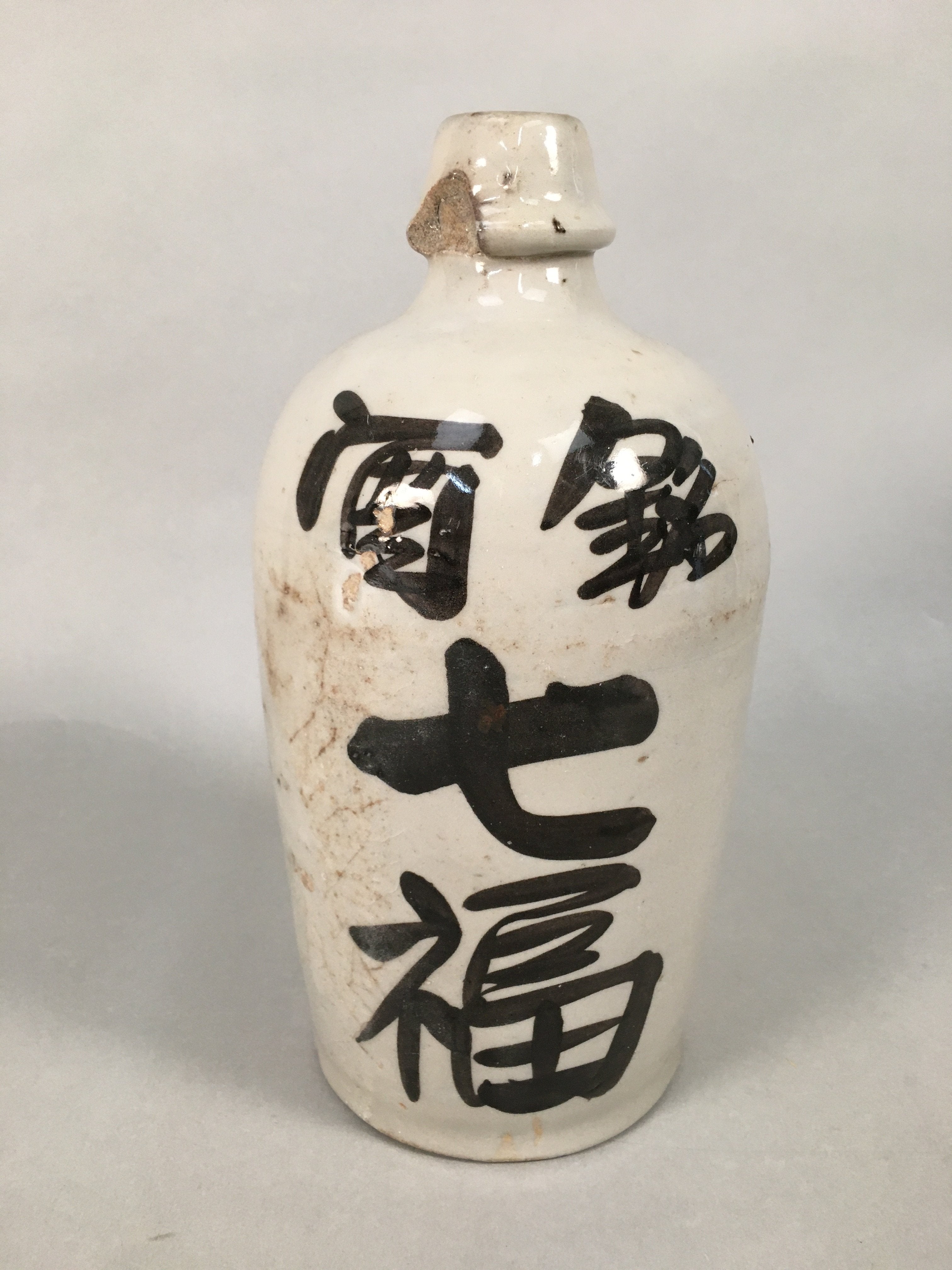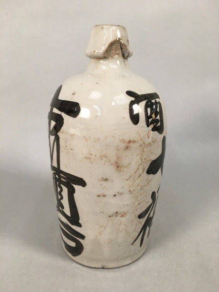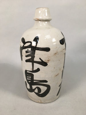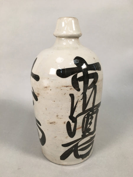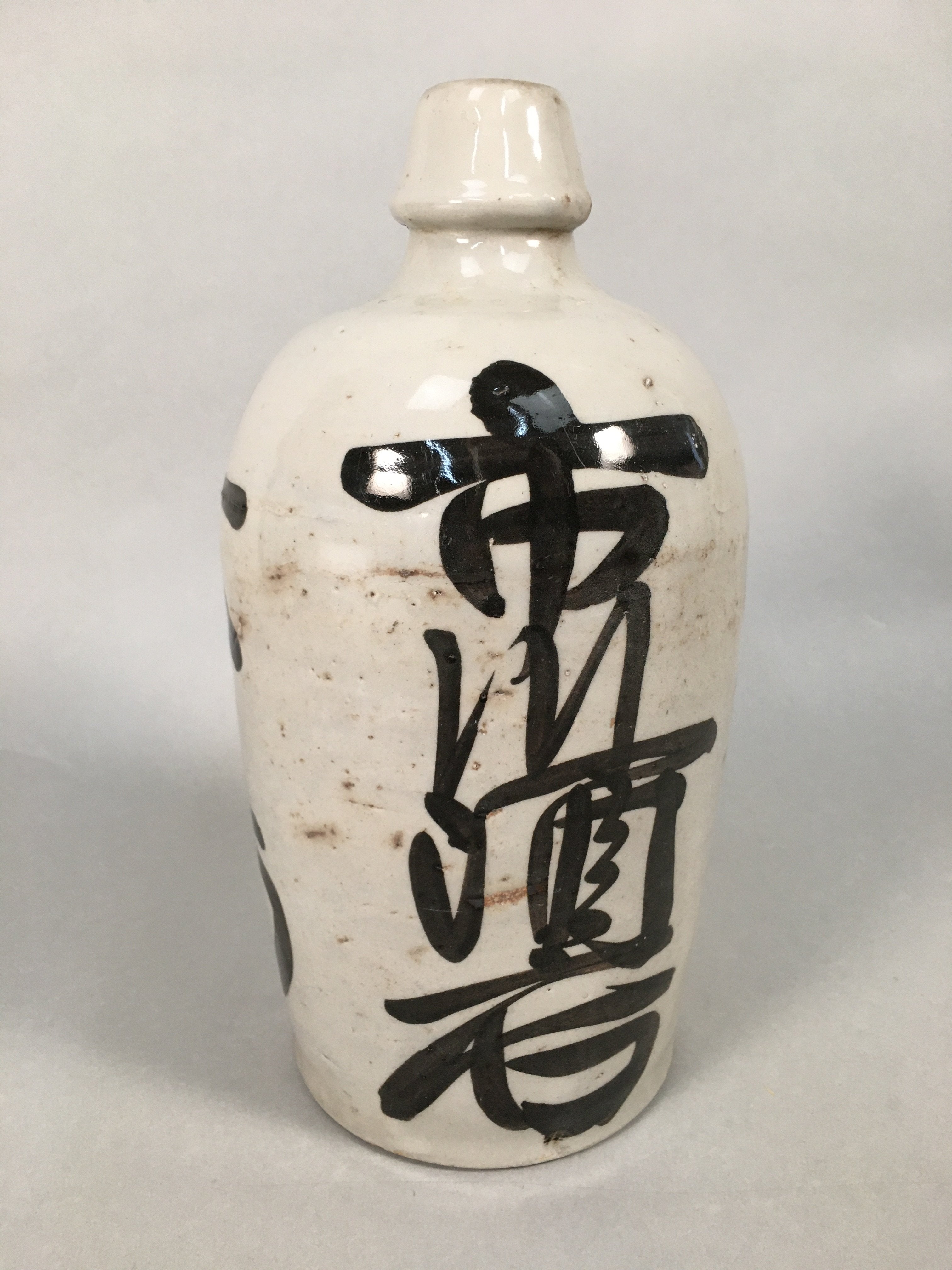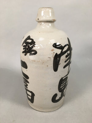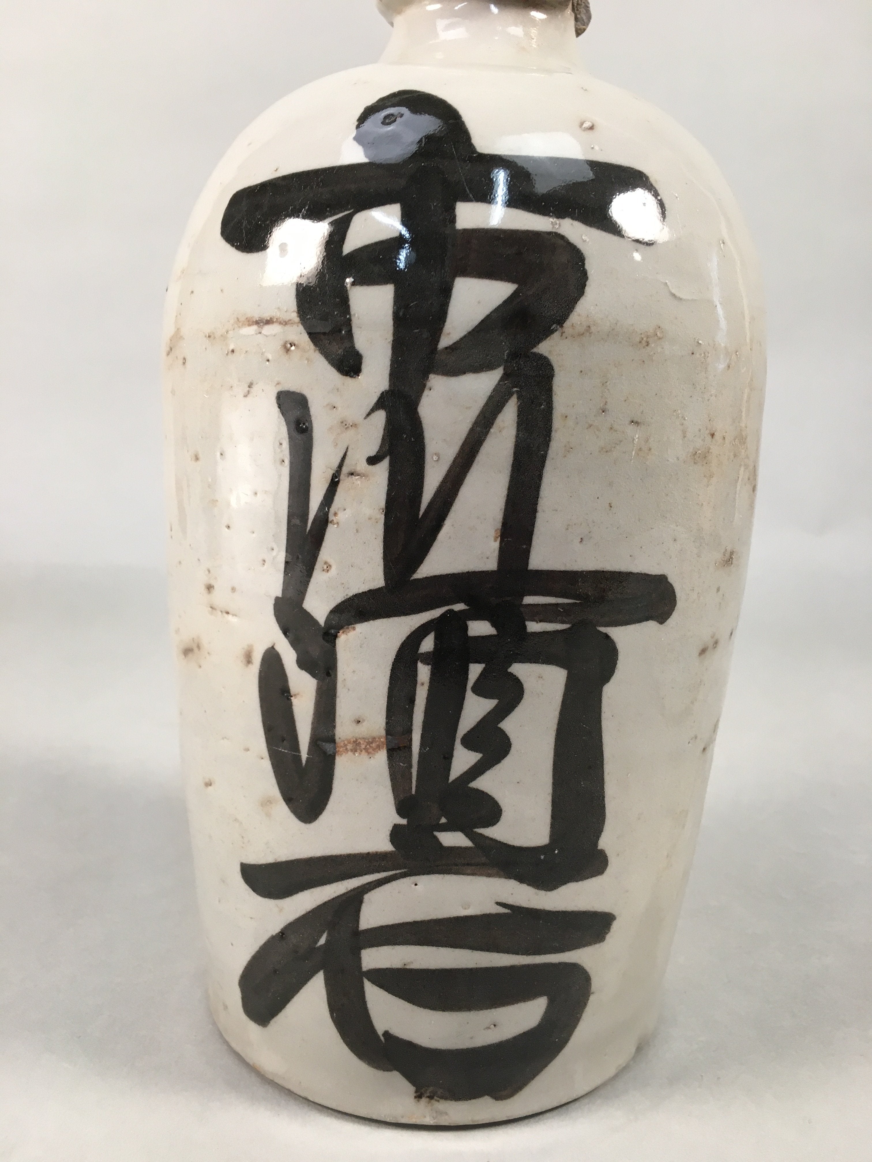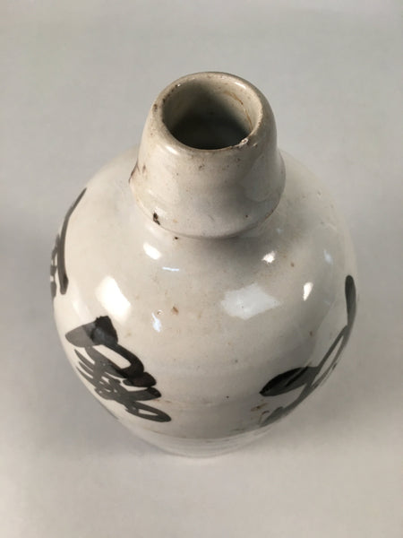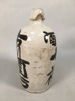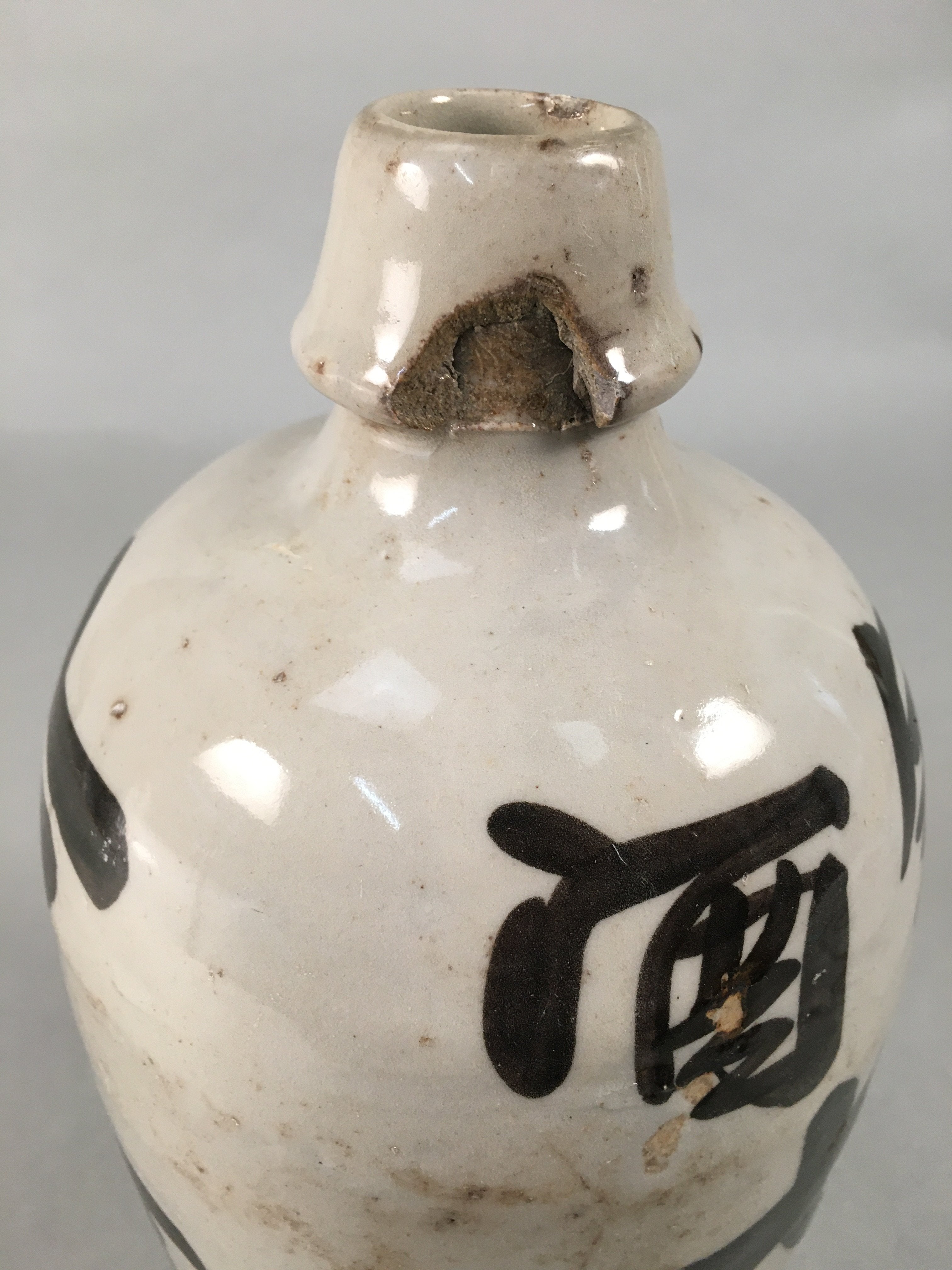 Japanese Ceramic Sake Bottle Tokkuri Vtg Pottery Gray Hand-Written Kanji TS257