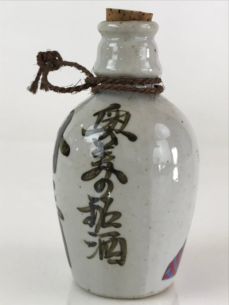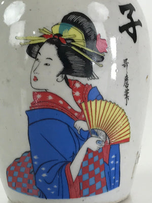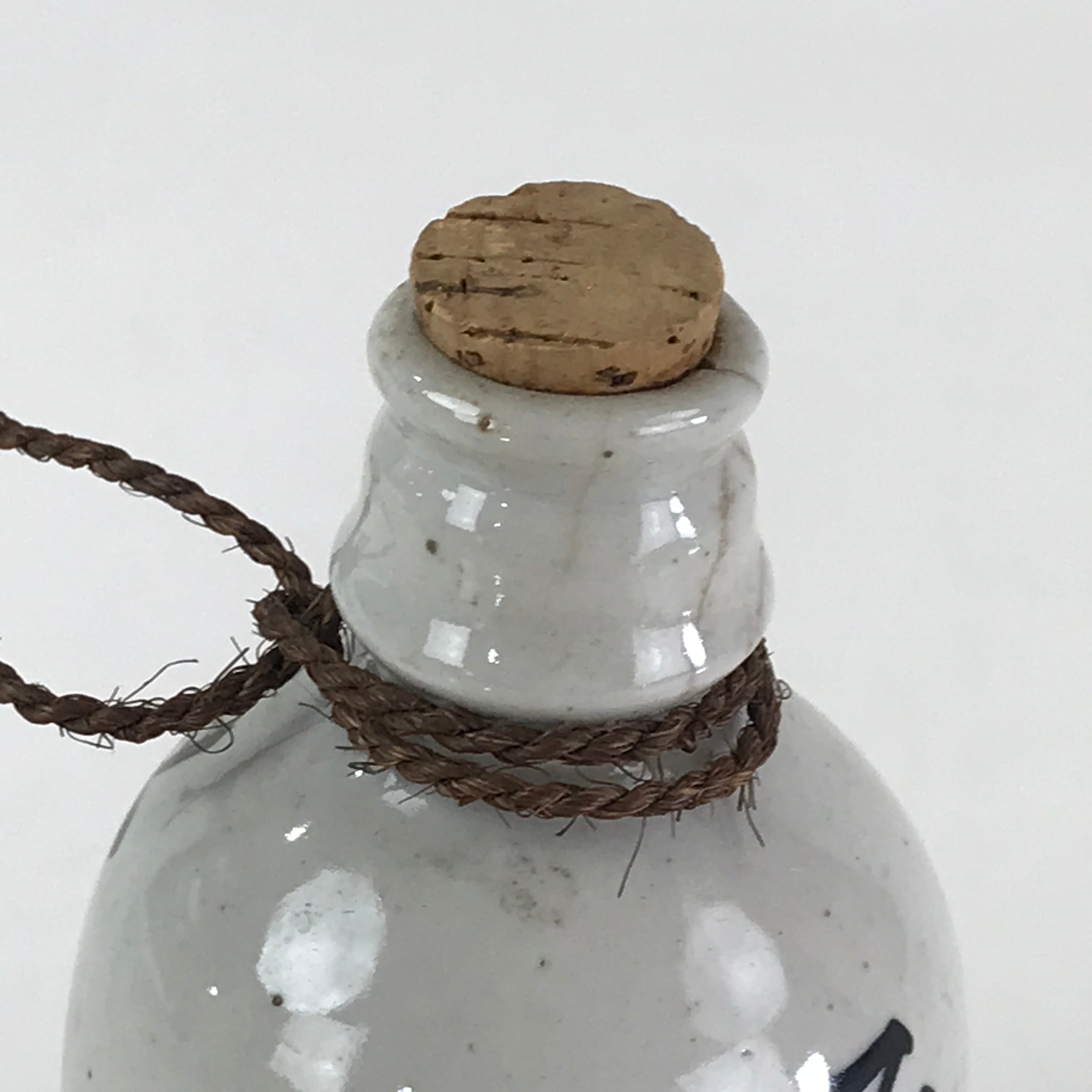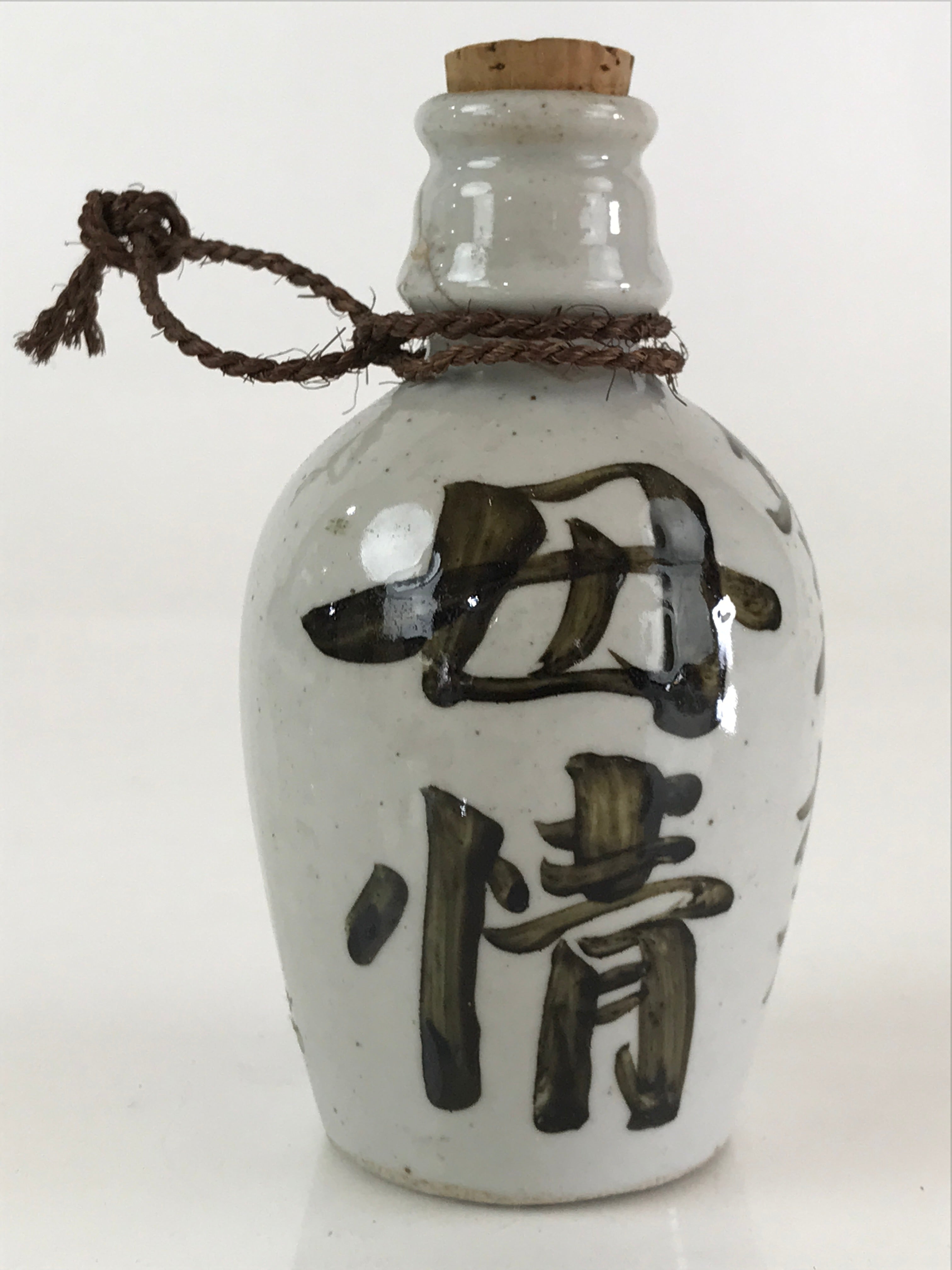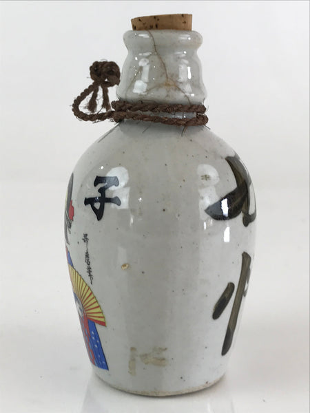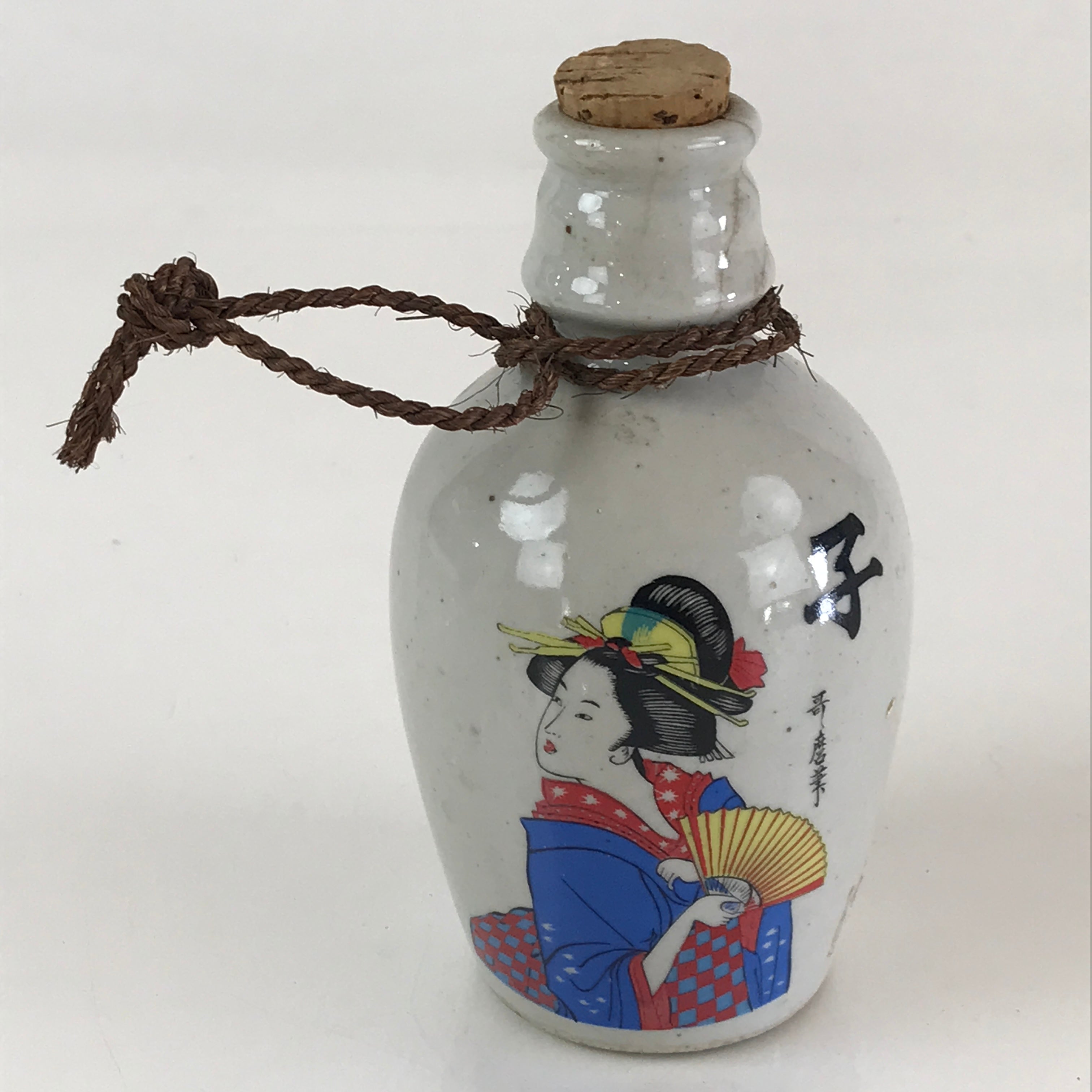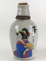 Japanese Ceramic Sake Bottle Vtg Pottery Ukiyo-e Tokkuri Gray TS469