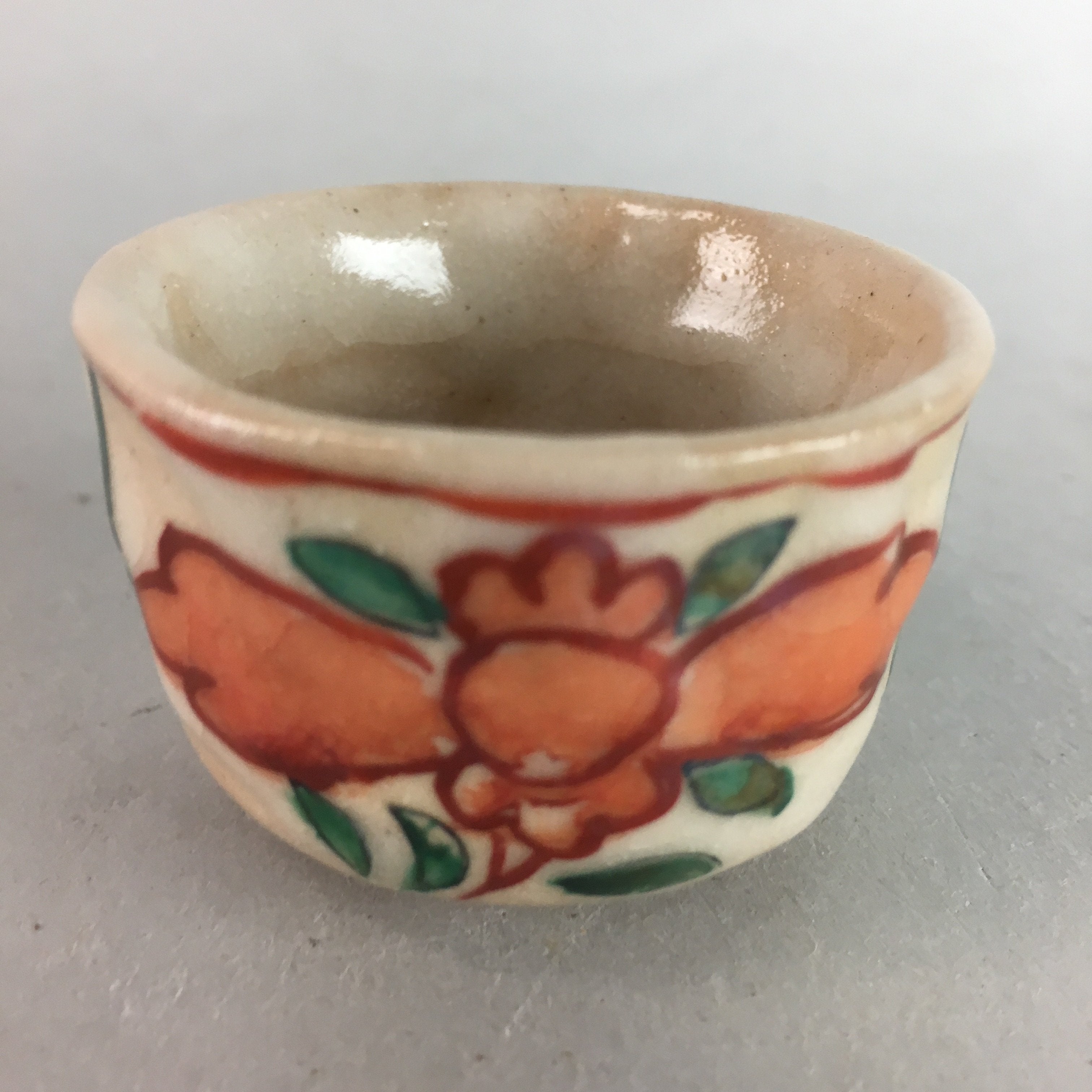Japanese Ceramic Sake Cup Guinomi Sakazuki Vtg Floral Pottery Crackle GU555