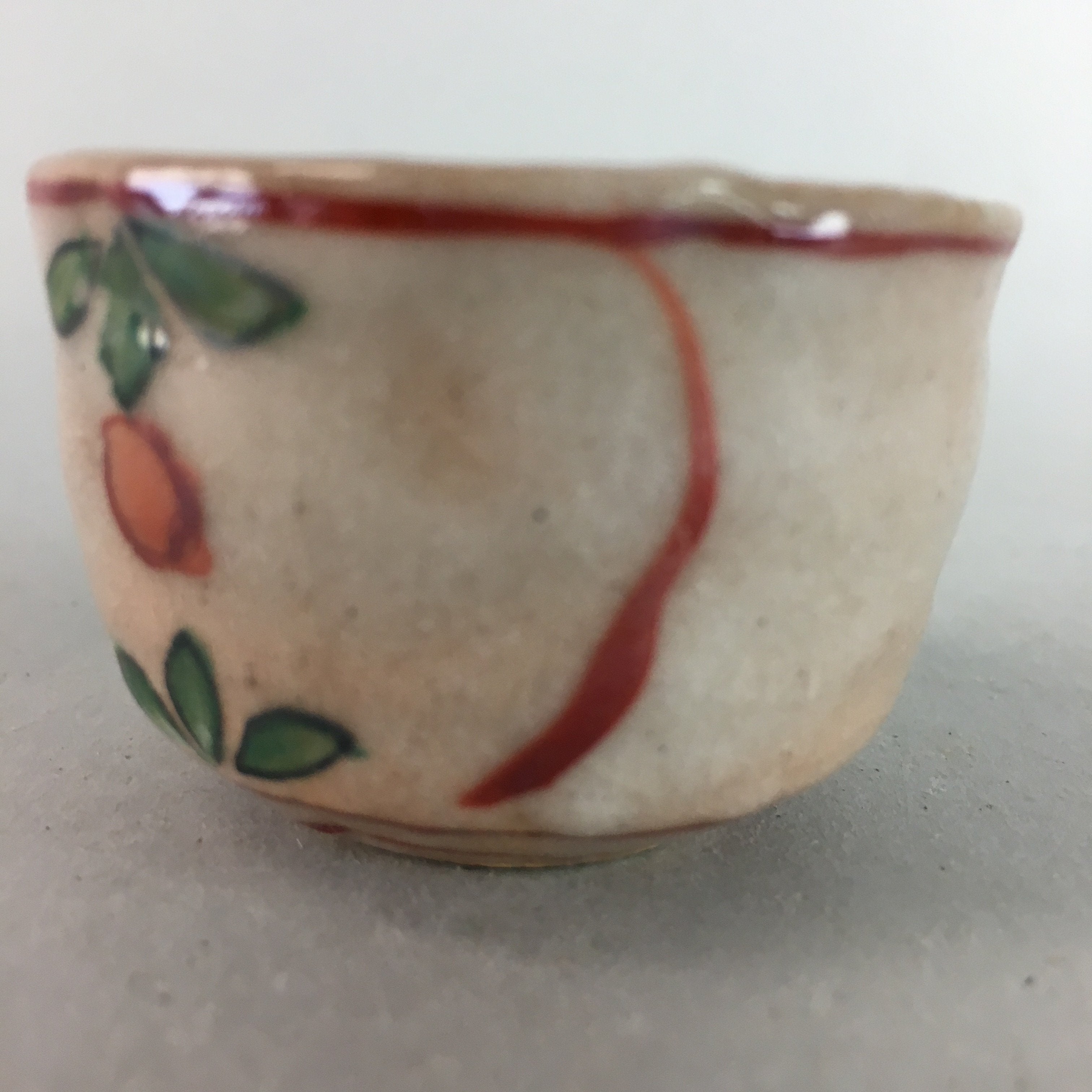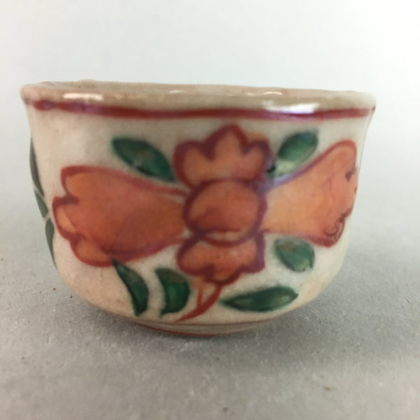 Japanese Ceramic Sake Cup Guinomi Sakazuki Vtg Floral Pottery Crackle GU556