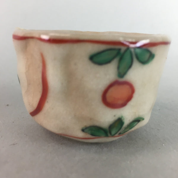 Japanese Ceramic Sake Cup Guinomi Sakazuki Vtg Floral Pottery Crackle GU558
