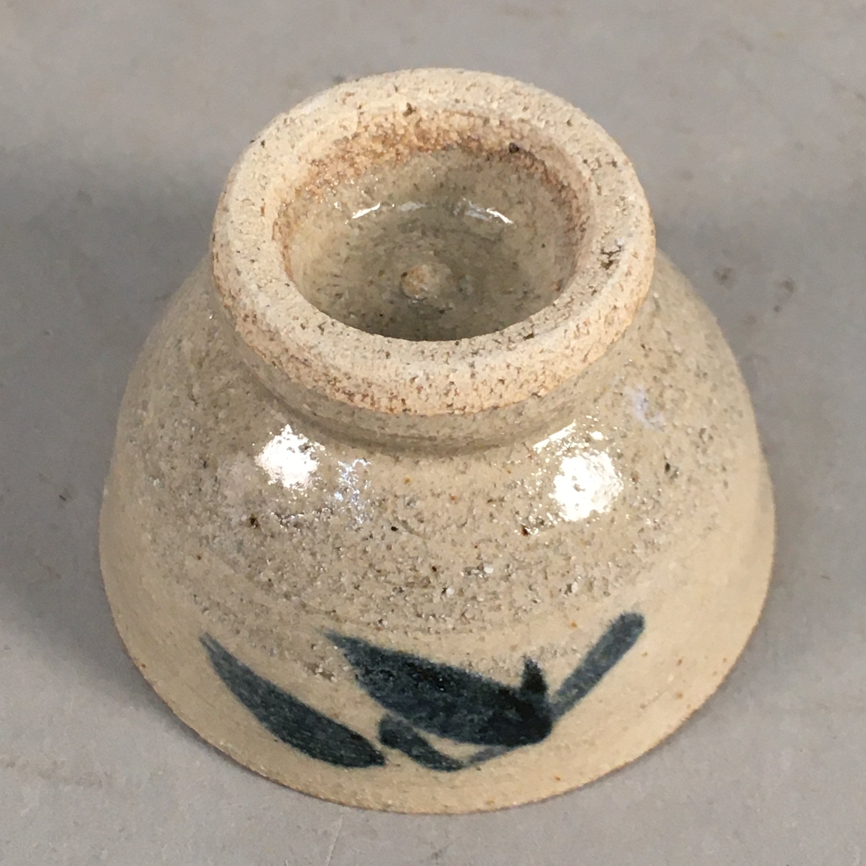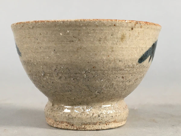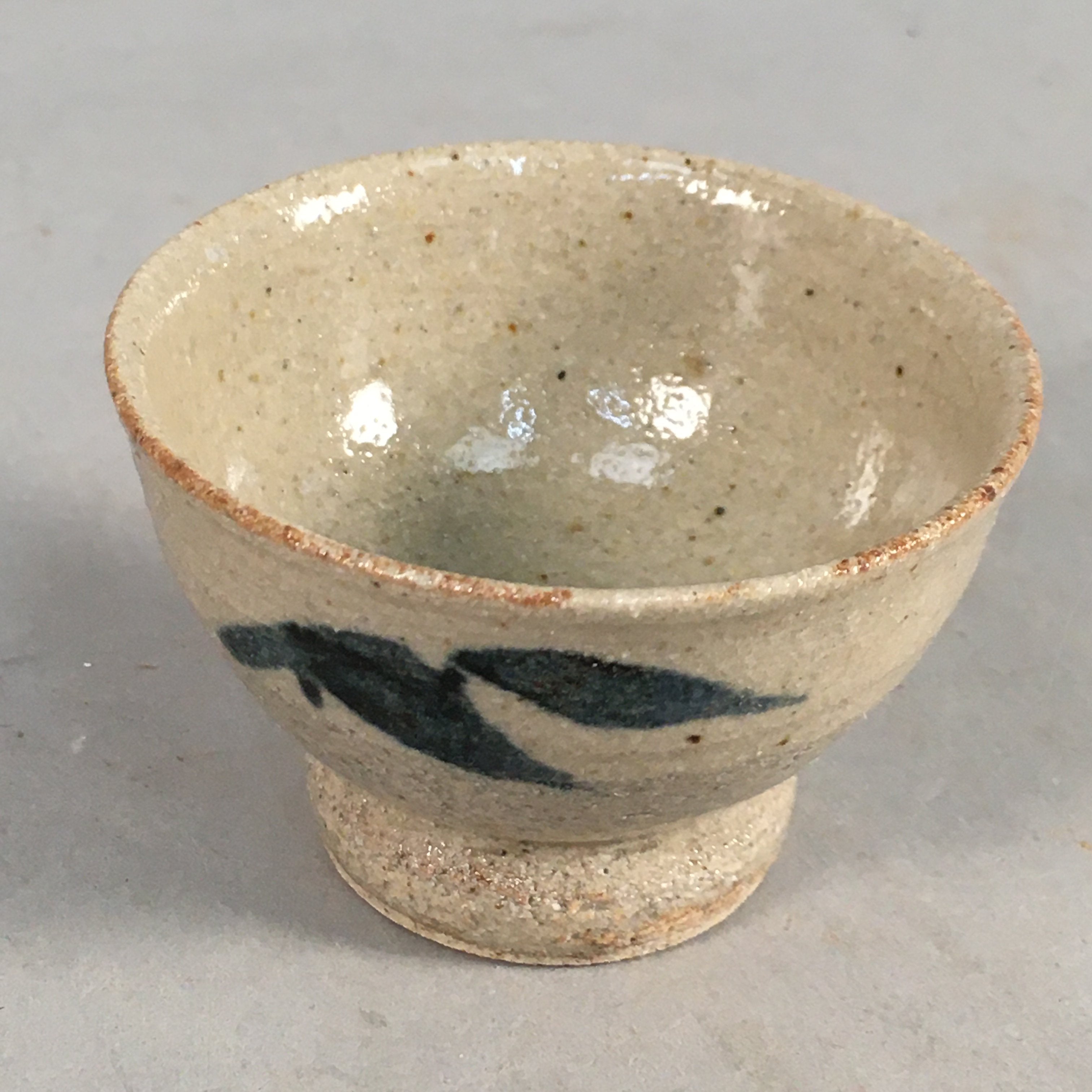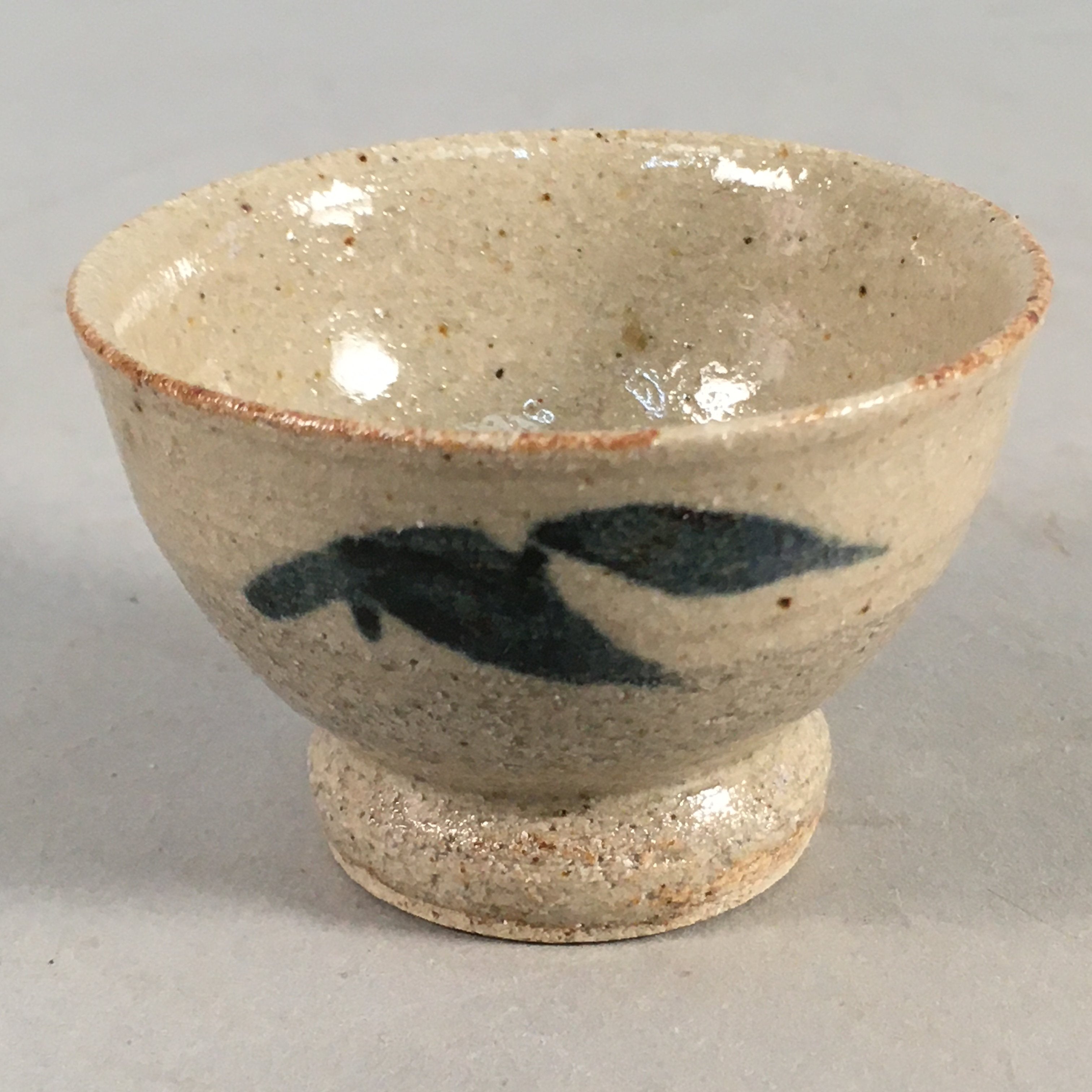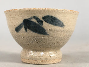 Japanese Ceramic Sake Cup Guinomi Sakazuki Vtg Pottery Blue Leaf GU816