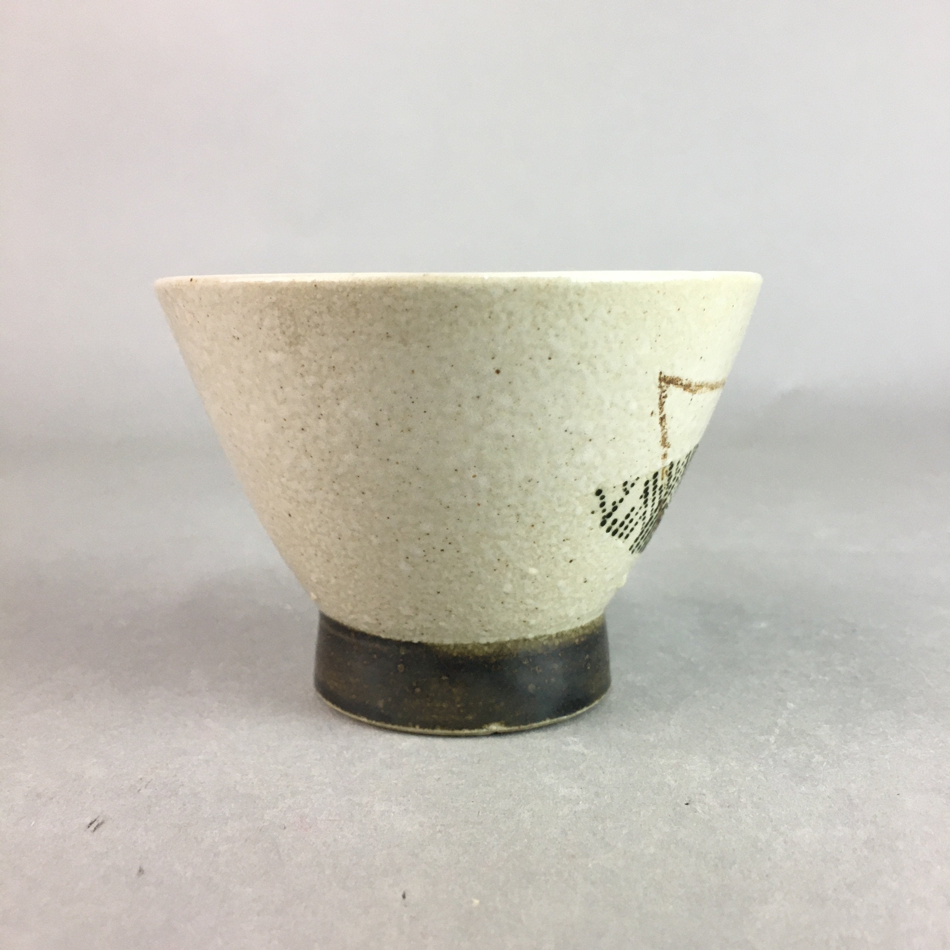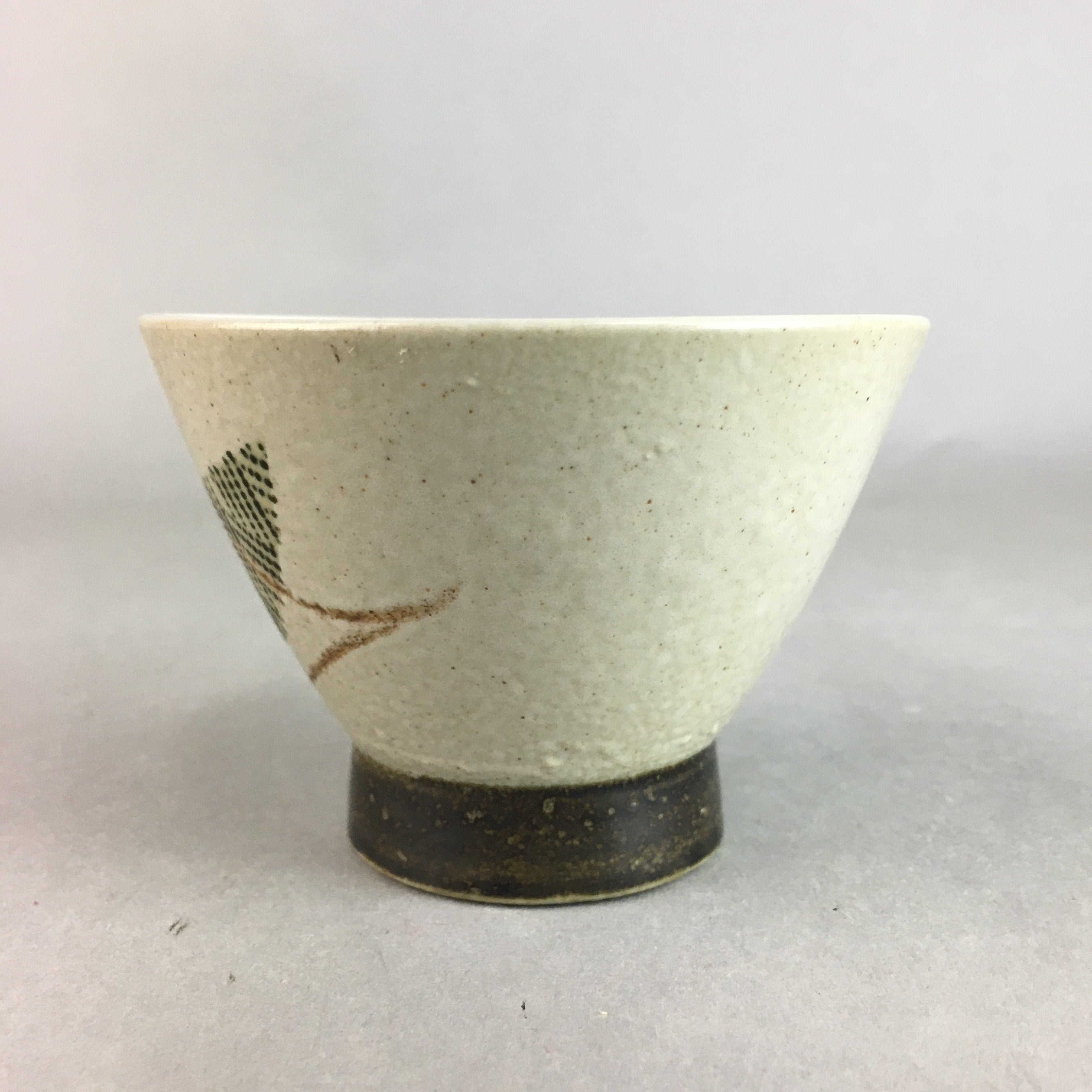 Japanese Ceramic Sake Cup Guinomi Sakazuki Vtg Pottery Leaf Design TC157