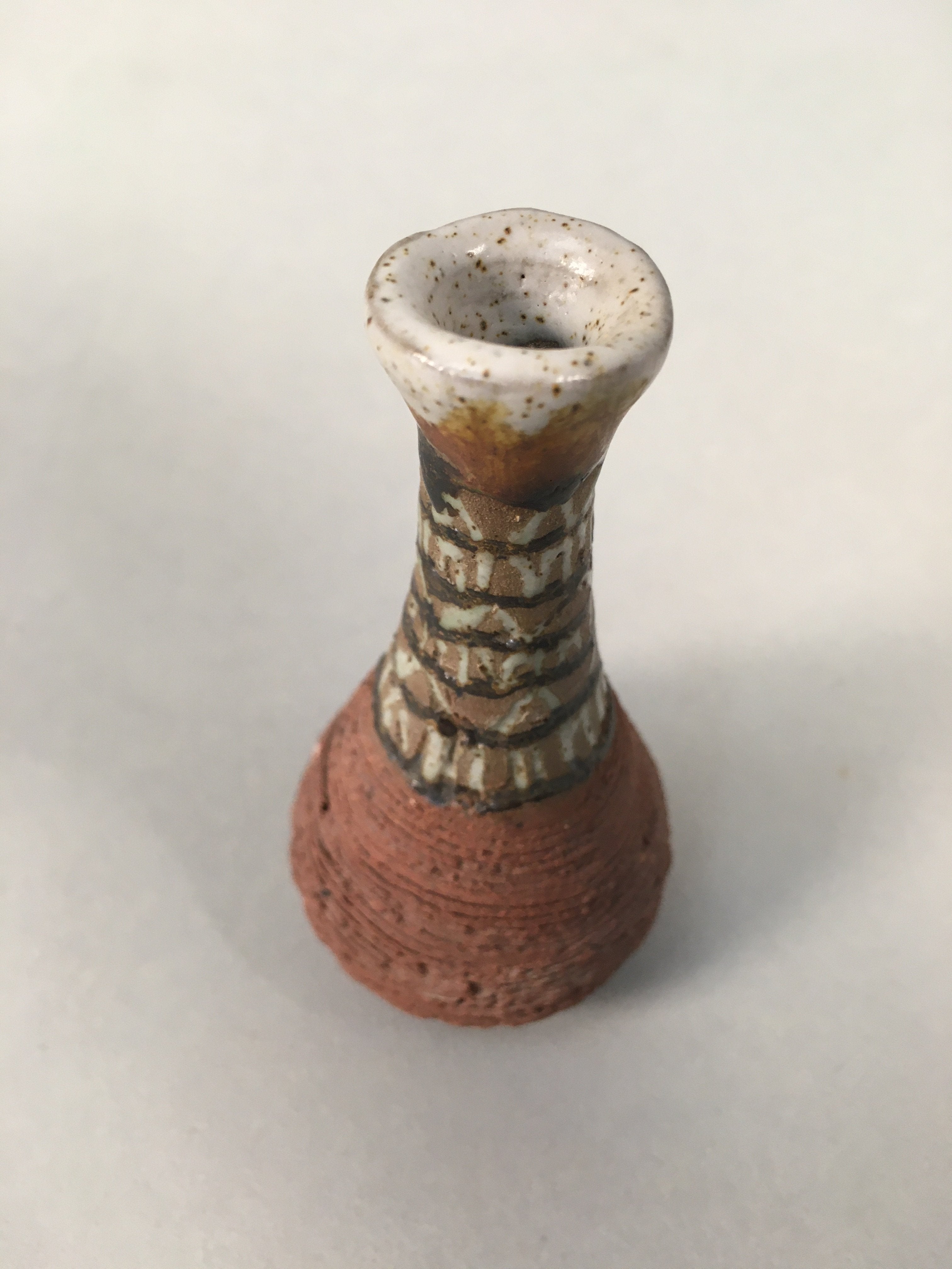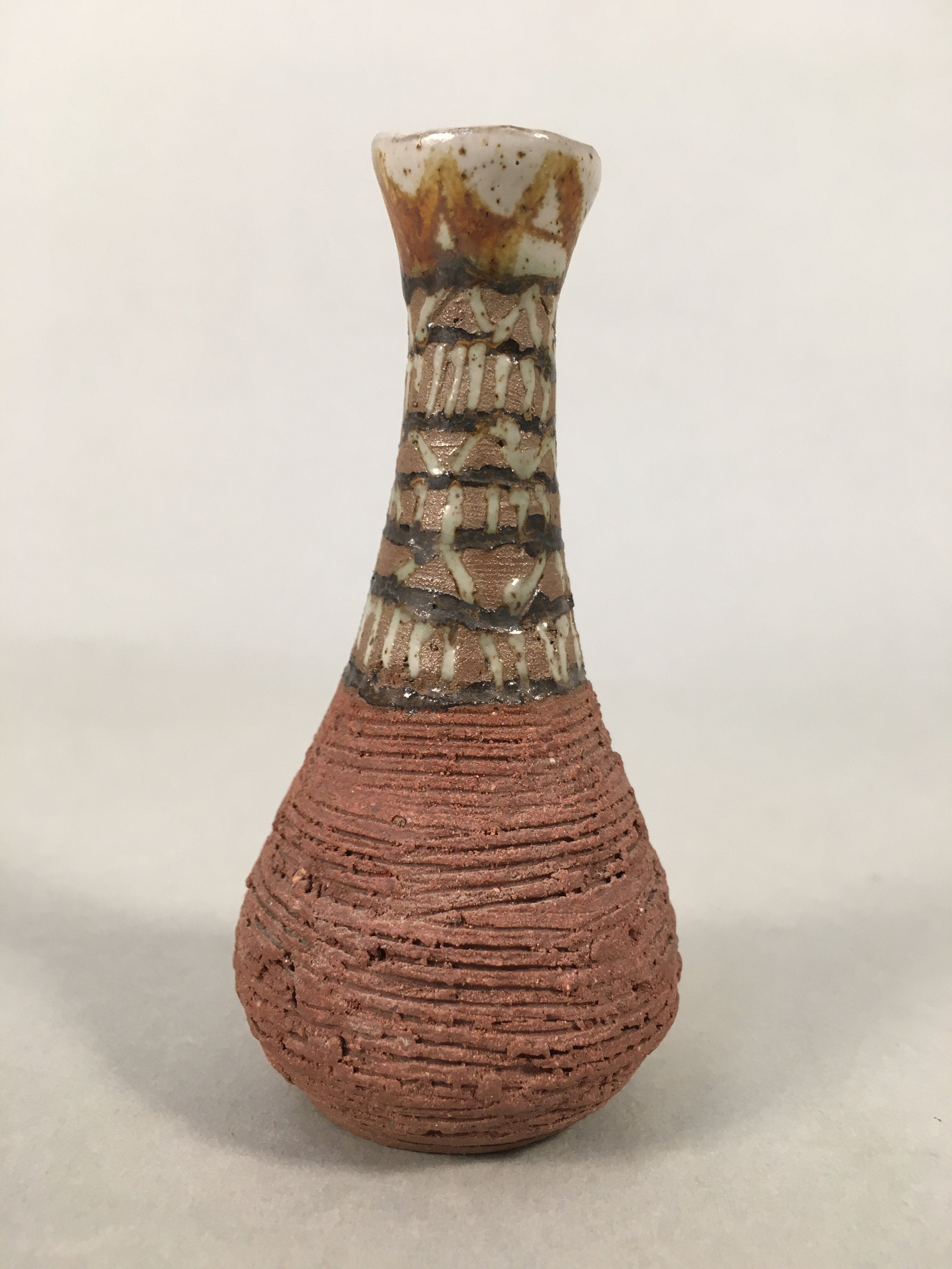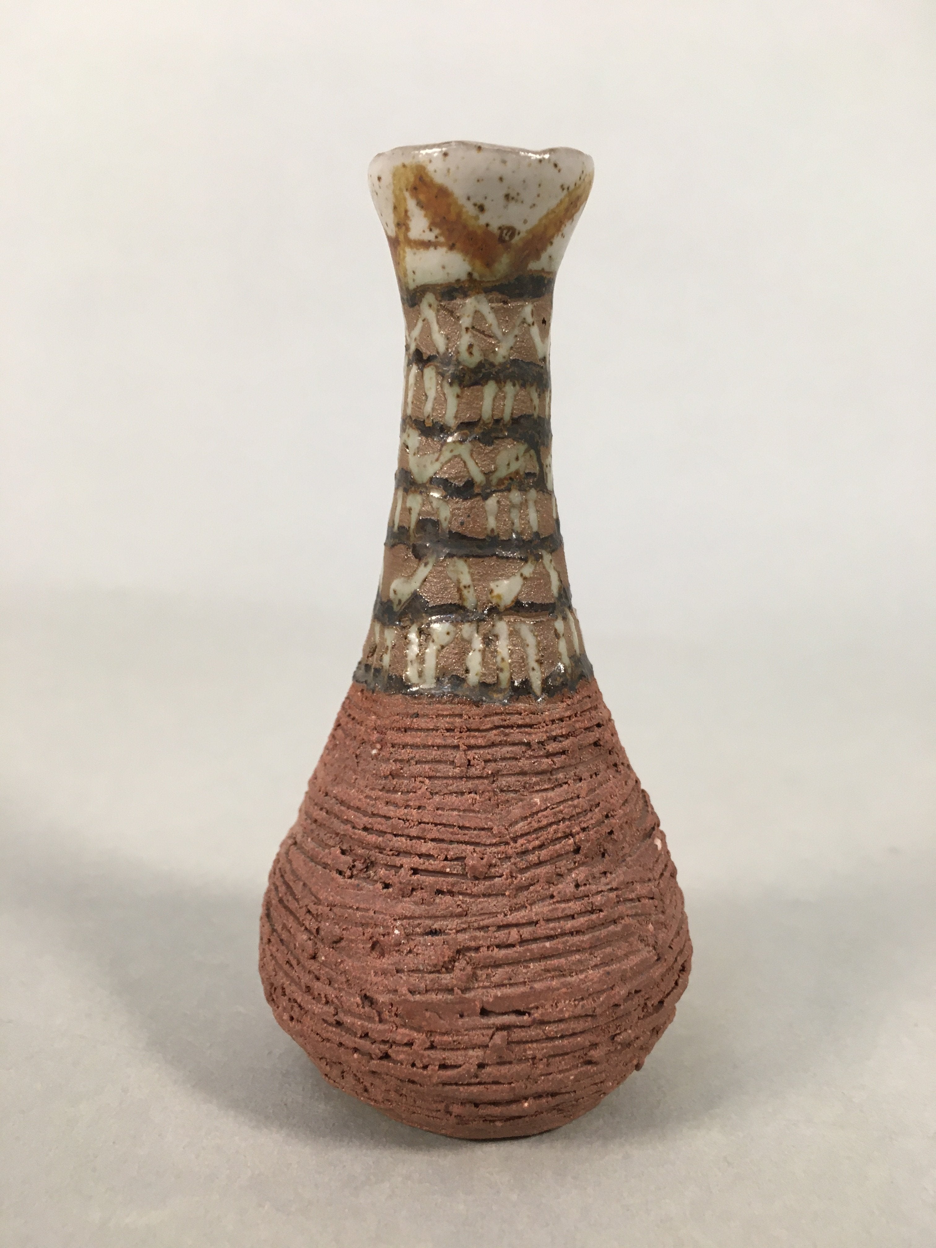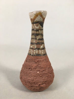 Japanese Ceramic Single Flower Vase Kabin Vtg Pottery Brown Long Neck MFV70