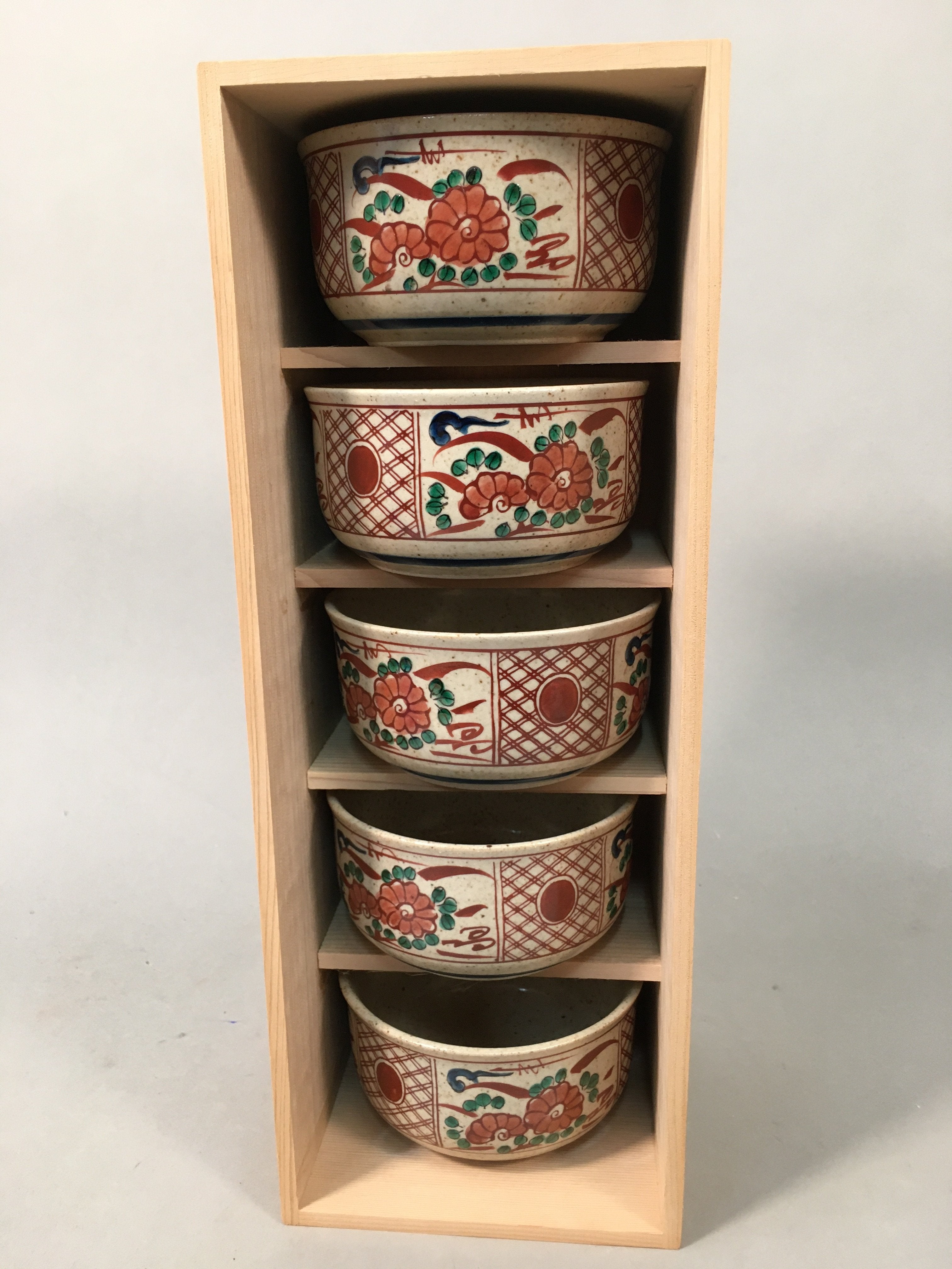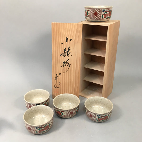 Japanese Ceramic Small Bowl Kutani ware 5pc Set Vtg Pottery Kobachi Akae PX459