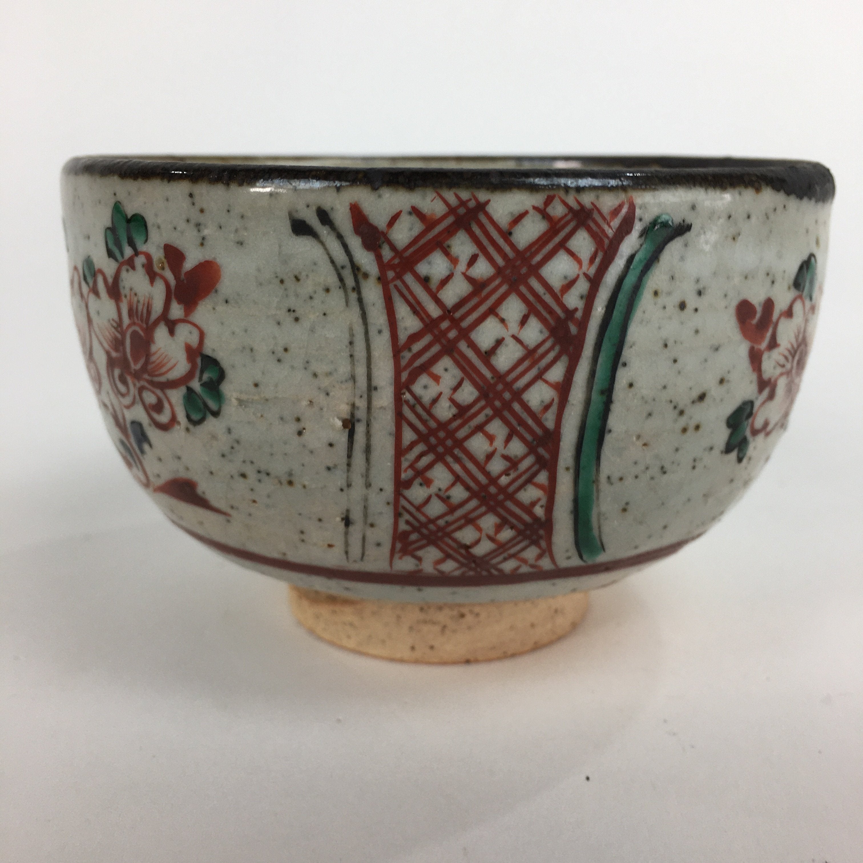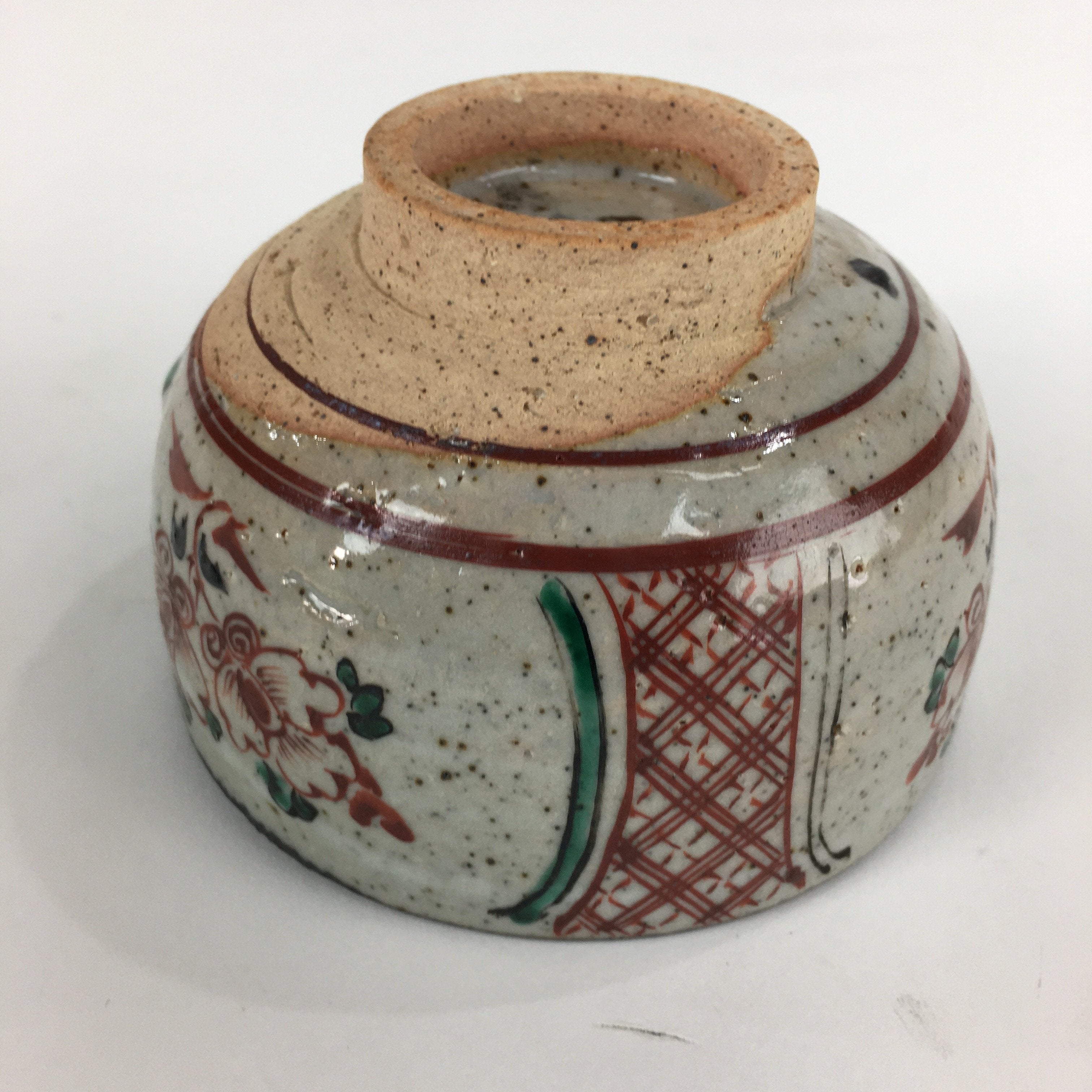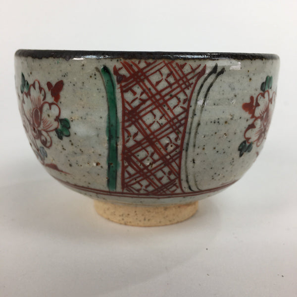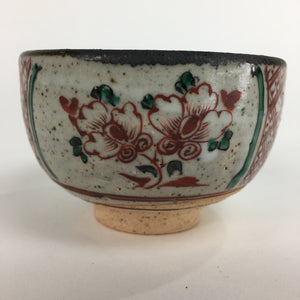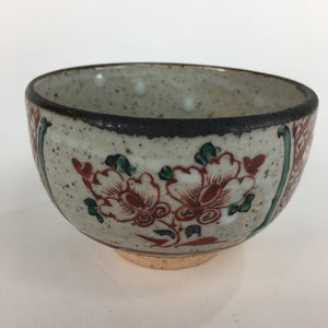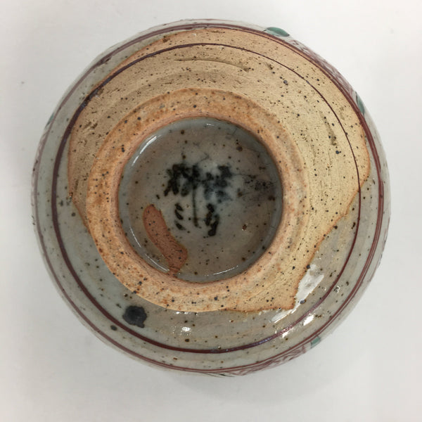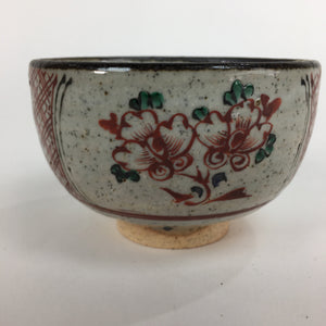 Japanese Ceramic Small Bowl Vtg Pottery Kobachi Gray Red Flower Pattern PP503
