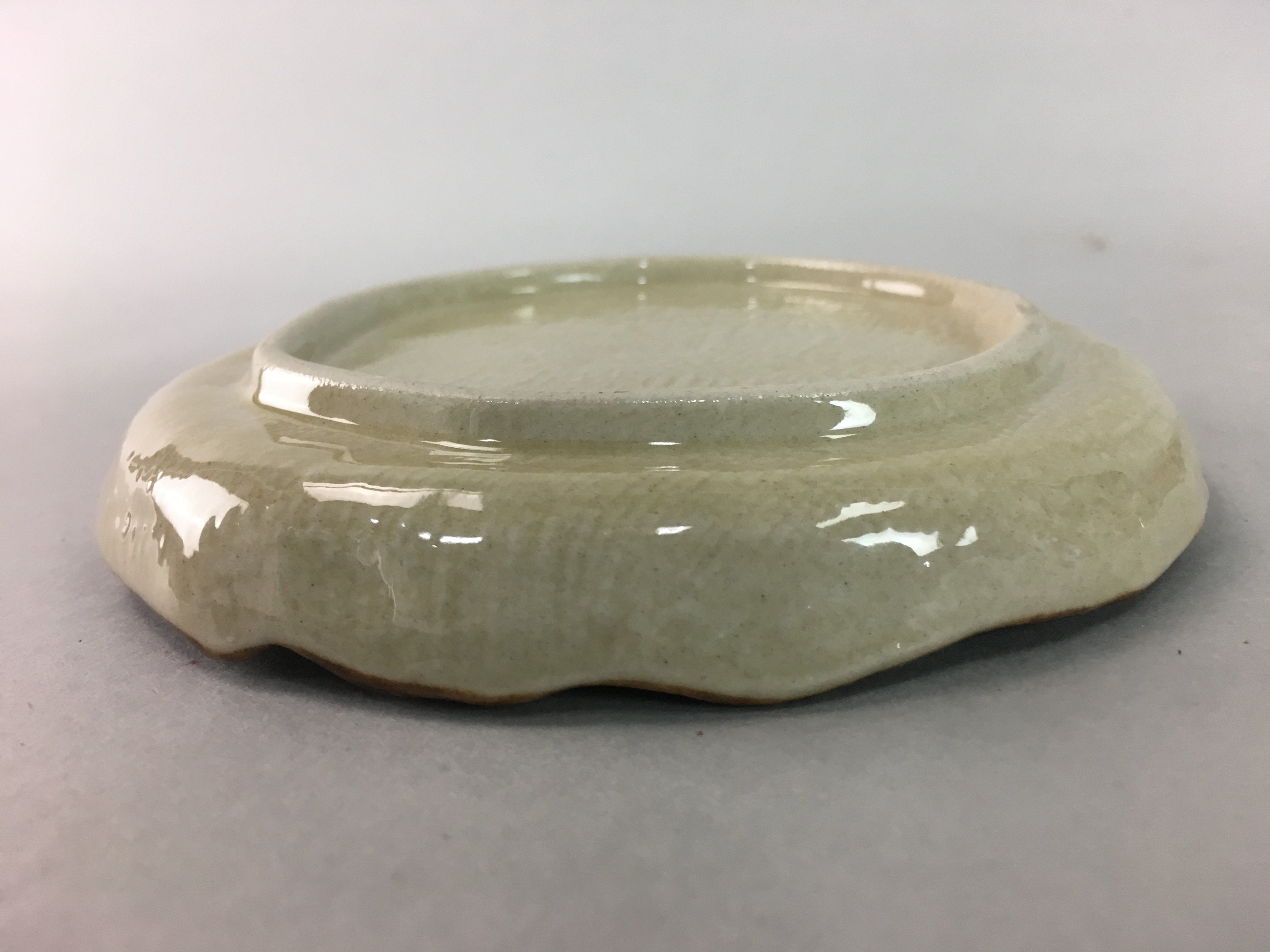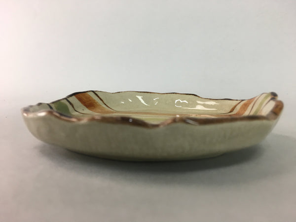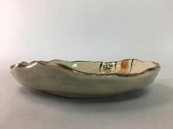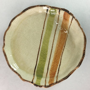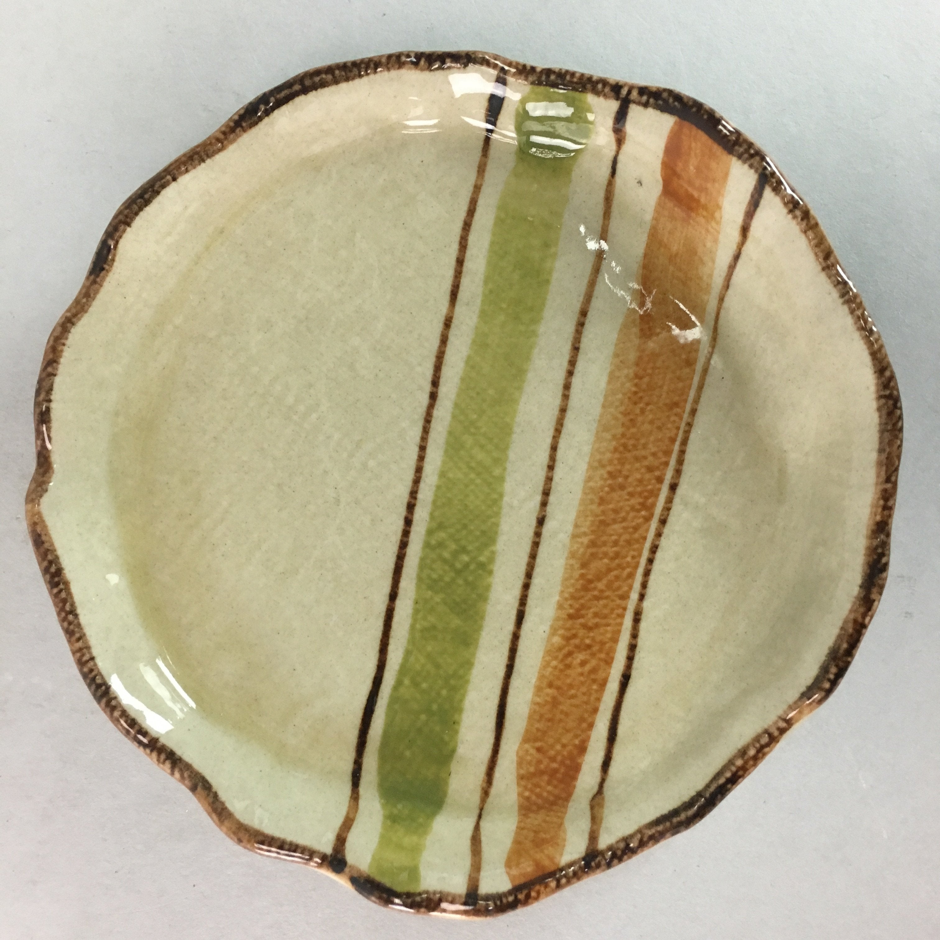 Japanese Ceramic Small Plate Kozara Vtg Round Pottery Orange Green Brown PT874